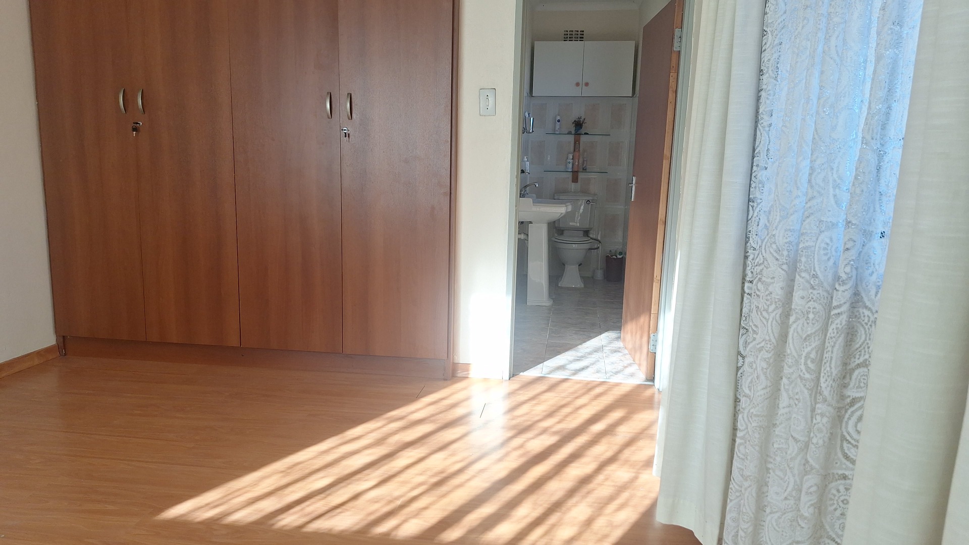 3 spacious bedrooms with built-in cupboards.