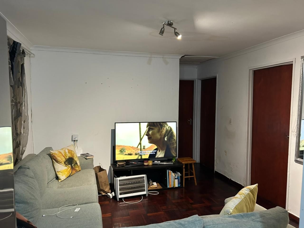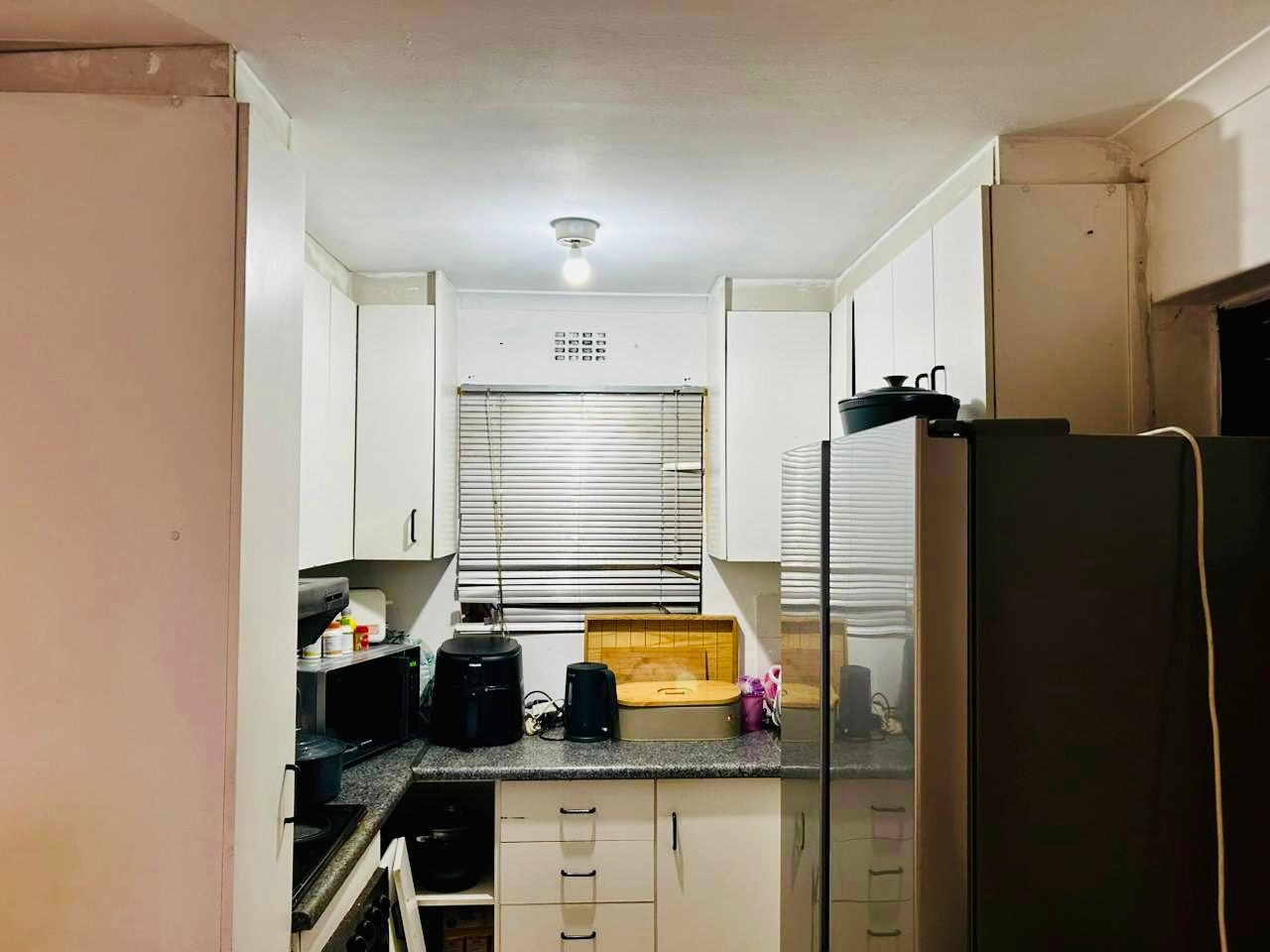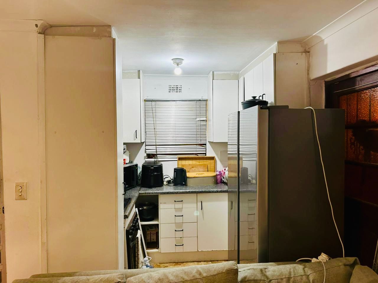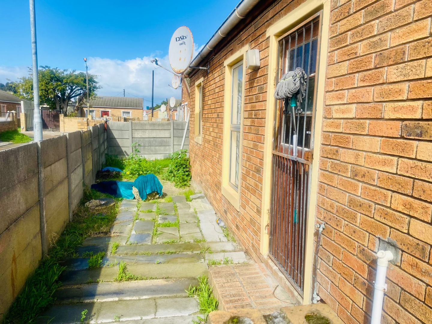 3 bedroom home, with an open plan lounge and fitted kitchen, full bathroom with shower and bathtub. 1 spacious Flat at the back and a garage fitting 2 to 3 cars. With a spacious yard infront.