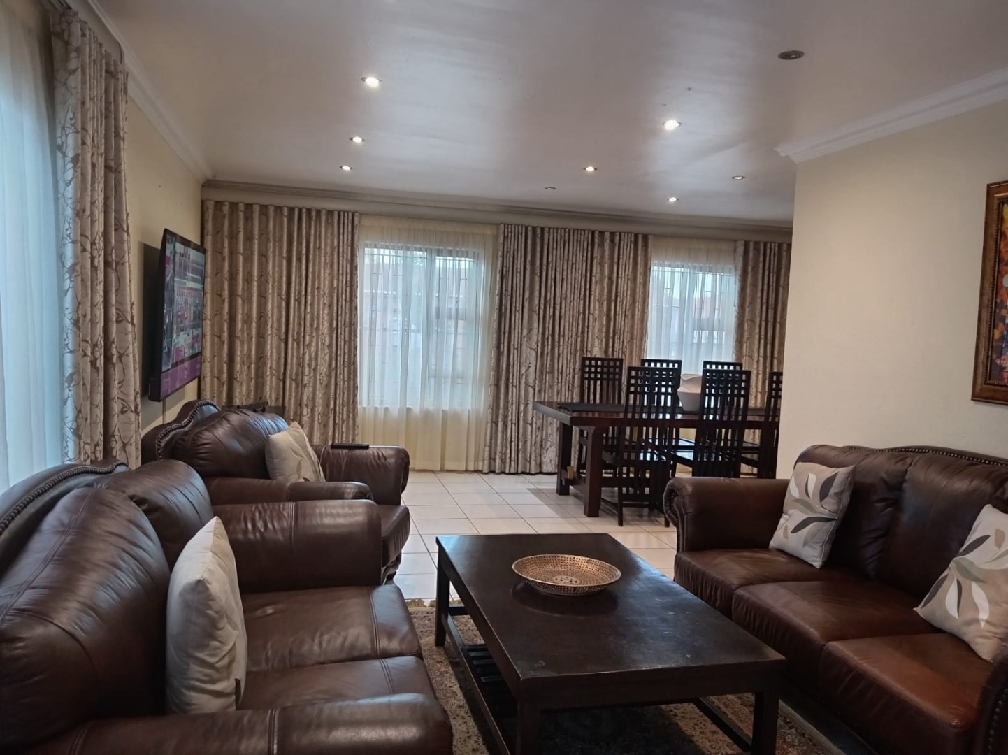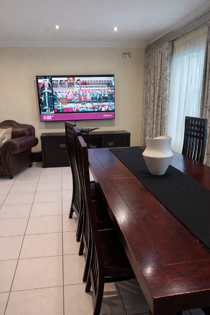 The interior of this home is designed for practical family life, featuring four well-proportioned bedrooms and a dedicated study, perfect for remote work or academic pursuits. The main living areas include a welcoming lounge, a separate dining room for family meals, and an additional family TV room, ensuring ample space for relaxation and entertainment. A functional kitchen caters to daily needs, while a dedicated braai room offers an excellent space for social gatherings.