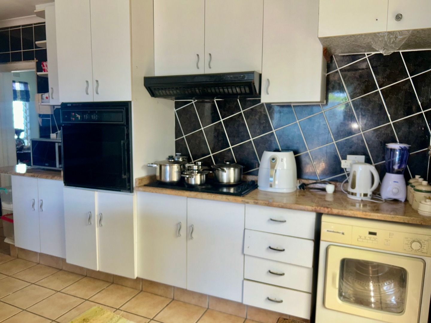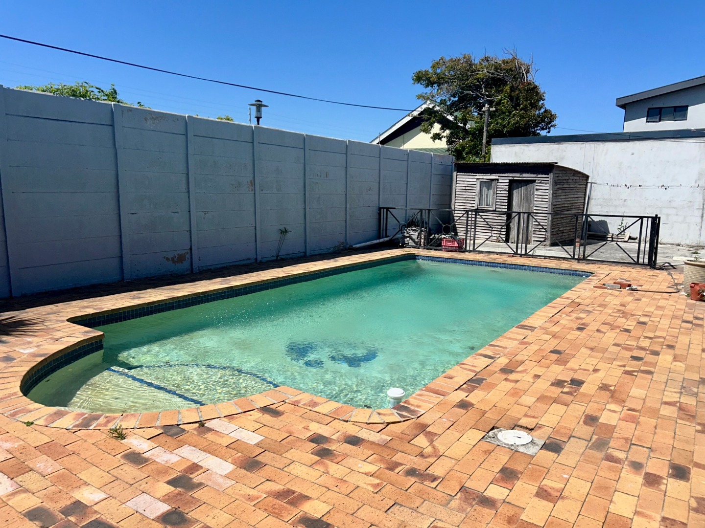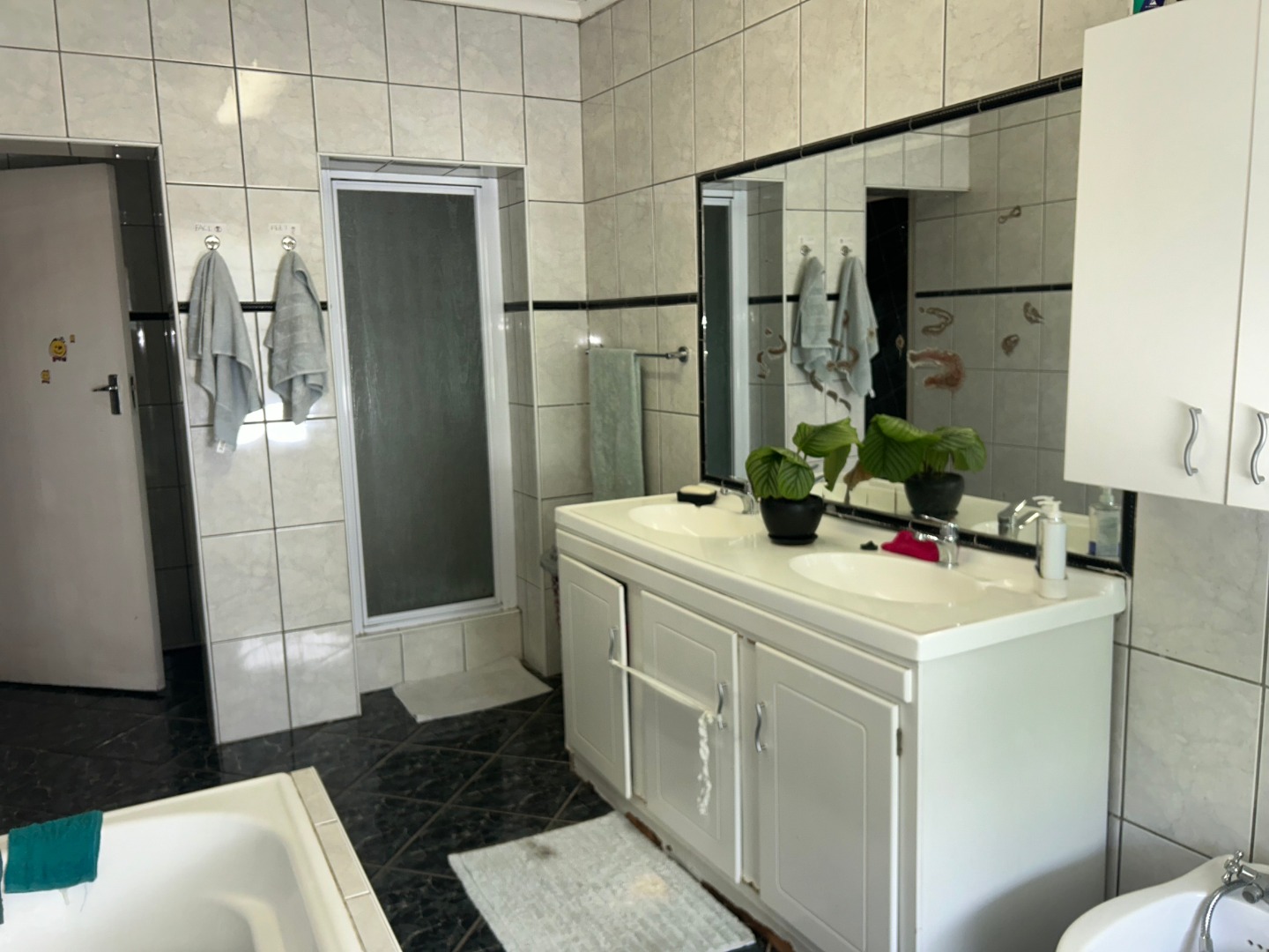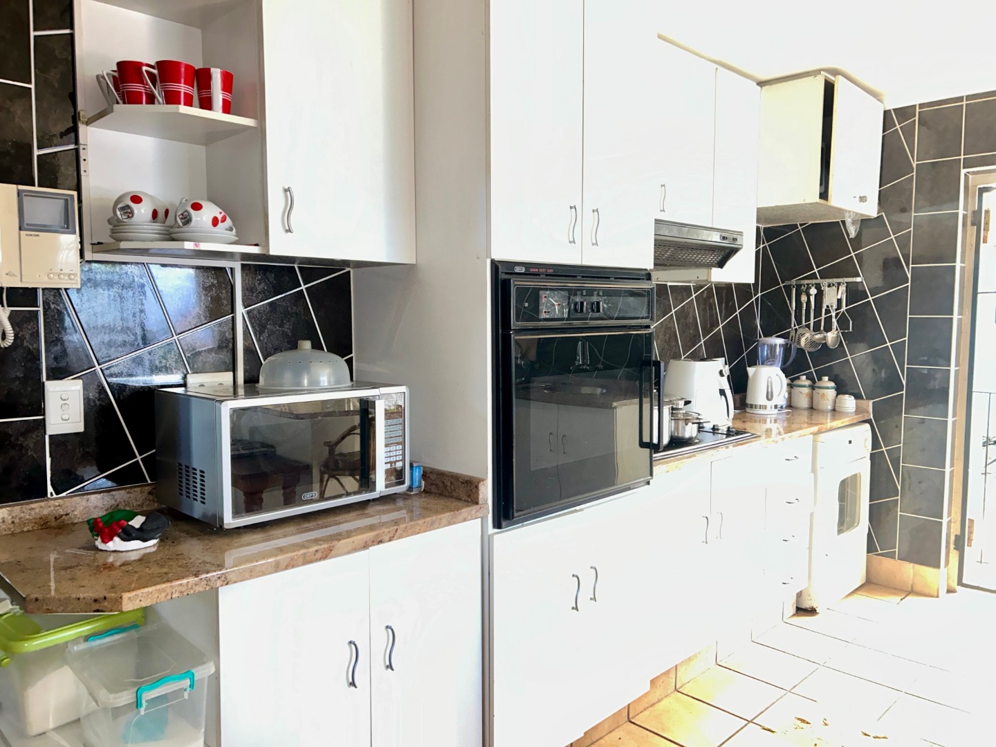Outside, the garden includes a swimming pool, a covered patio with a built-in braai, and a separate Jacuzzi room. A second bathroom is conveniently located outdoors.