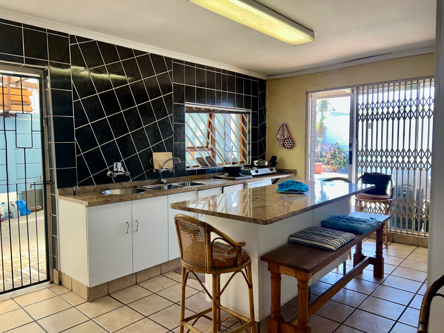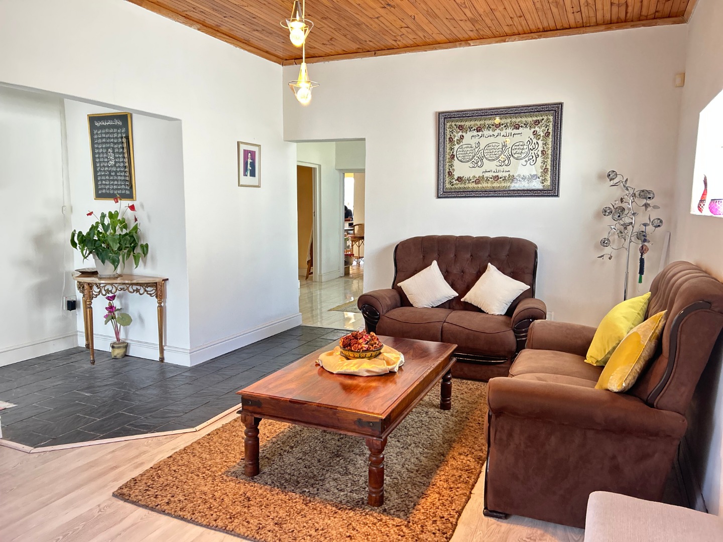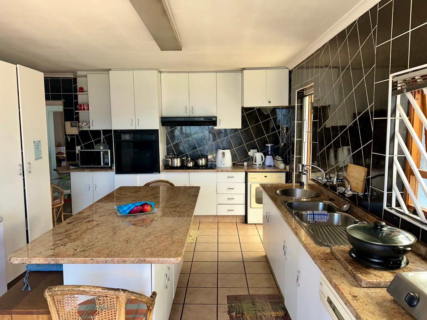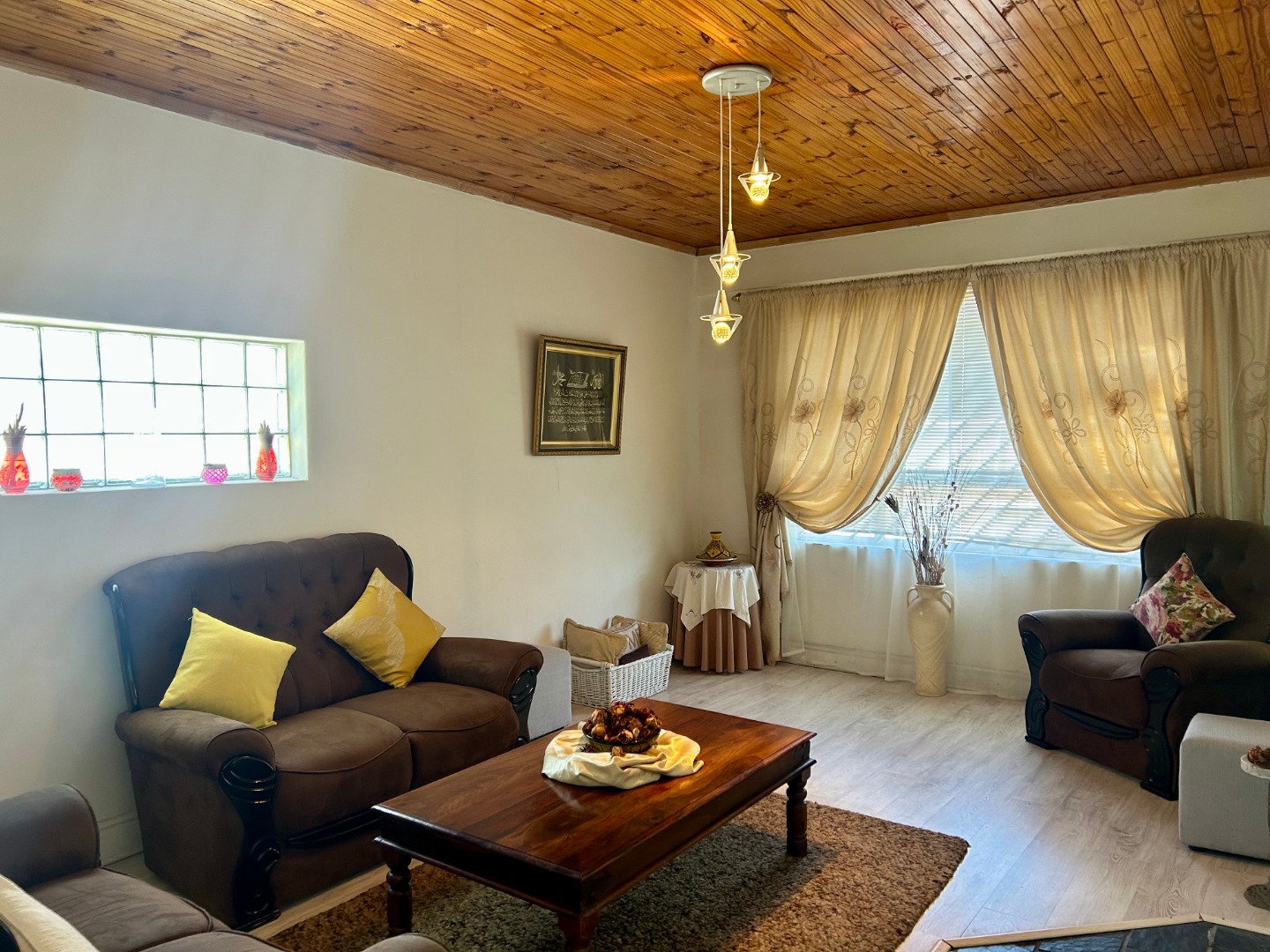 Outside, the garden includes a swimming pool, a covered patio with a built-in braai, and a separate Jacuzzi room. A second bathroom is conveniently located outdoors.