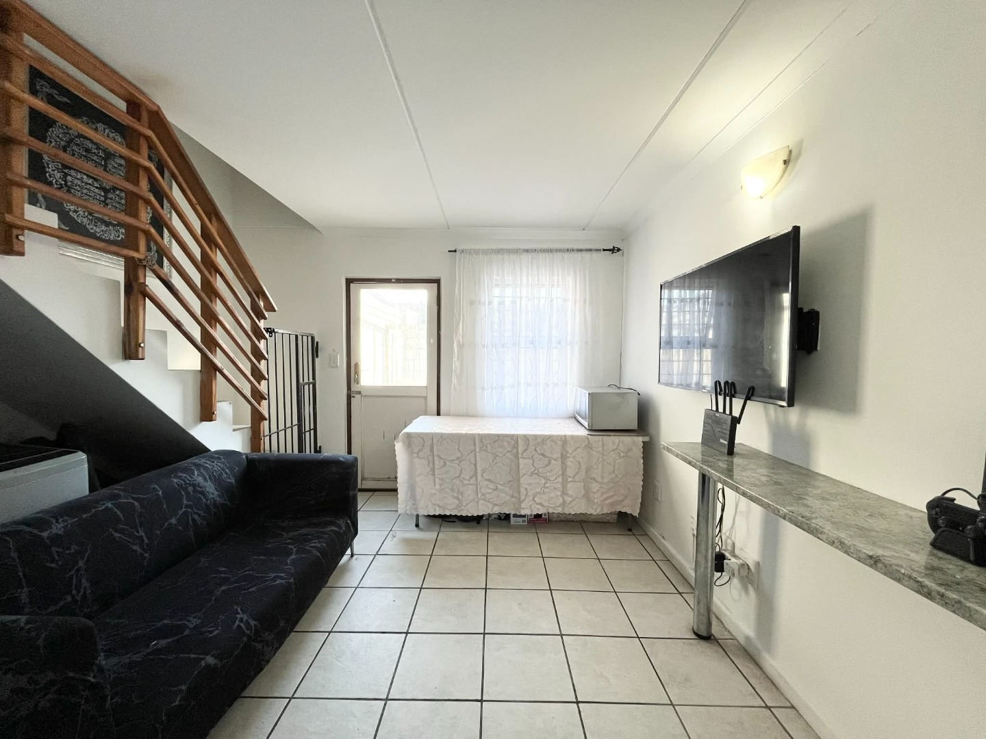 The duplex property has 2 upstairs bedrooms.
