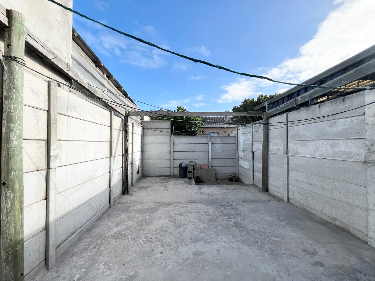 Fully enclosed property and paved at the back and front of the property.