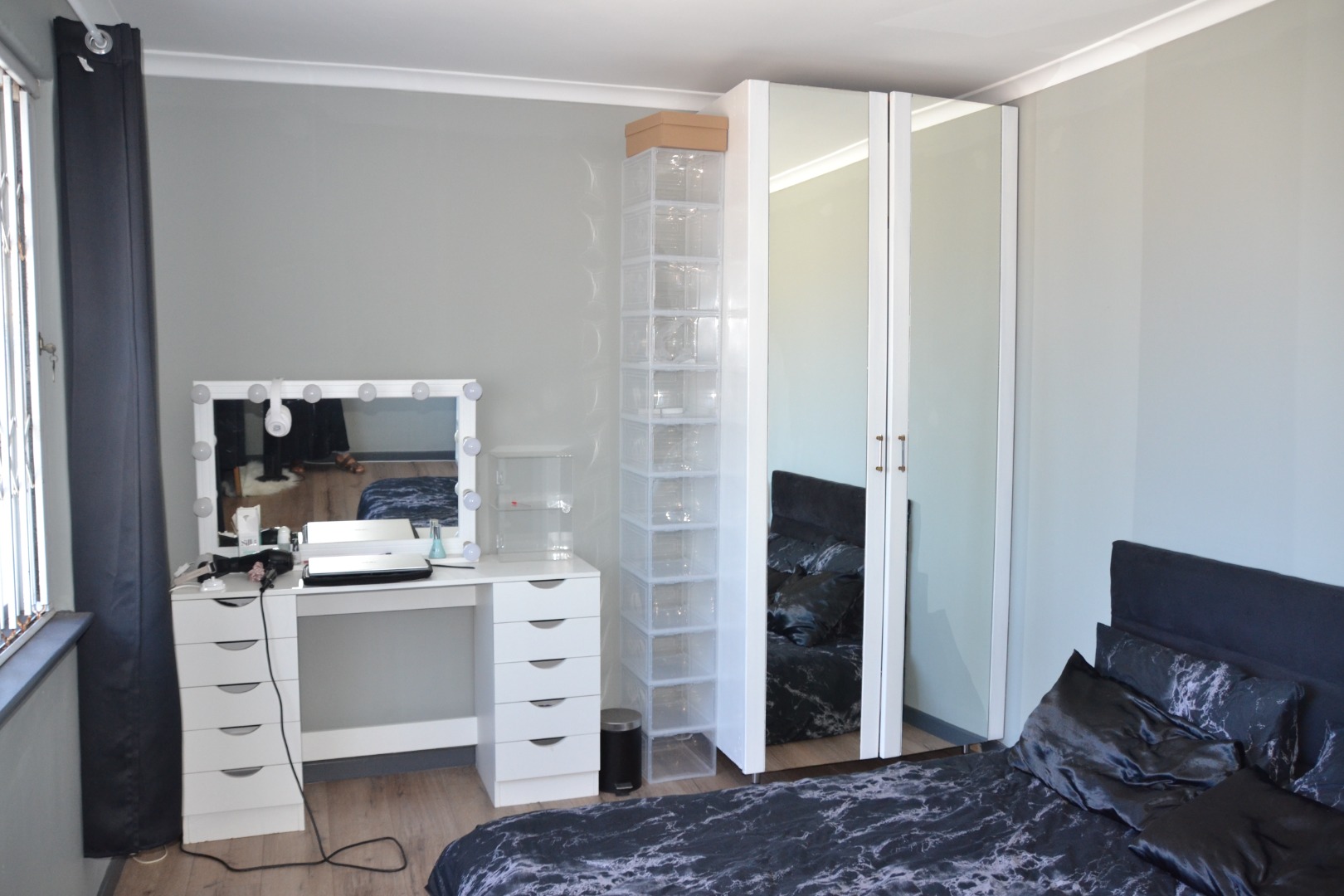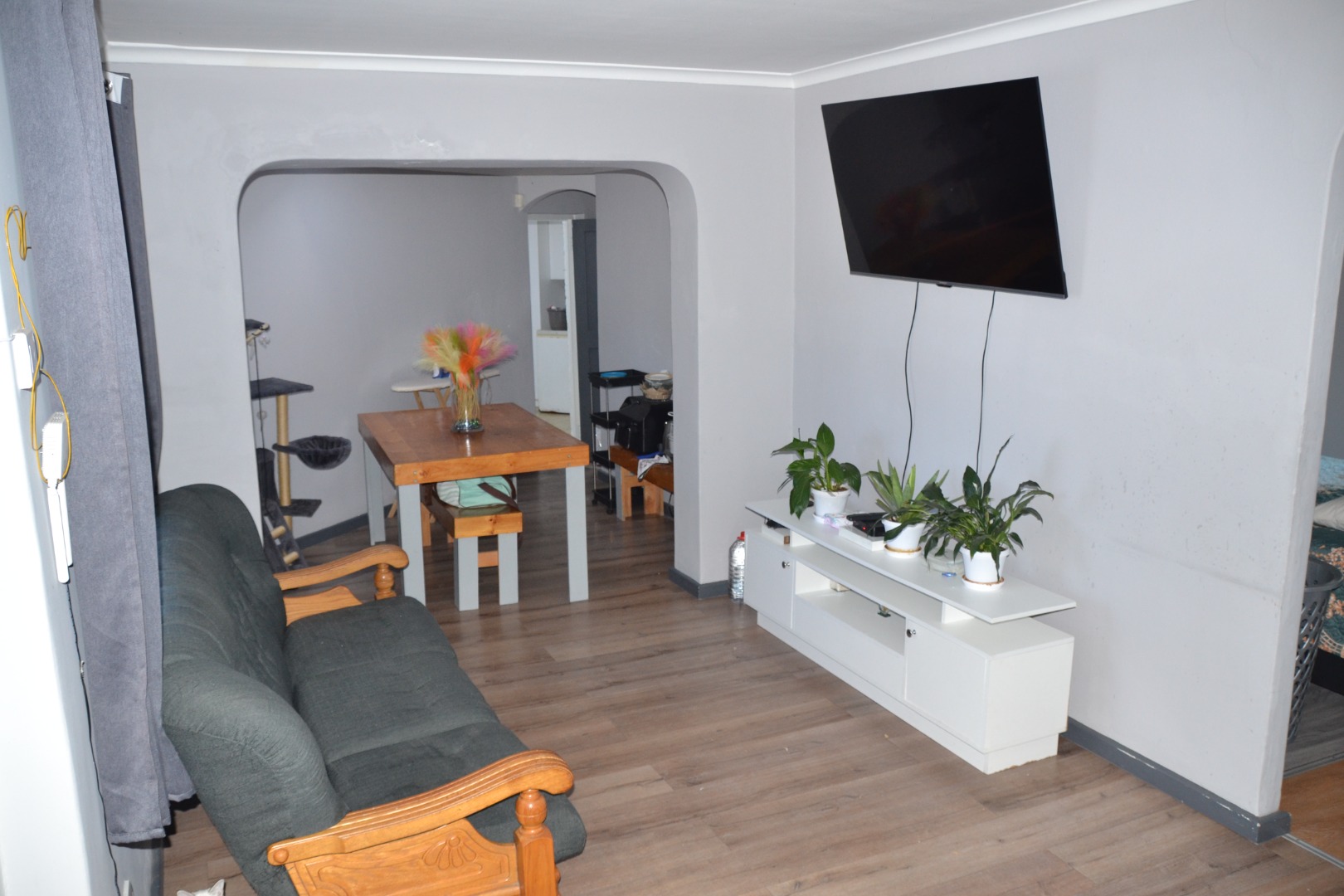 Discover this inviting 3-bedroom, 2-bathroom home situated in the vibrant community of Pelican Park, Cape Town. This residence offers a comfortable and functional living environment, perfect for families or individuals seeking a well-located property. The interior boasts an open-plan layout, seamlessly connecting the lounge and dining areas, enhanced by modern wood-look flooring and neutral wall tones. Arched entryways add a touch of architectural character, while a skylight bathes the main living space in natural light, creating a bright and airy atmosphere. The property also includes a dedicated kitchen and a practical storage area with extensive shelving.