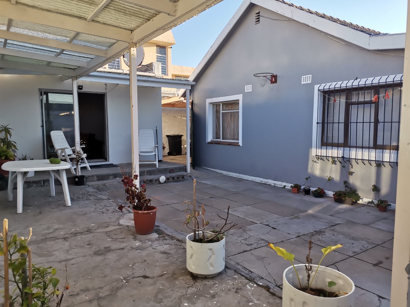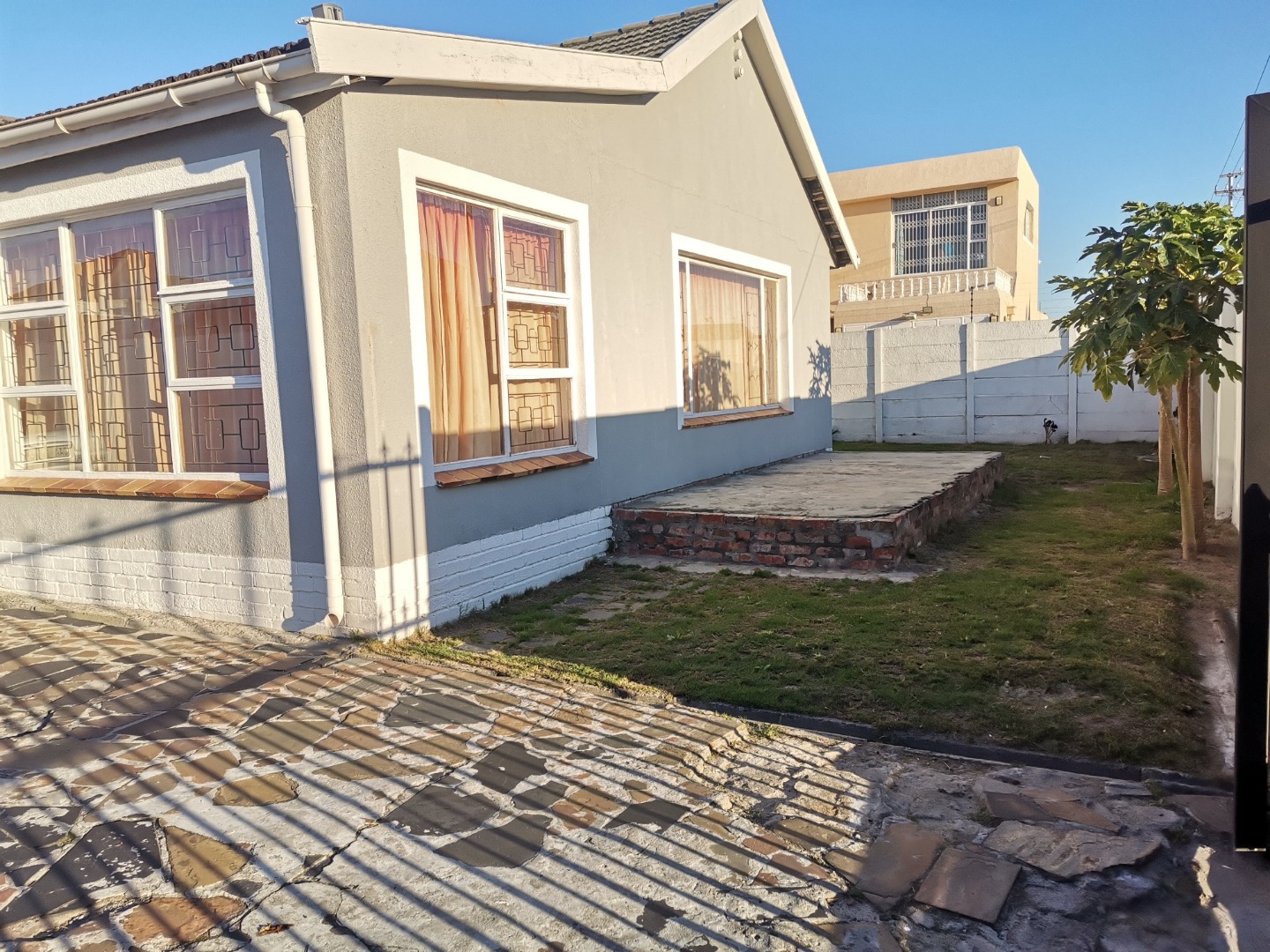 Discover this spacious residential property located in the established suburban area of Penlyn Estate, Cape Town. Boasting a modern light grey exterior with white trim and a secure frontage, this home offers a robust first impression. The property features a high boundary wall, a sturdy metal gate, and a paved driveway providing ample off-street parking for up to four vehicles, including a carport and a single garage. An energy-efficient solar water heater is also installed, contributing to sustainable living. Inside, the home presents a significant opportunity for renovation and customisation. With two lounges and two kitchens, the layout offers versatility, including the potential for dual living or a separate flatlet, catering to extended families or generating rental income. The property comprises five well-proportioned bedrooms and two bathrooms, providing generous accommodation. While some interior spaces feature worn parquet flooring and ceilings requiring attention, the large windows ensure abundant natural light throughout, highlighting the potential for a modern transformation. The 505 sqm erf includes a private backyard enclosed by high boundary walls, offering a secure space for relaxation. There's a small paved patio area and a garden, ready for landscaping to create your ideal outdoor oasis. Security is enhanced with burglar bars on windows and a secure access gate. This property is ideal for buyers seeking a substantial home with excellent renovation potential in a convenient Cape Town location. Key Features: * Five spacious bedrooms * Two bathrooms and a guest toilet * Two kitchens and two lounges * Dedicated flatlet potential * Single garage and ample paved parking * Private garden with high boundary walls * Enhanced security with burglar bars * Energy-efficient solar water heater * Generous 505 sqm erf size