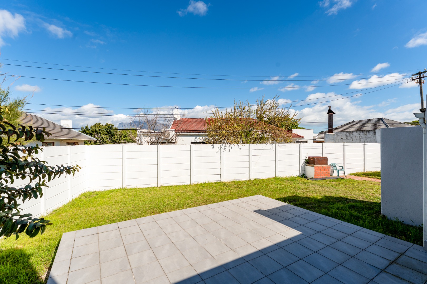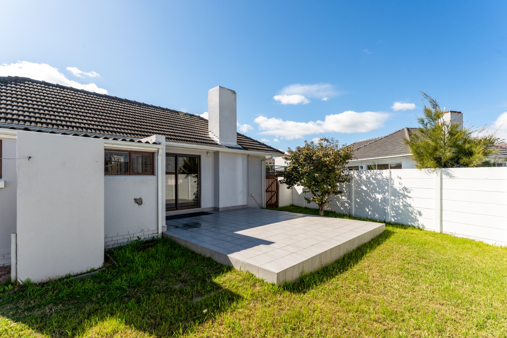* Tiled Patio and Grassy Lawn