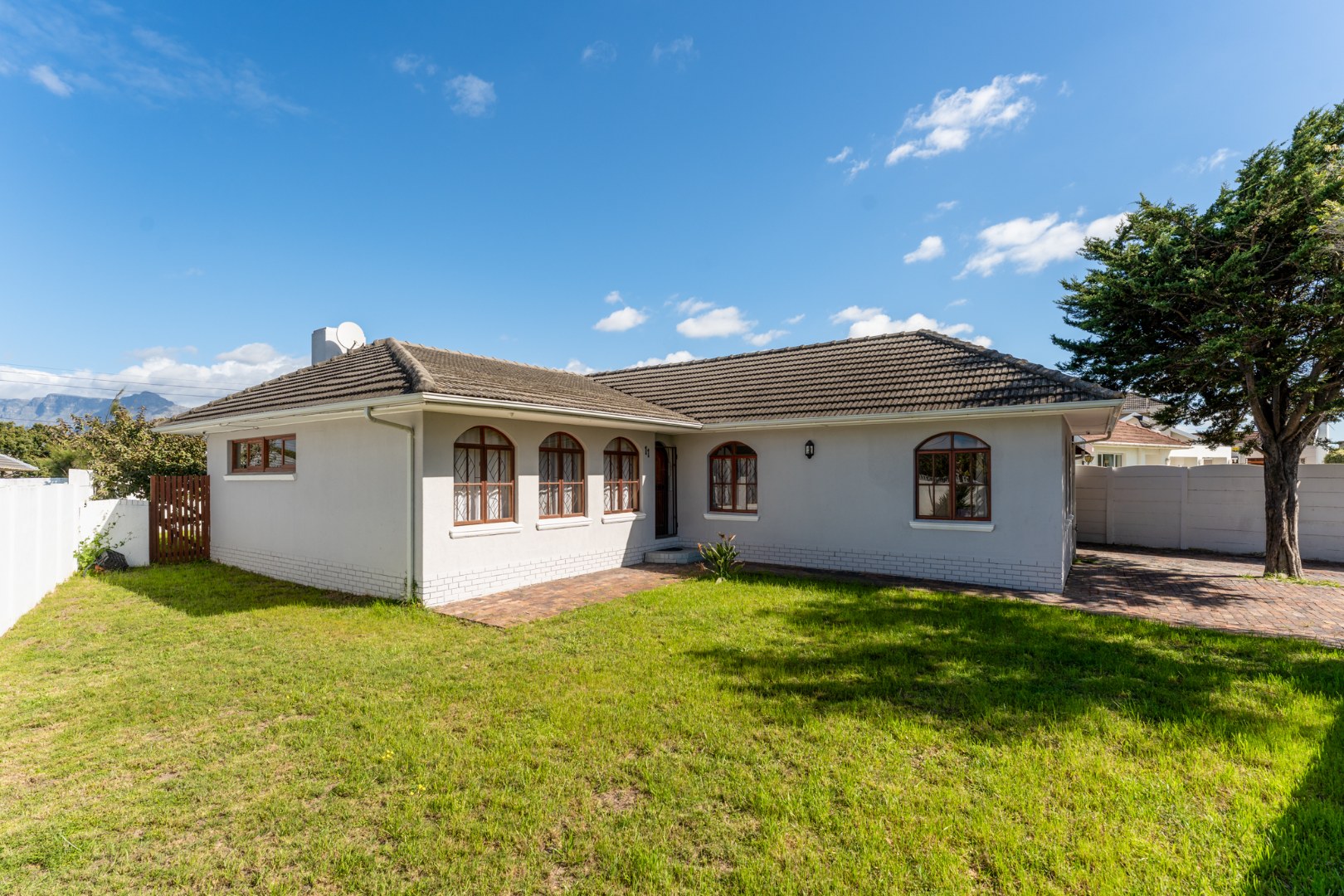 Discover this charming 3-bedroom residence nestled in the desirable suburban area of Thornton, Cape Town. Boasting a well-maintained exterior with light-colored walls, a classic tiled roof, and distinctive arched windows, this home offers immediate kerb appeal. The property is set against a scenic mountain backdrop, providing a picturesque setting for everyday living.