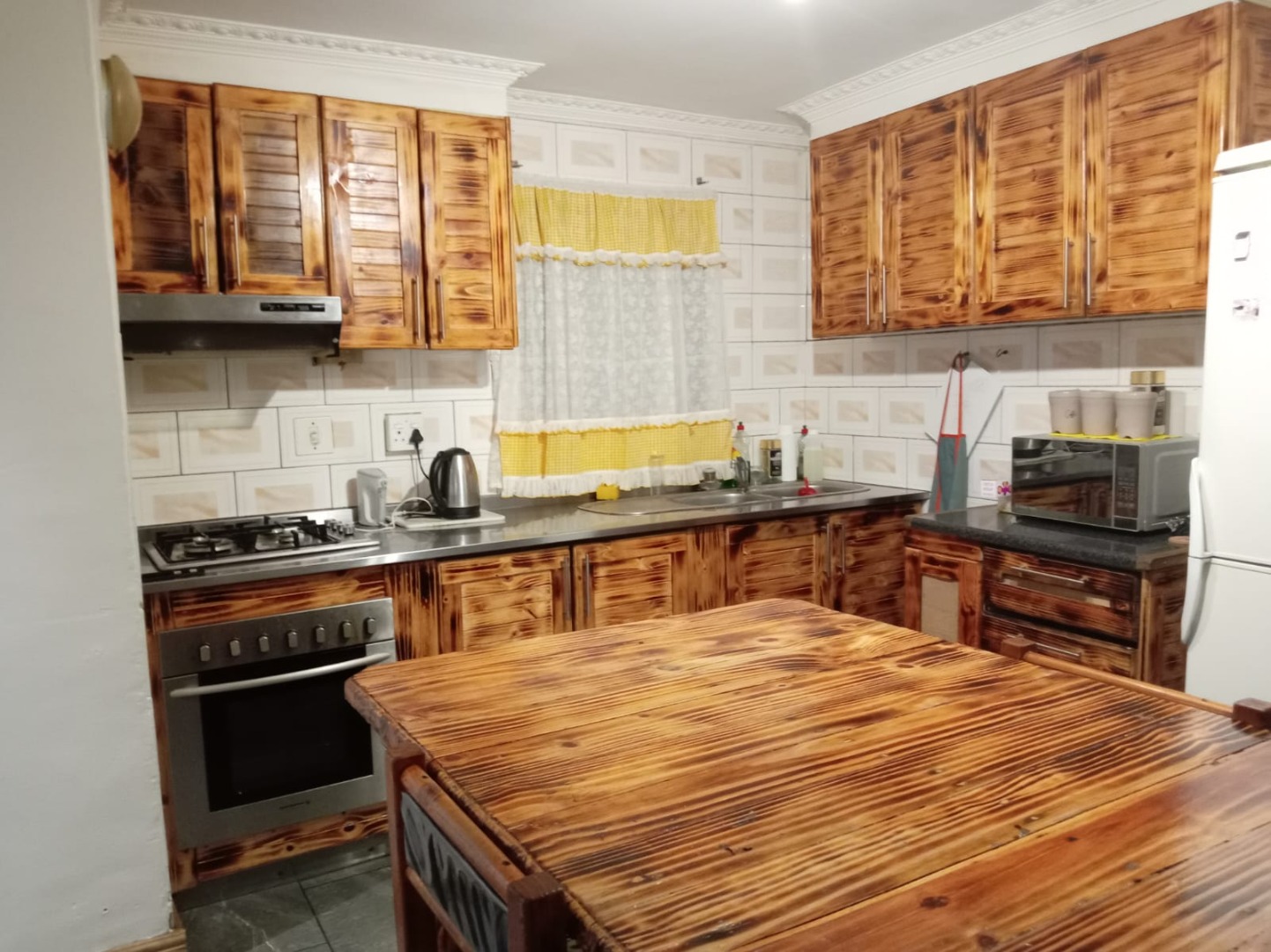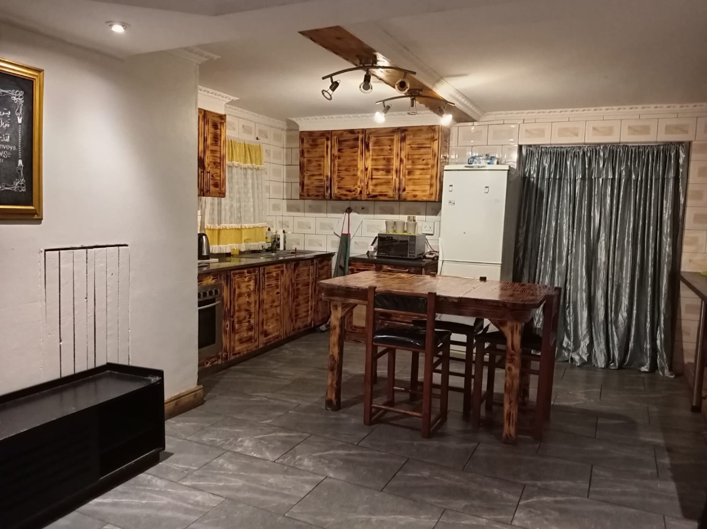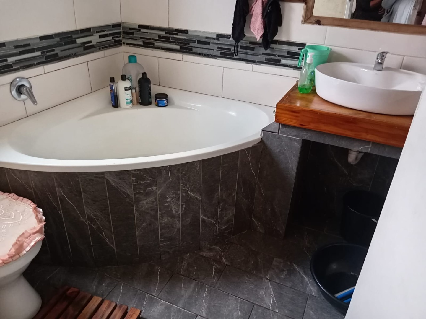 Discover this inviting 3-bedroom, 2-bathroom home located in the established suburb of Eastridge. Spanning a comfortable 182 sqm on an equally sized erf, this residence offers a blend of functional living spaces and distinctive design elements. The heart of the home is its spacious open-plan kitchen and dining area, featuring custom rustic wooden cabinetry that provides ample storage. This area is well-appointed with an integrated oven and gas hob, a double basin sink, and generous countertop space, complemented by modern large-format floor tiles and good overhead lighting. A large wooden island serves as both a preparation area and an additional dining space, fostering a cohesive and welcoming atmosphere for family meals and entertaining. The home comprises three comfortable bedrooms, each fitted with practical wood-look laminate flooring and large windows that invite natural light. Ample storage is provided by extensive dark wood built-in wardrobes, ensuring a tidy and organised living environment. The two bathrooms are thoughtfully designed, with one showcasing a contemporary corner bathtub, a modern vessel sink set on a stylish wooden counter, and cohesive grey tile flooring and tub surround, enhanced by a decorative accent tile band. Outside, the property offers two dedicated parking spaces, catering to convenience. While lacking a garage, the available parking ensures ease of access for residents. The property's layout maximises the 182 sqm floor size, providing a practical and manageable living solution within the suburban setting. Situated in Mitchells Plain, this well-known residential area in South Africa offers a community-focused environment with access to local amenities and transport routes. This home presents an opportunity for those seeking a property with character and potential in a convenient location. Key Features: * 3 Bedrooms * 2 Bathrooms * 1 Lounge * Spacious rustic-style kitchen with integrated dining * Modern large-format tiled and laminate flooring * Ample built-in wardrobe storage * Two dedicated parking spaces * Erf Size: 182 sqm