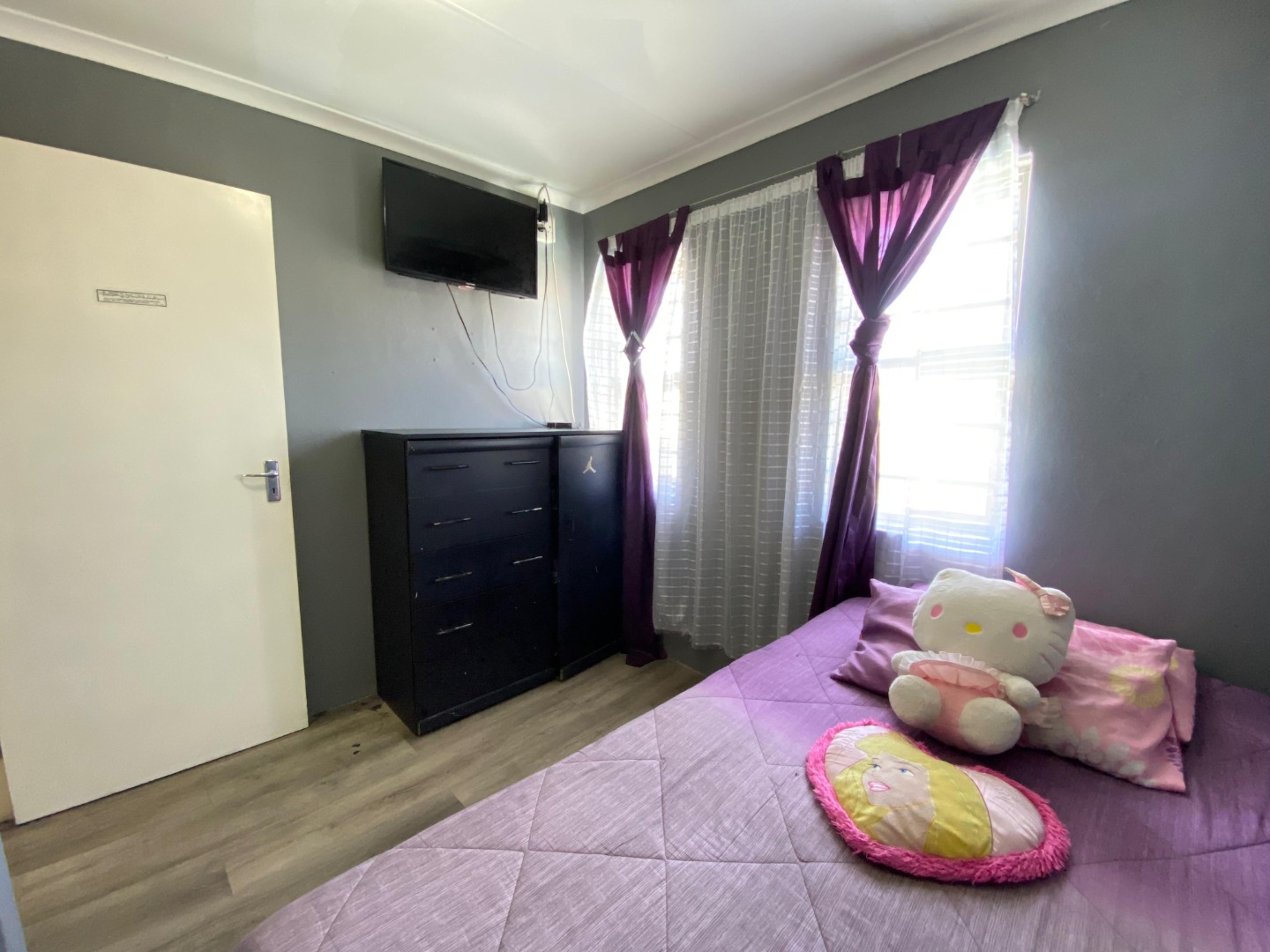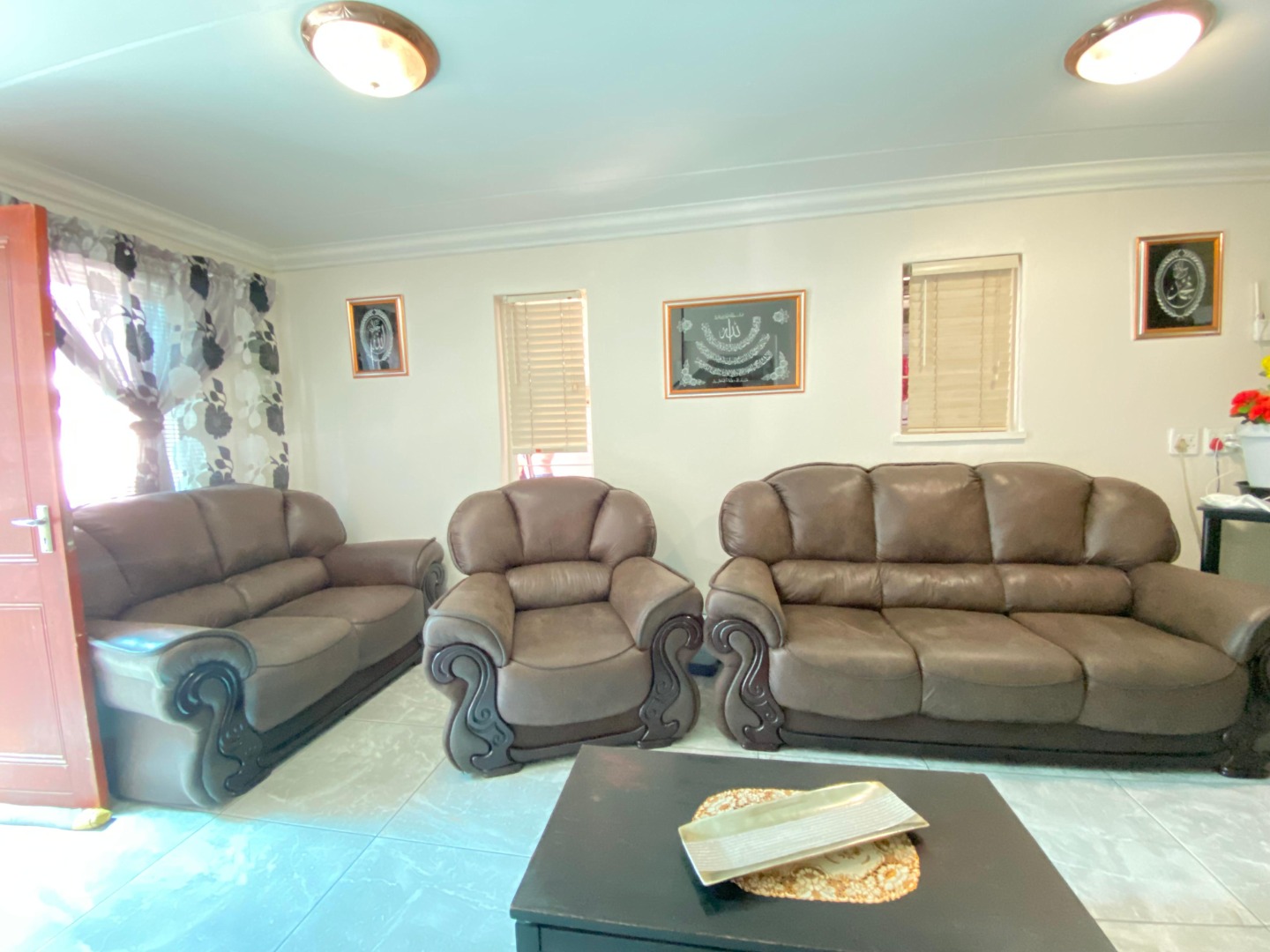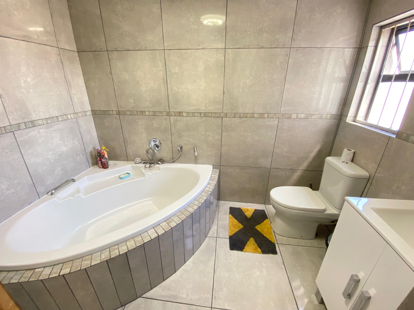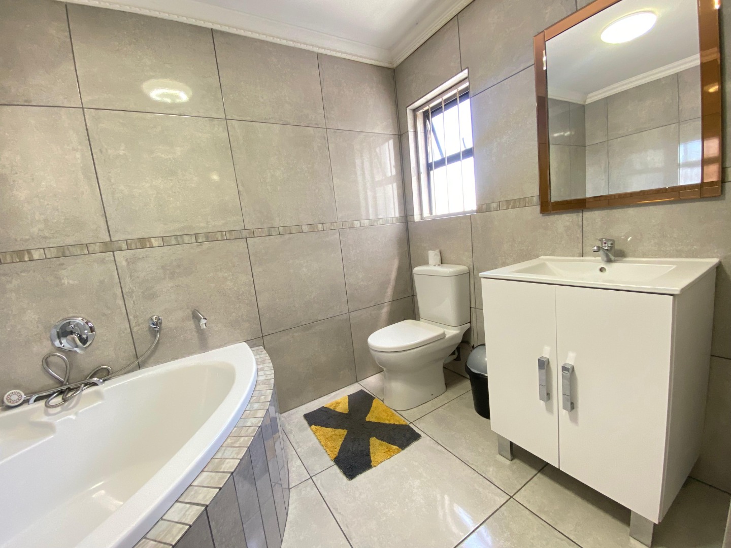 Upstairs: The upper level offers three well-sized bedrooms; all fitted with laminated flooring. Two of the bedrooms feature sleek open-plan built-in cupboards, while the generously sized main bedroom provides all the space you need, complete with a private en-suite bathroom boasting a corner bath, toilet and basin. An additional walk-through study area with built-in cupboards adds extra practicality—ideal for working from home, homework space for kids, or extra storage.