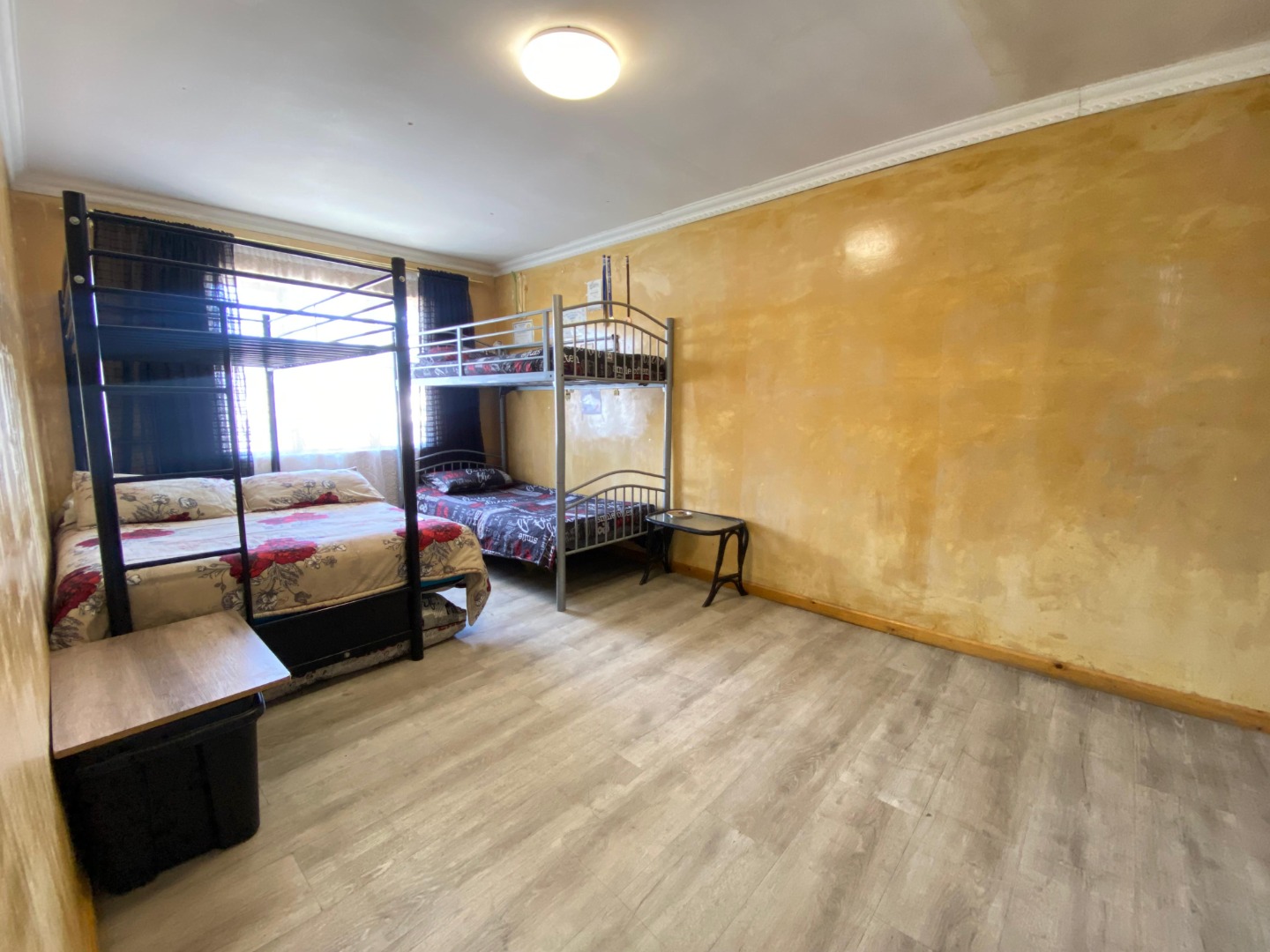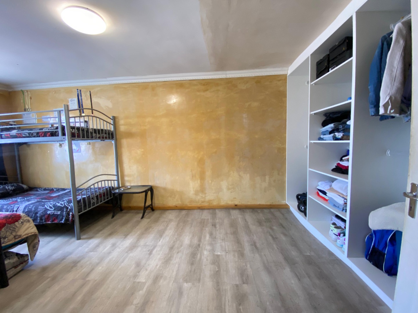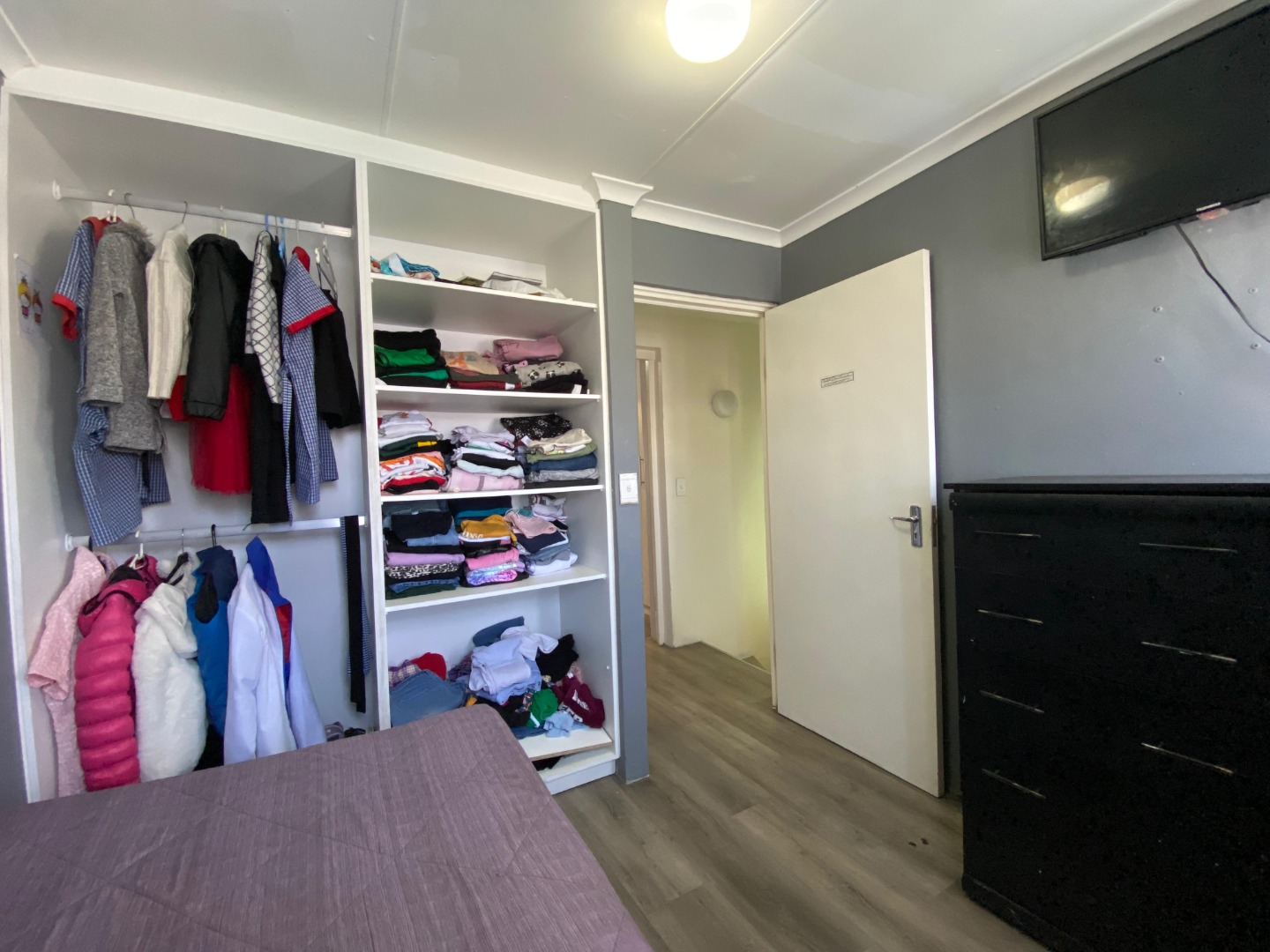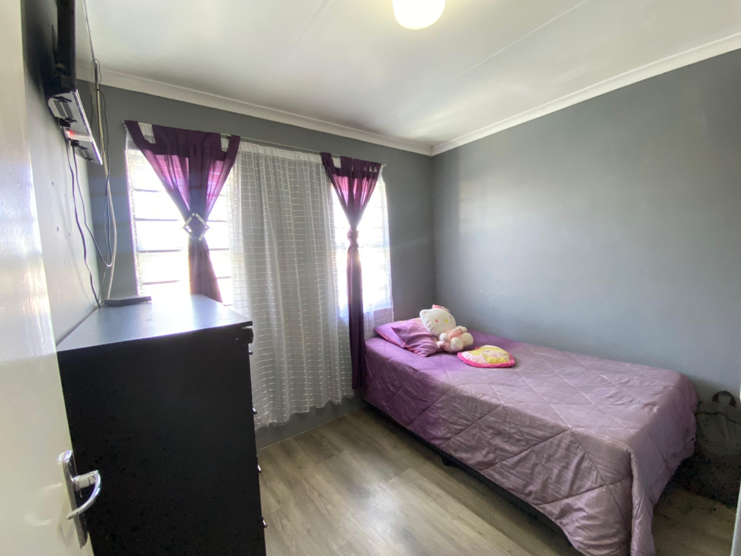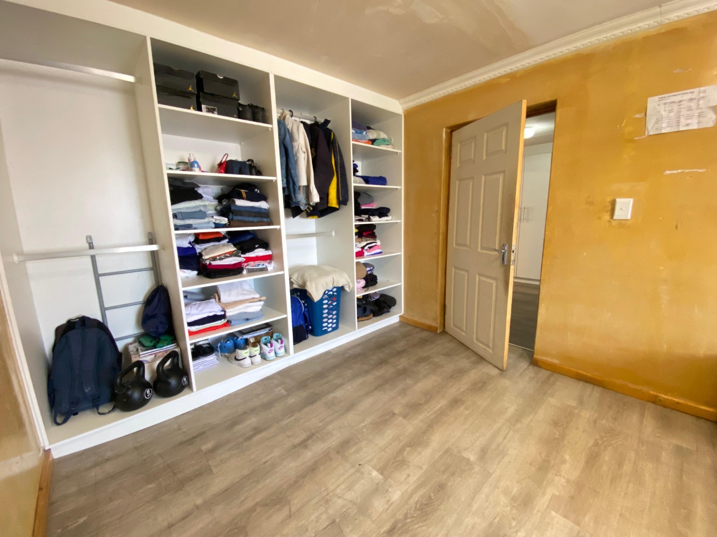 Upstairs: The upper level offers three well-sized bedrooms; all fitted with laminated flooring. Two of the bedrooms feature sleek open-plan built-in cupboards, while the generously sized main bedroom provides all the space you need, complete with a private en-suite bathroom boasting a corner bath, toilet and basin. An additional walk-through study area with built-in cupboards adds extra practicality—ideal for working from home, homework space for kids, or extra storage.