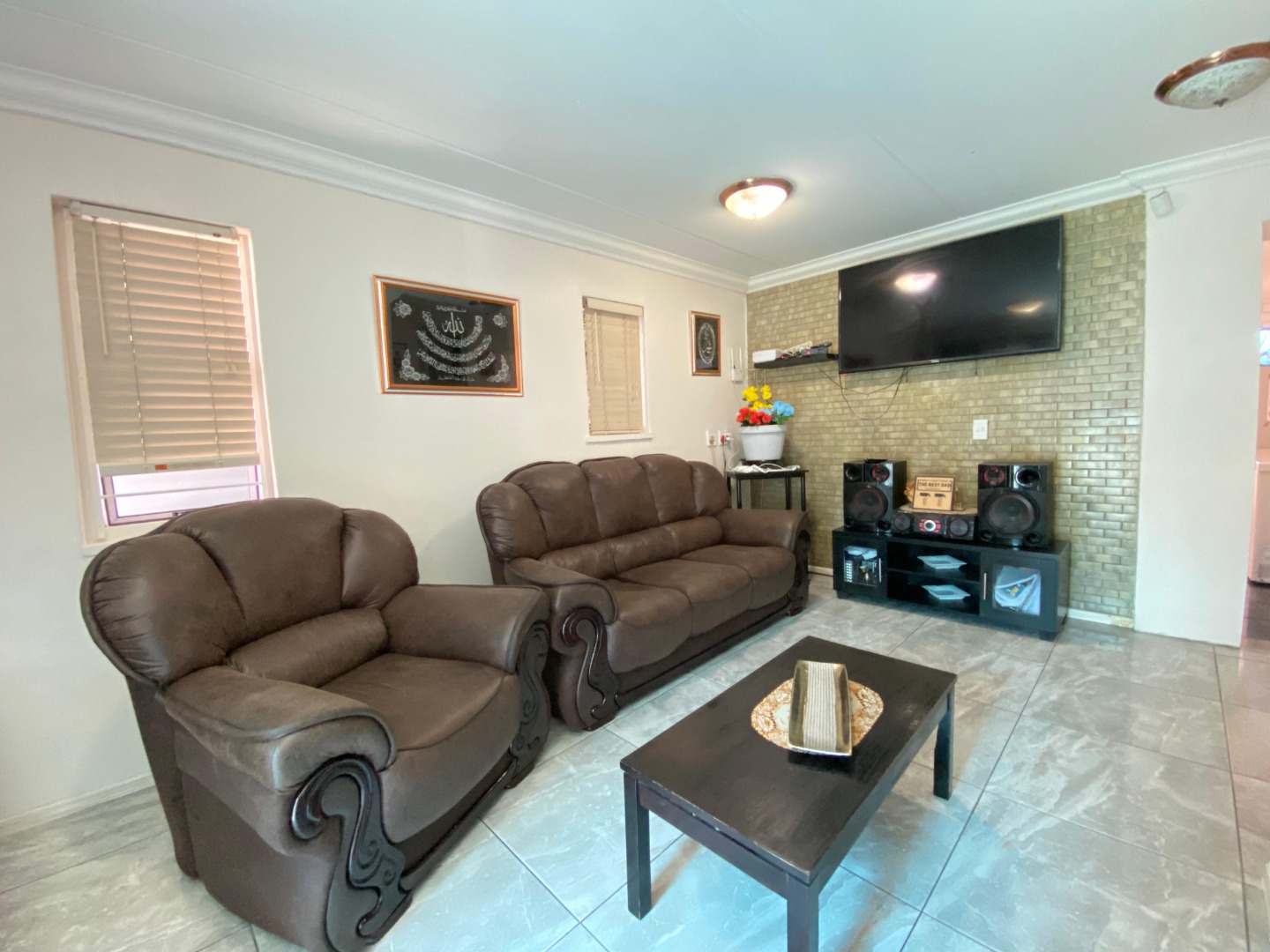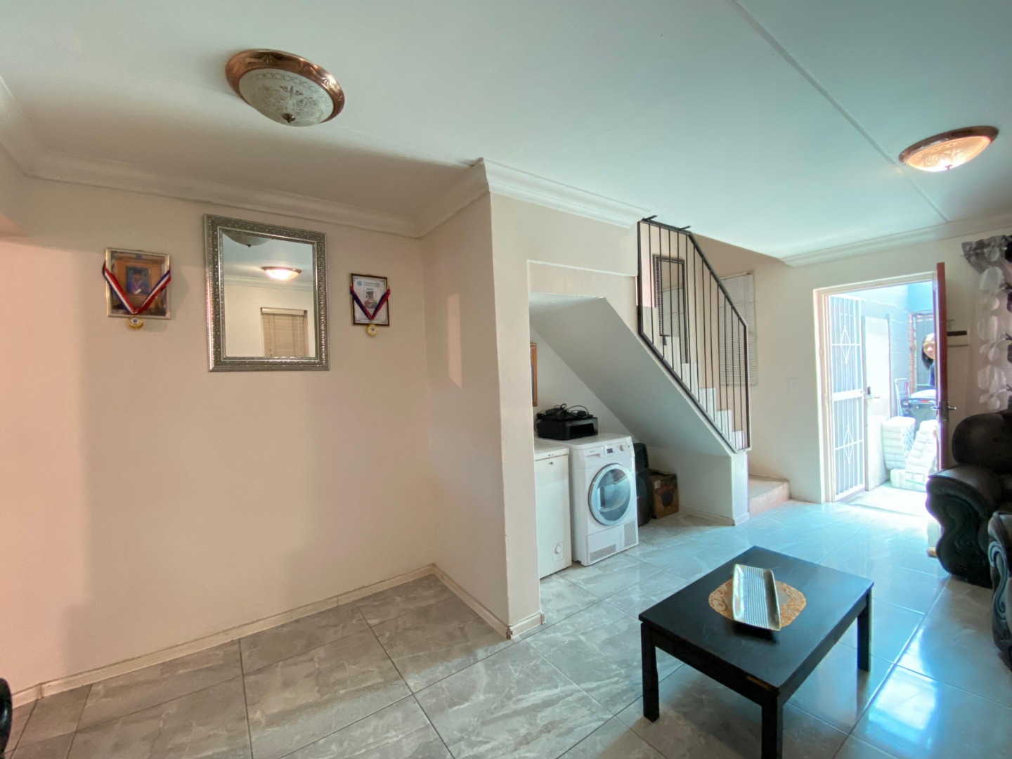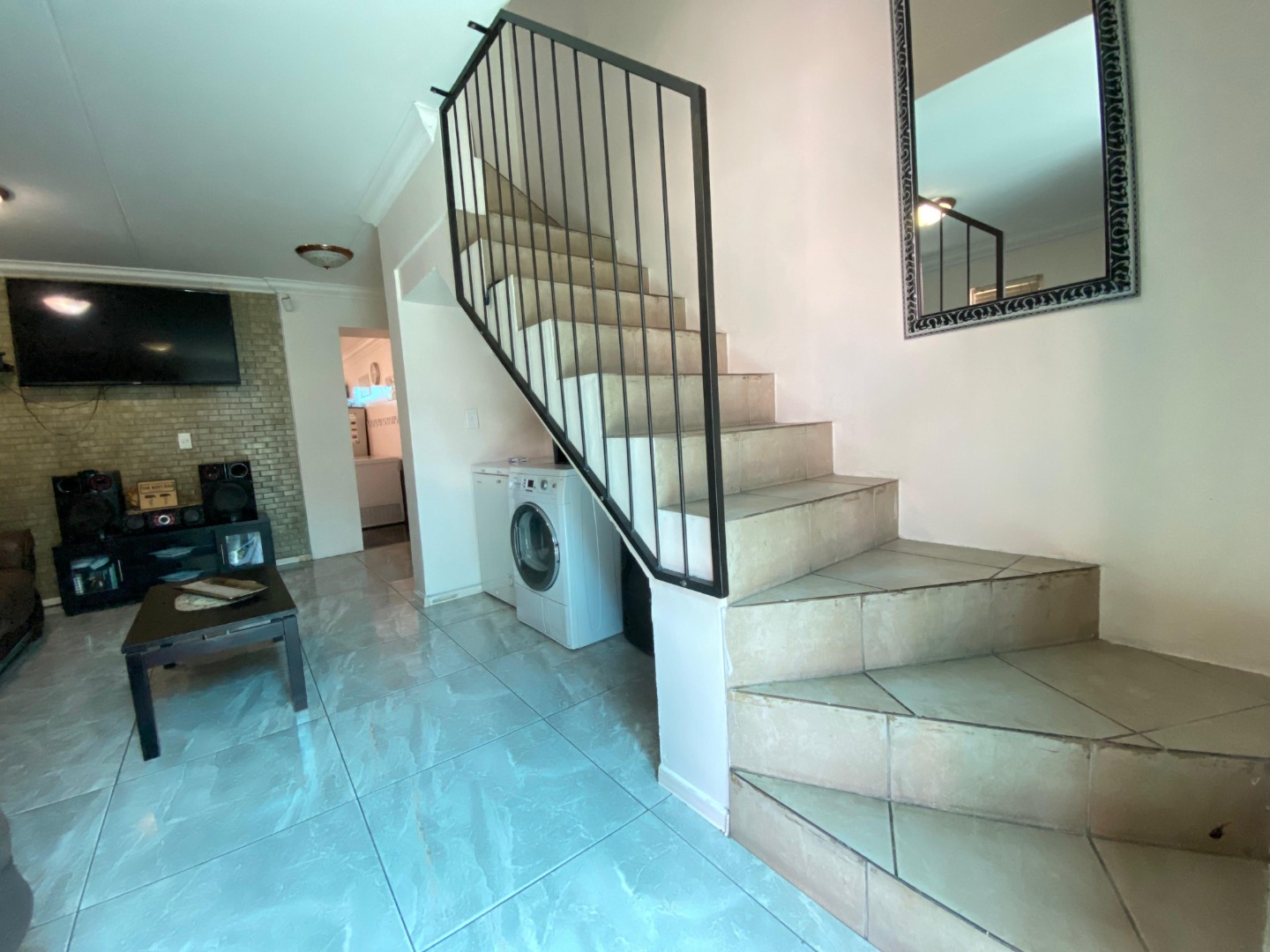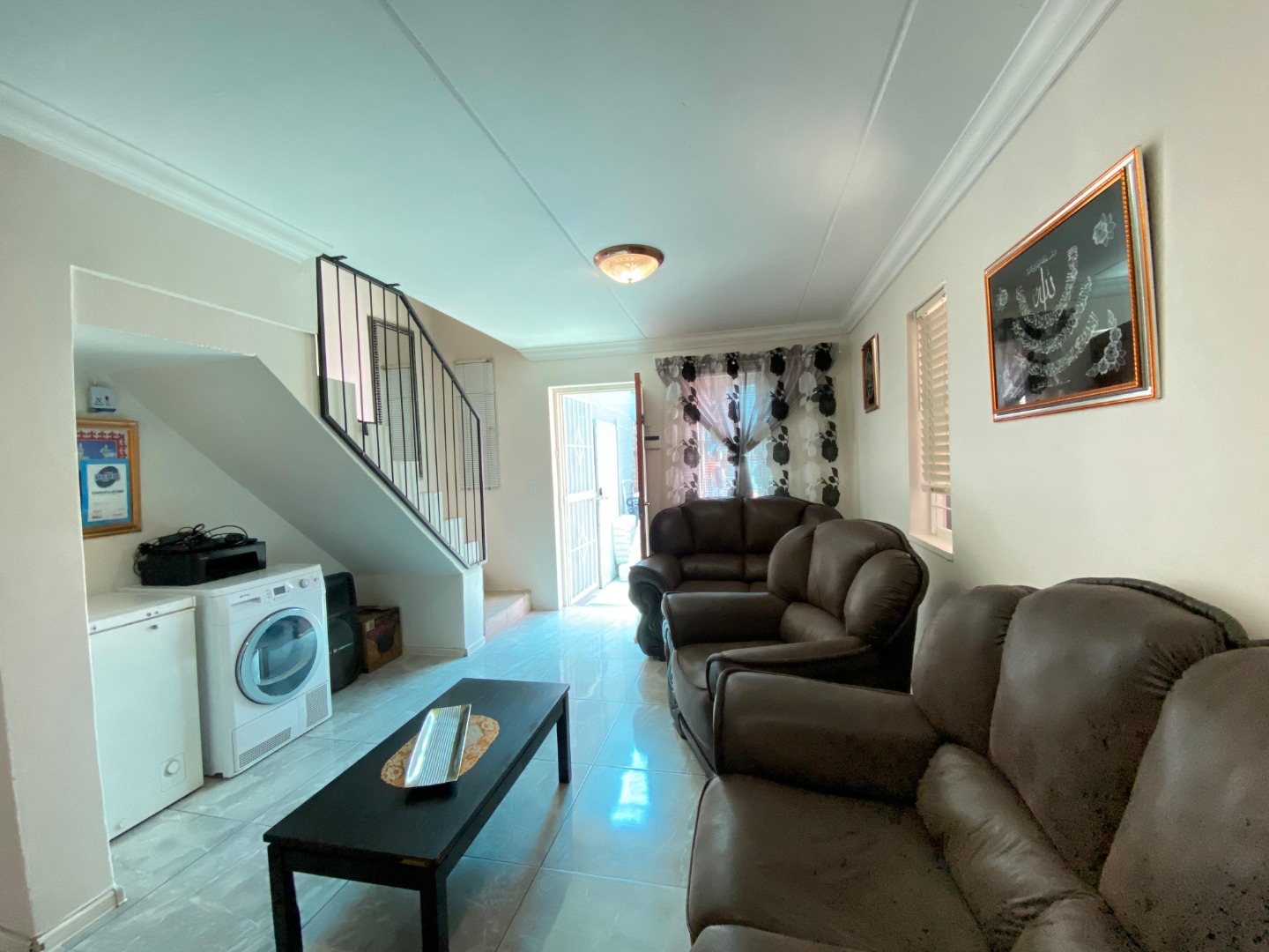 Downstairs: You are welcomed into a tiled lounge featuring a stylish accent wall, creating a warm and inviting atmosphere. The lounge flows seamlessly into the beautifully designed, fully fitted kitchen—perfect for family living and entertaining. This level also includes a family bathroom with a shower, basin and toilet, as well as a spacious bedroom with its own sliding door providing direct access to the driveway and front yard.