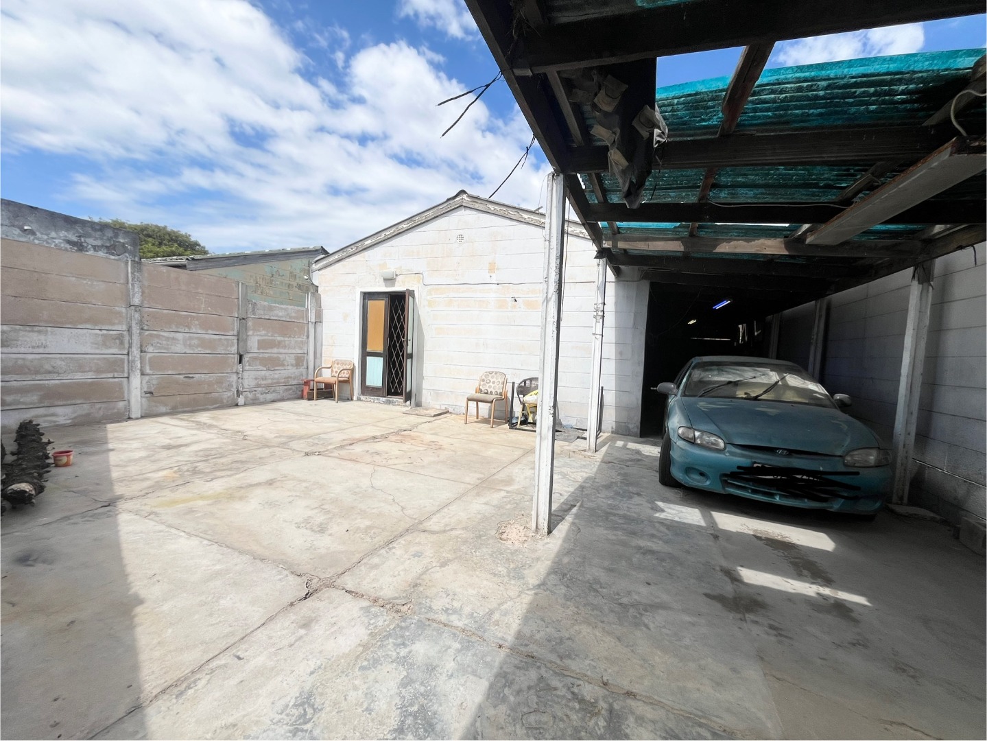 Discover this inviting residential property located in Lentegeur, Mitchells Plain, offering a solid foundation for a comfortable lifestyle. The exterior presents a large, paved front yard, providing ample space for parking up to four vehicles, complemented by a single garage. The property is securely enclosed with concrete fencing, featuring a distinctive artistic mural, and includes a front door with a protective awning and security bars on windows, ensuring peace of mind.