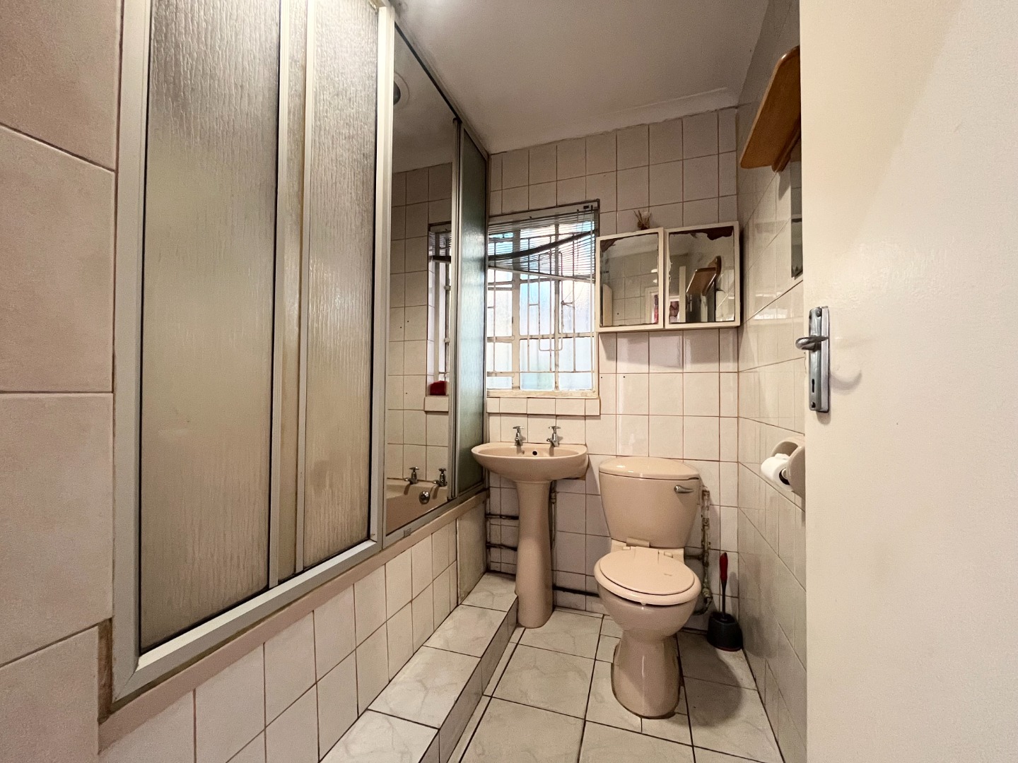 This home offers two well-proportioned bedrooms, providing comfortable private spaces. The versatile rooms include features like wooden laminate flooring and built-in overhead storage in one, catering to practical needs. A single bathroom serves the household, completing the essential amenities.