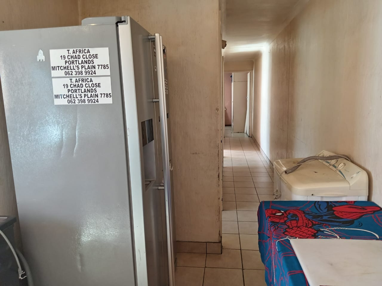 Discover a promising opportunity in the residential area of Portlands, Mitchells Plain. This single-story home presents a solid foundation for those looking to personalise and enhance their living space. The exterior, featuring a light-toned facade and a secure gated entrance, offers a canvas for modern updates, allowing you to create a welcoming first impression. Security is a consideration, with existing burglar bars on windows providing peace of mind. Inside, the residence comprises three comfortable bedrooms and a single bathroom, catering to family living. The layout includes a dedicated lounge area, complete with tiled flooring and ample natural light, providing a functional space for relaxation. The kitchen, while currently utilitarian with a stainless steel sink and space for appliances like a washing machine, offers scope for a contemporary redesign to suit your culinary preferences. Visible piping and electrical components suggest an opportunity for aesthetic improvements. The property benefits from three dedicated parking spaces, a valuable asset in this suburban setting. The paved exterior areas and boundary walls contribute to a private environment. This home is also wheelchair friendly and accommodates pets, adding to its versatility for various lifestyles. The outdoor space, though currently unkempt, holds potential for landscaping to create an inviting garden or entertainment area. Situated in Portlands, this property offers a chance to invest in a well-established community. It's an ideal prospect for buyers seeking a renovation project to add significant value and tailor a home to their exact specifications. Key Features: * 3 Bedrooms, 1 Bathroom * 1 Lounge, 1 Kitchen * 3 Parking Spaces * Single-story dwelling * Wheelchair friendly * Pets allowed * Existing burglar bars * Gated access * Paved exterior areas