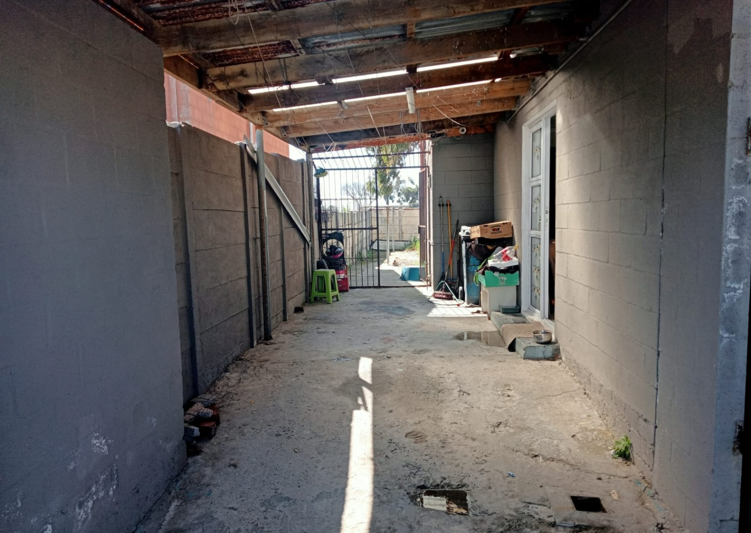 A laid foundation in the yard presents a fantastic opportunity for future extensions or outdoor enhancements.