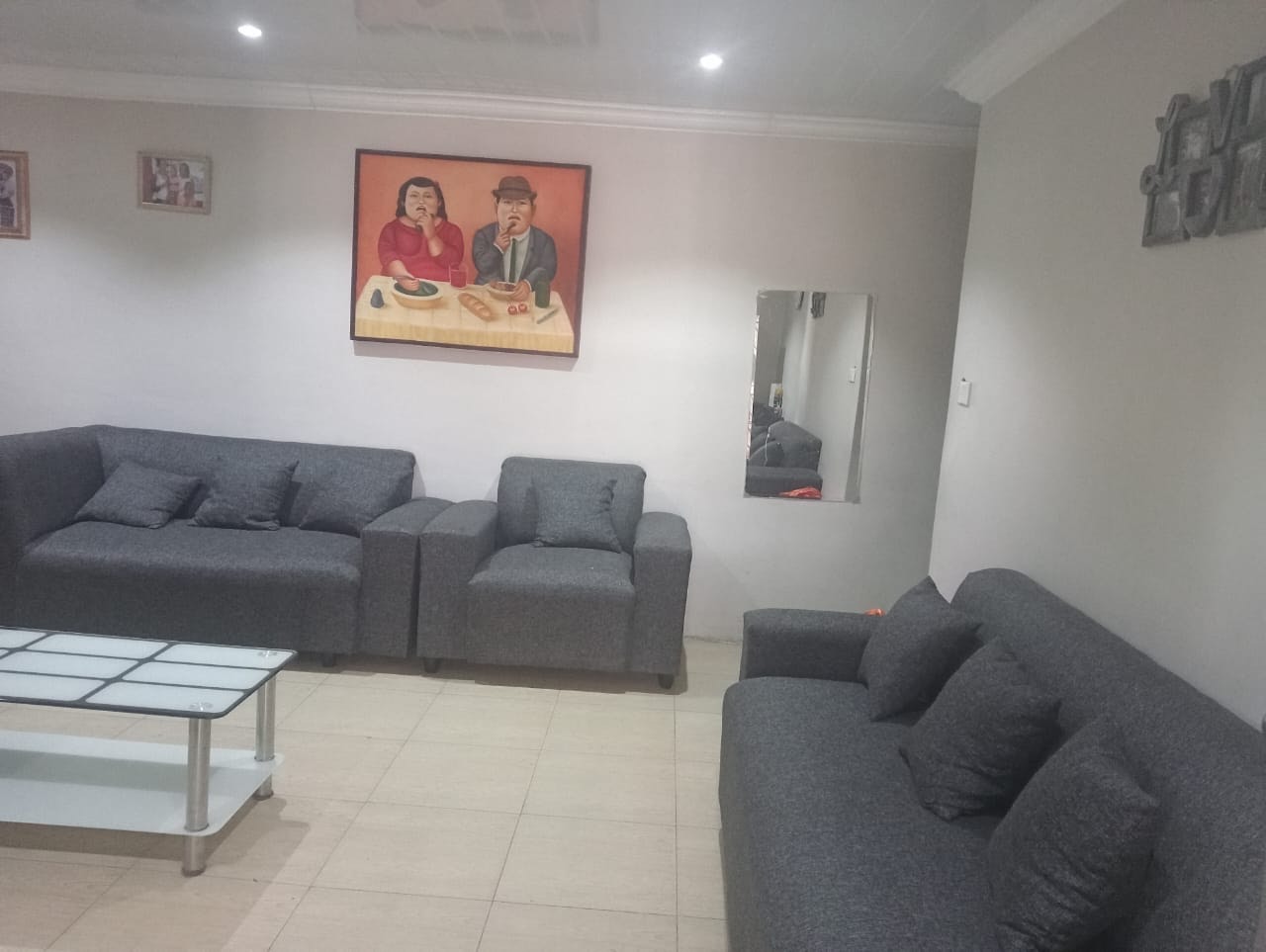 This property boasts two comfortable bedrooms, each fitted with practical tiled flooring. Storage is well-addressed with a large mirrored wardrobe in one bedroom and a modern white wardrobe in another, catering to your organizational needs. A single well-appointed bathroom serves the household.