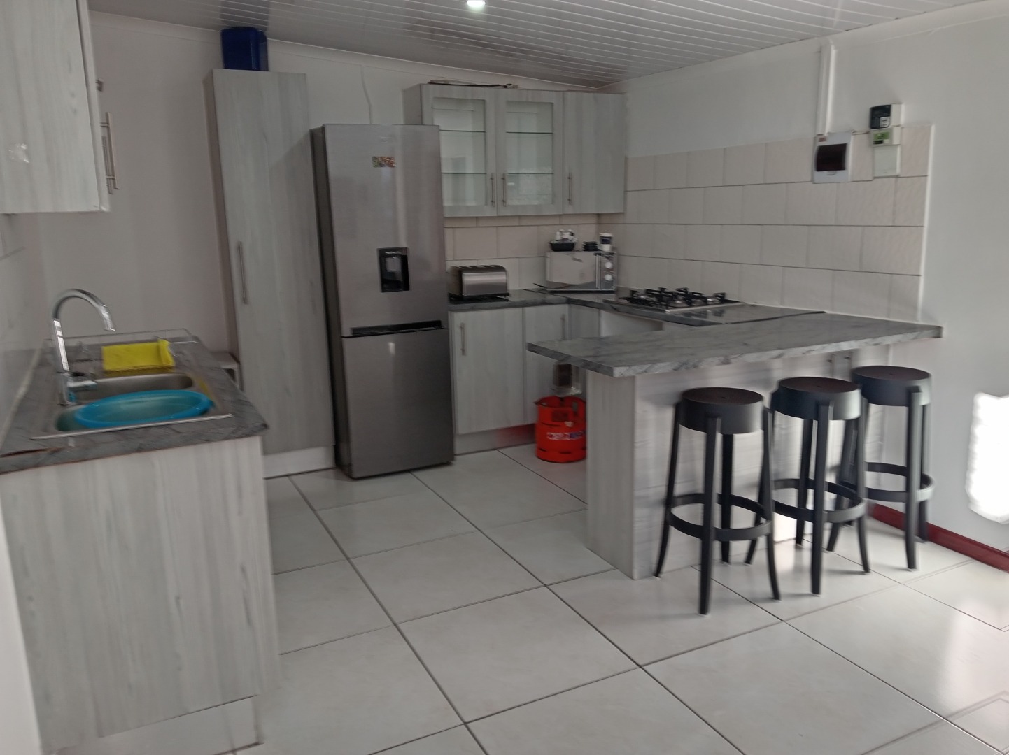 PLEASE NOTE THIS IS A SEPERATE ENTRANCE AT THE BACK OF THE MAINE HOUSE WITH SHARED GARAGE FOR PARKING FOR ONE CAR ONLY AND SHARED WASHING LINE .THIS PROPERTY IS ONLY FOR 3 PEOPLE FOR THE MOST .Step into this lovely 2-bedroom, 1-bathroom rental in Athlone, Cape Town, offering a fantastic blend of comfort and modern living. You'll immediately notice the super neat open-plan living area that flows seamlessly into the contemporary kitchen. The kitchen is a real highlight, boasting crisp white cabinetry, a stylish black and white checkered backsplash, and a practical island – perfect for whipping up meals or enjoying a casual breakfast. The entire space feels wonderfully bright and airy, thanks to the clean, light tiled floors, fresh white walls, and an abundance of natural light streaming in from the large sliding door. Recessed lighting adds a touch of sophistication for those cozy evenings, and there's even a pre-installed TV wall mount ready for your entertainment setup. With a dedicated garage, parking is never an issue.