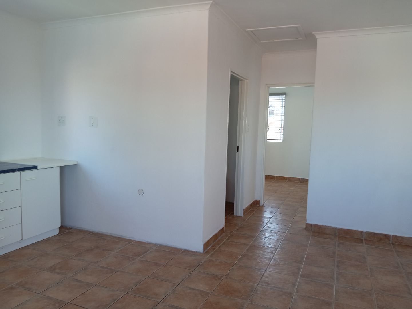 * Freshly painted white walls and tiled flooring