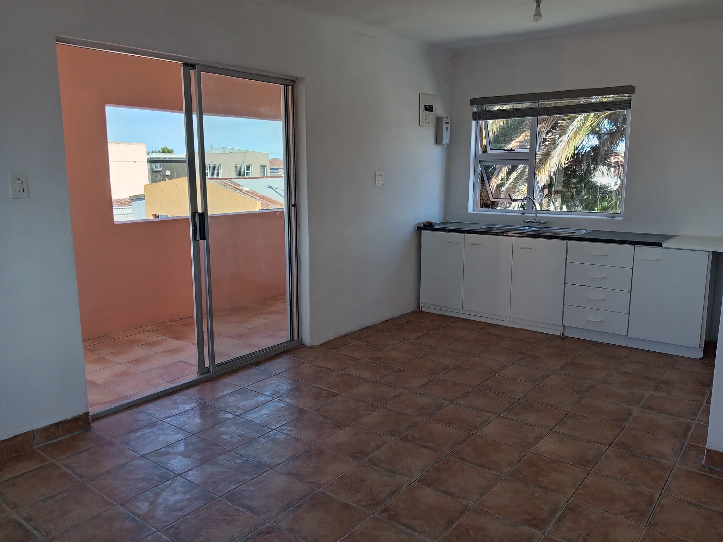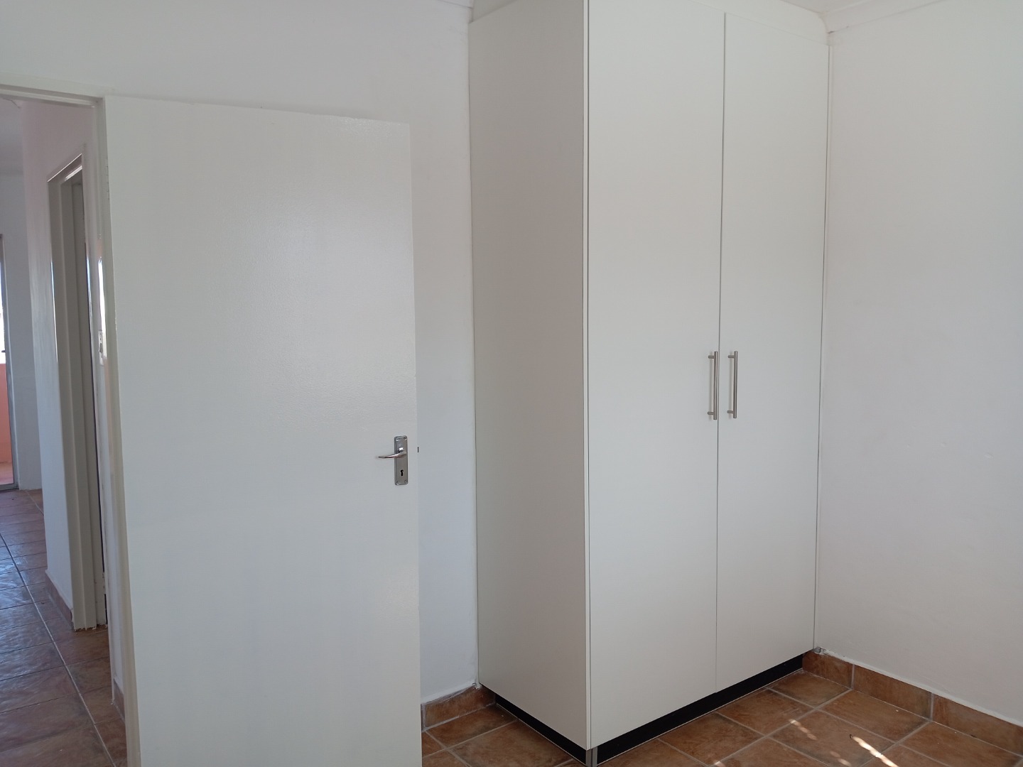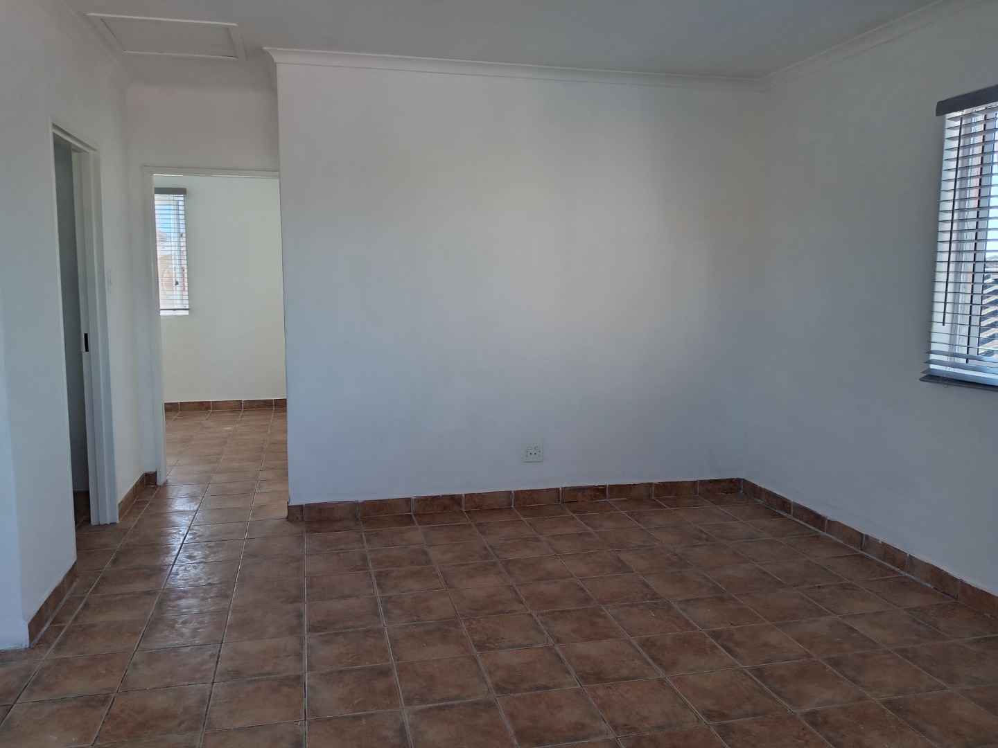* Freshly painted white walls and tiled flooring