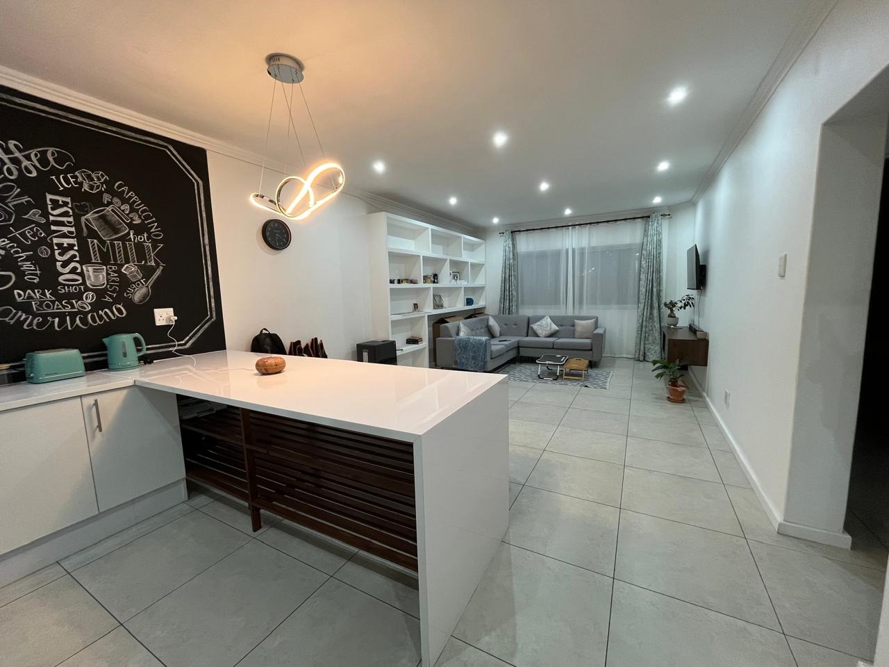 This apartment features a modernize open plan kitchen with build in cupboards,stove , hob and extractor, spacious lounge area equipped with top-of-the-line sleek finishes. Whether you're a seasoned chef or simply enjoy preparing meals, this kitchen will meet all your culinary needs.
