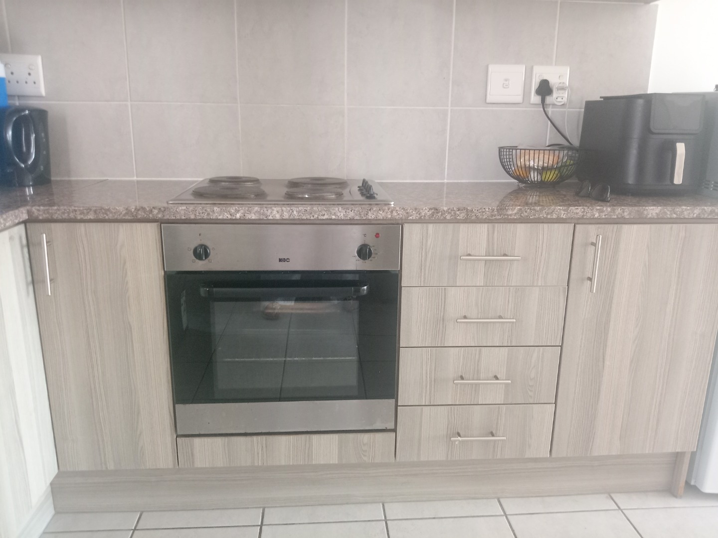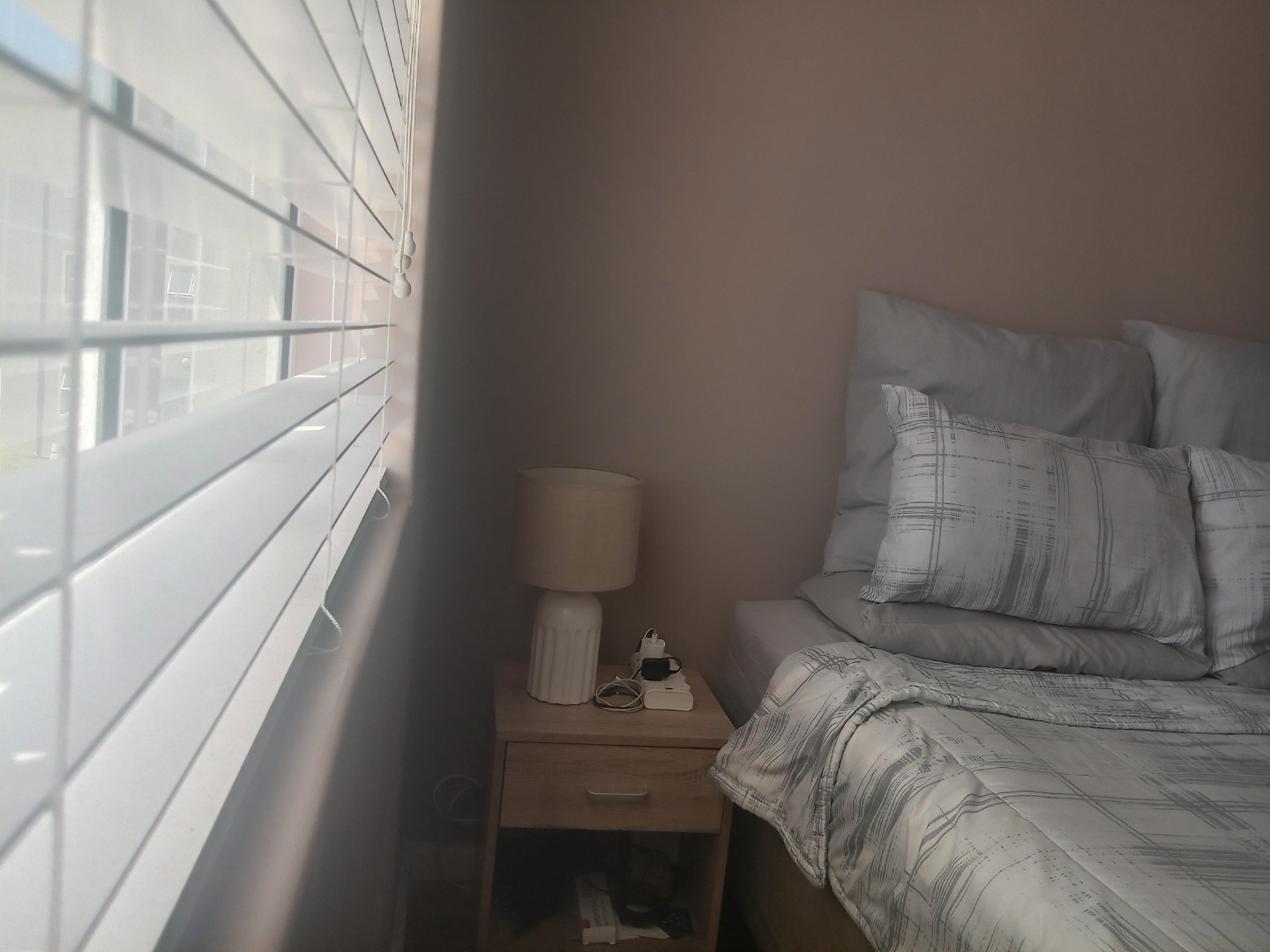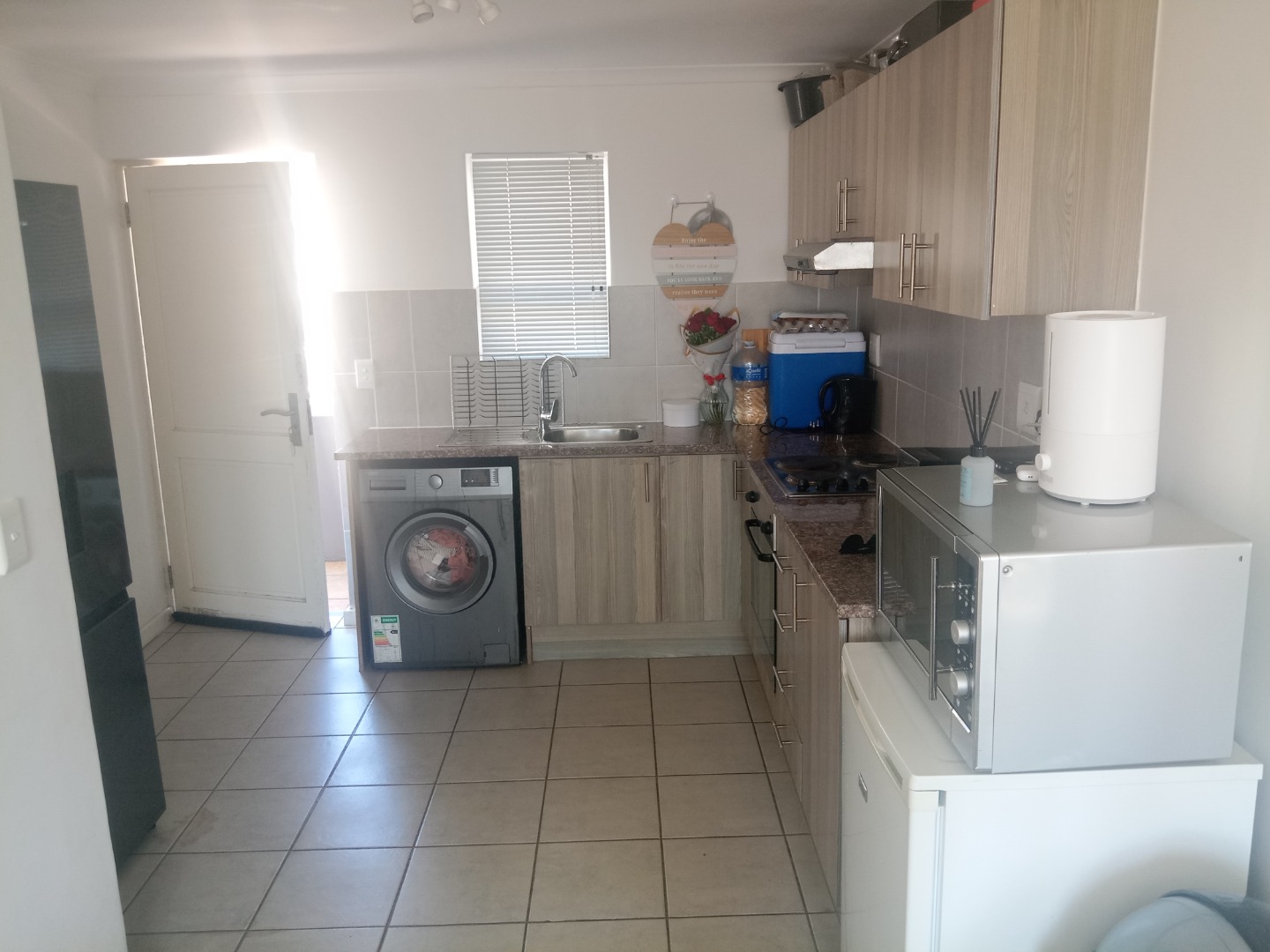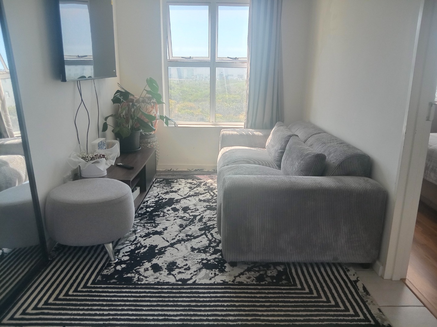 Neat and secure, this first floor flat offers an open plan modern open kitchen, with built in cupboards, hob and oven. Granite kitchen tops and modern layout includes an undercounter washing machine point. Lounge is sunny and cosy , fiber and DSTV ready, overlooks the local nature reserve. Spacious bedroom with laminated floors and built in cupboards for extra storage. Bathroom is neat and comes with an overhead shower.
