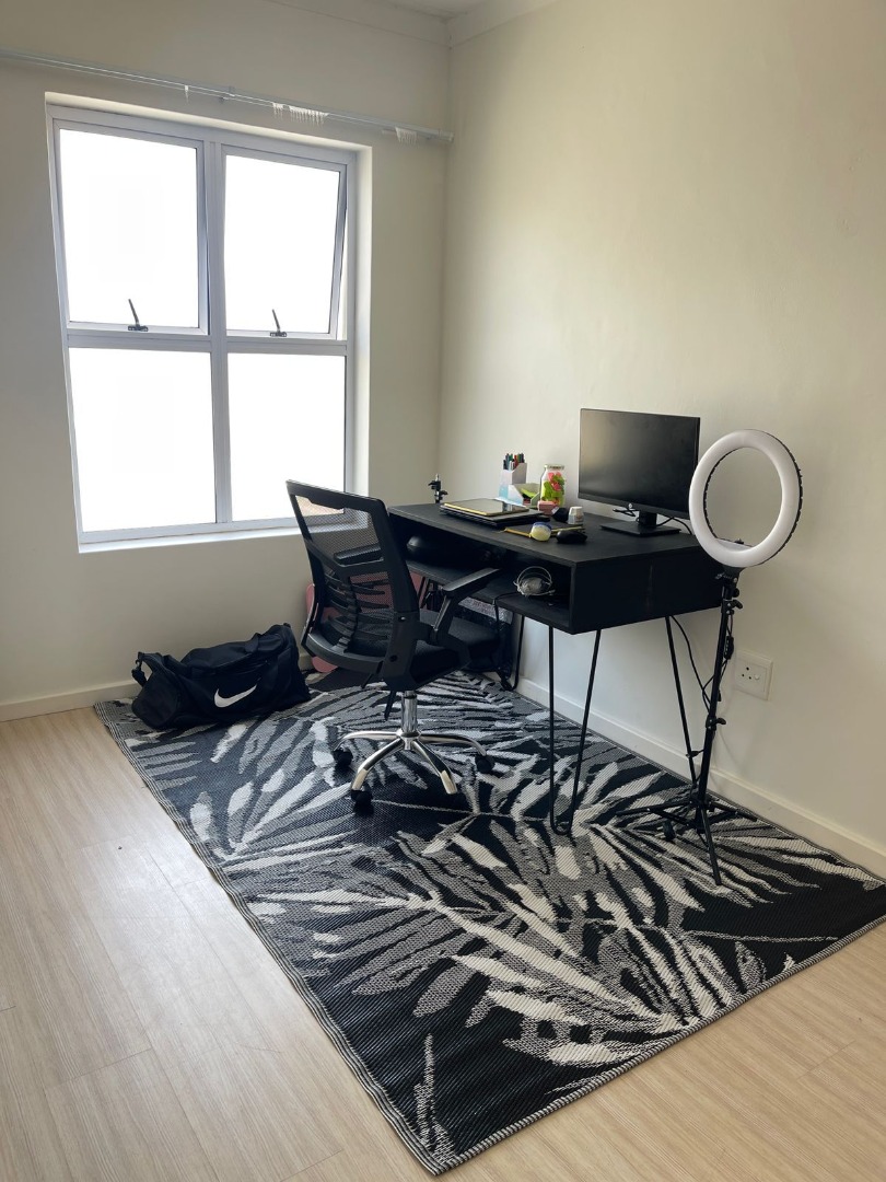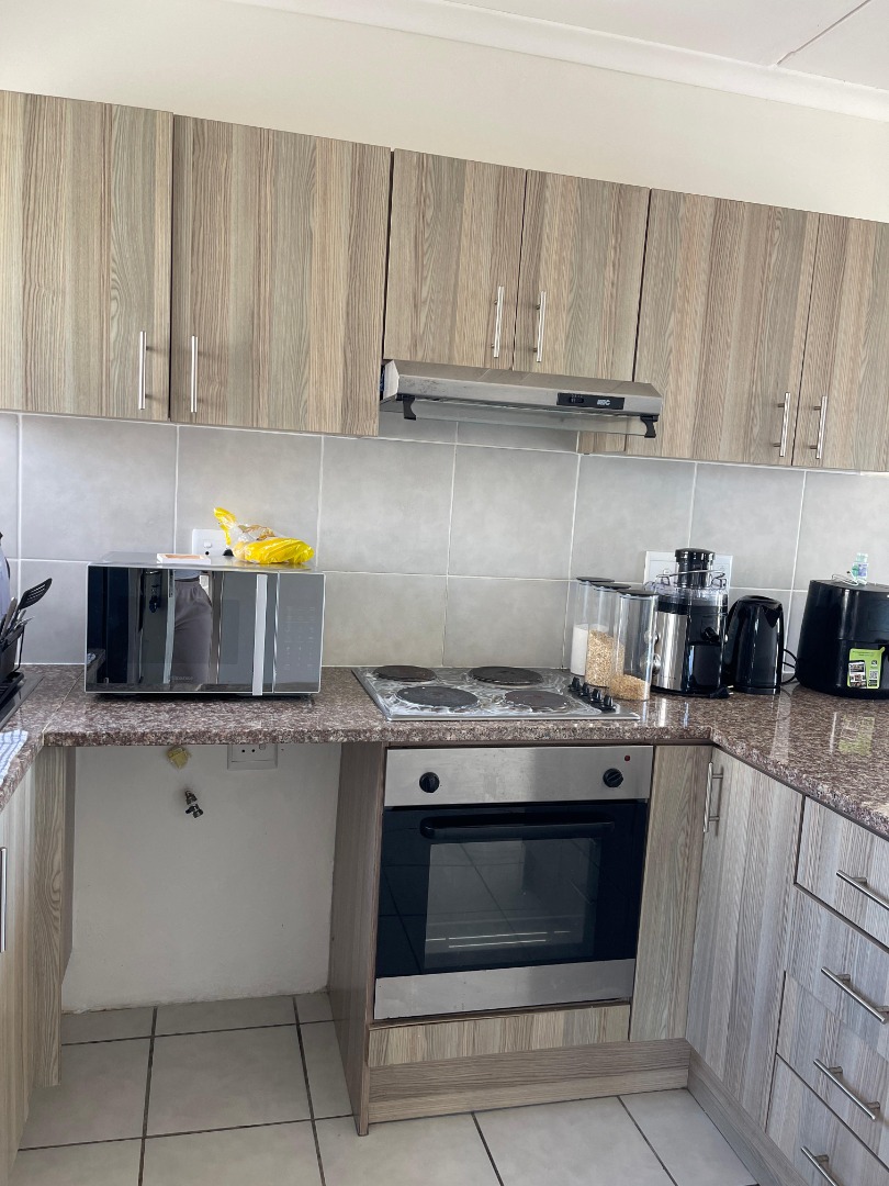 Discover this modern 2 bedroom, 1 bathroom apartment available for rent in the heart of Costa Da Gama, Cape Town. -This sunny and secure flat features a contemporary kitchen equipped with granite countertops, stylish cabinetry, a built in oven, hob, and extractor fan, complemented by durable tiled flooring. The layout includes a comfortable open plan lounge with sliding door that leads to balcony, with stunning mountain and nature views. Both bedrooms are spaicous and have aminated floor as well as built in cupboards. Bathroom is fully tiled , bathe has overhead shower , gesyer is linked to solor panels.