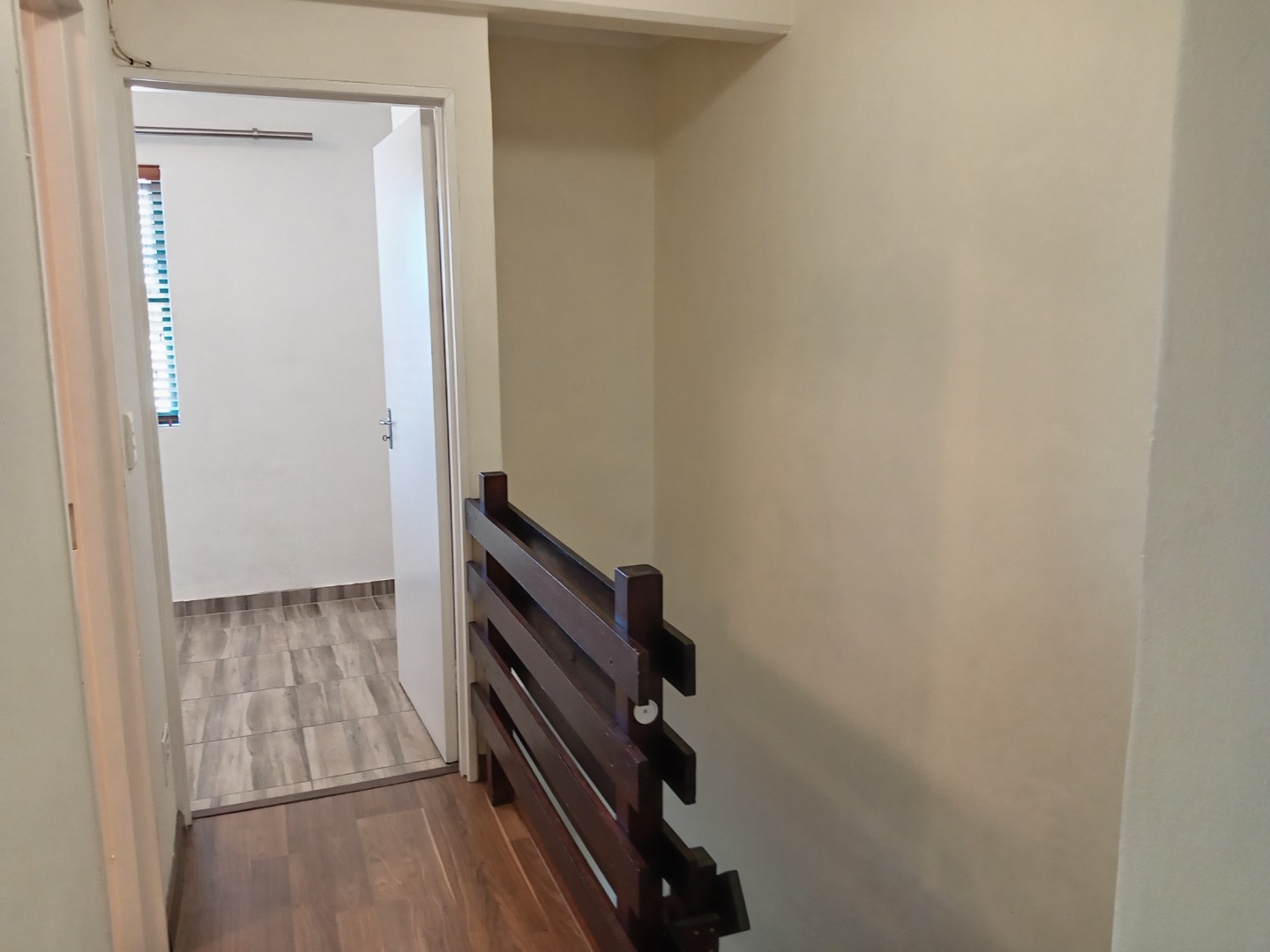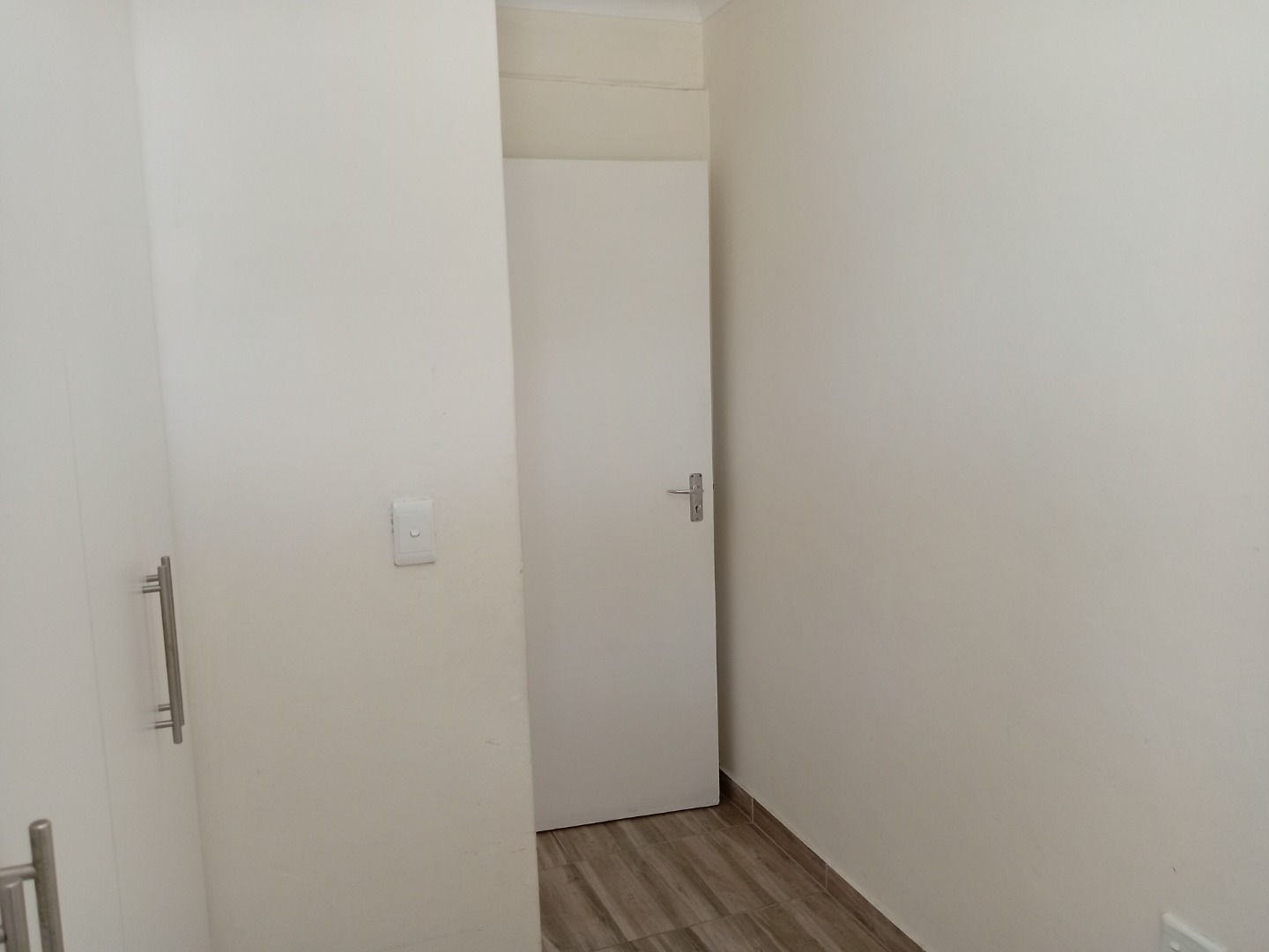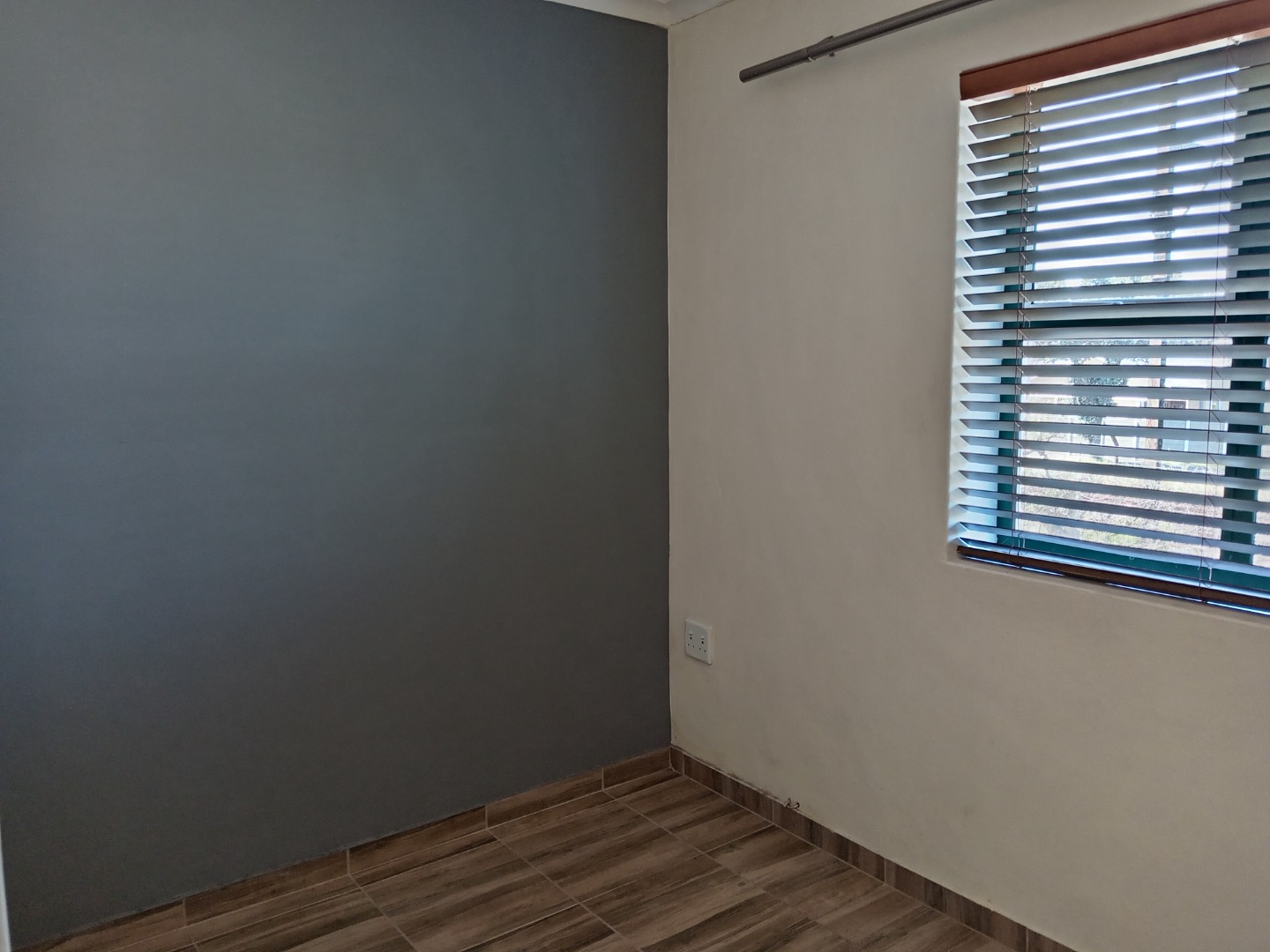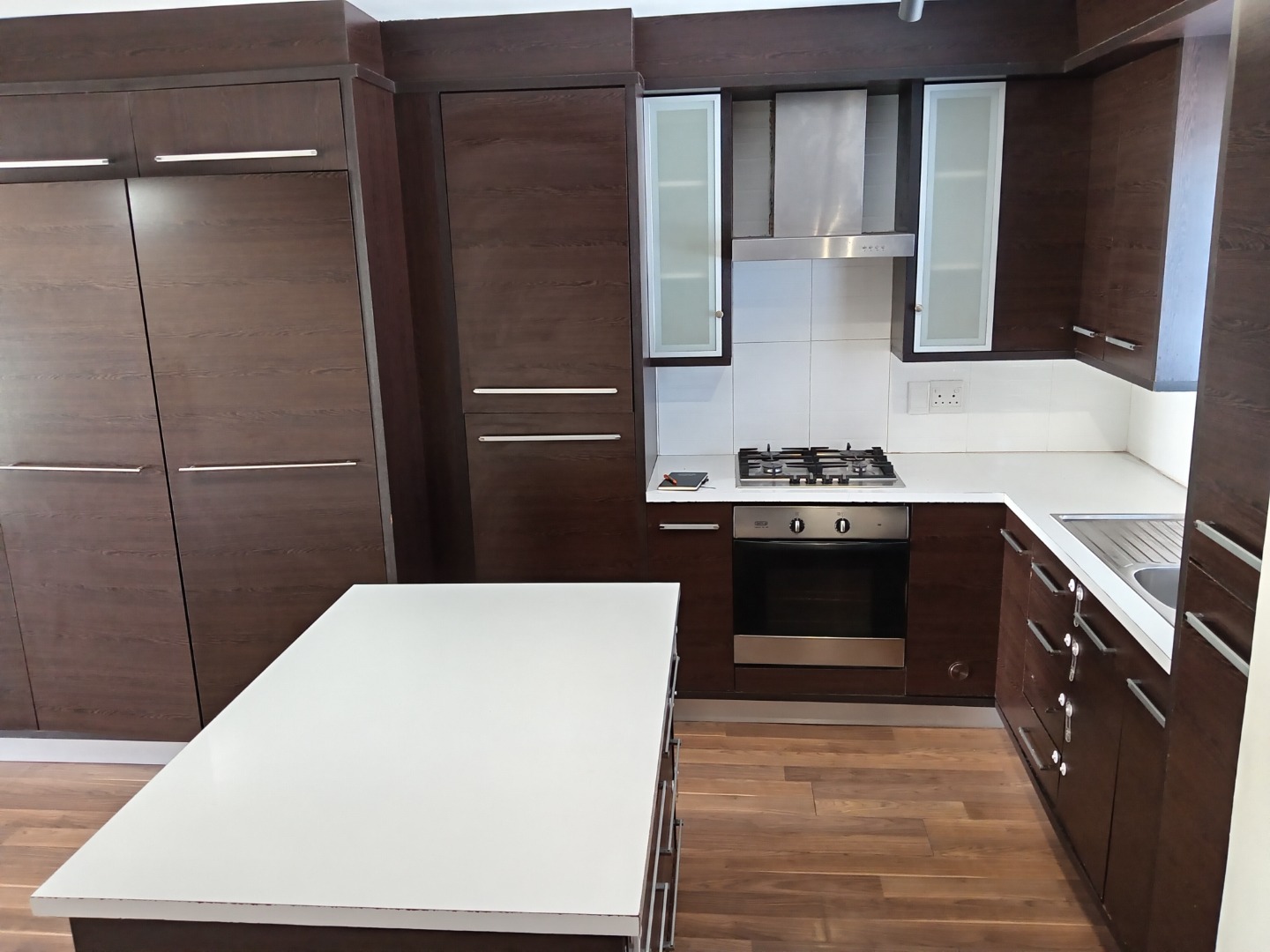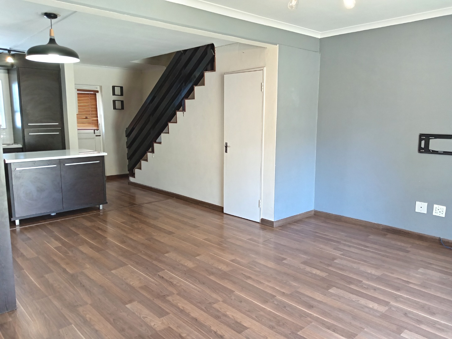 Discover comfortable living in this inviting 3-bedroom, 1-bathroom rental property located within a secure complex in Rondebosch East, Cape Town. This residence offers a practical layout designed for modern lifestyles. The contemporary kitchen is a highlight, boasting sleek dark wood-effect cabinetry, ample storage including full-height pantry units, and pristine white countertops with a subway tile-style backsplash. Integrated appliances, including a hob and oven, enhance functionality, complemented by a versatile kitchen island for additional workspace. A comfortable lounge area completes the interior living spaces.