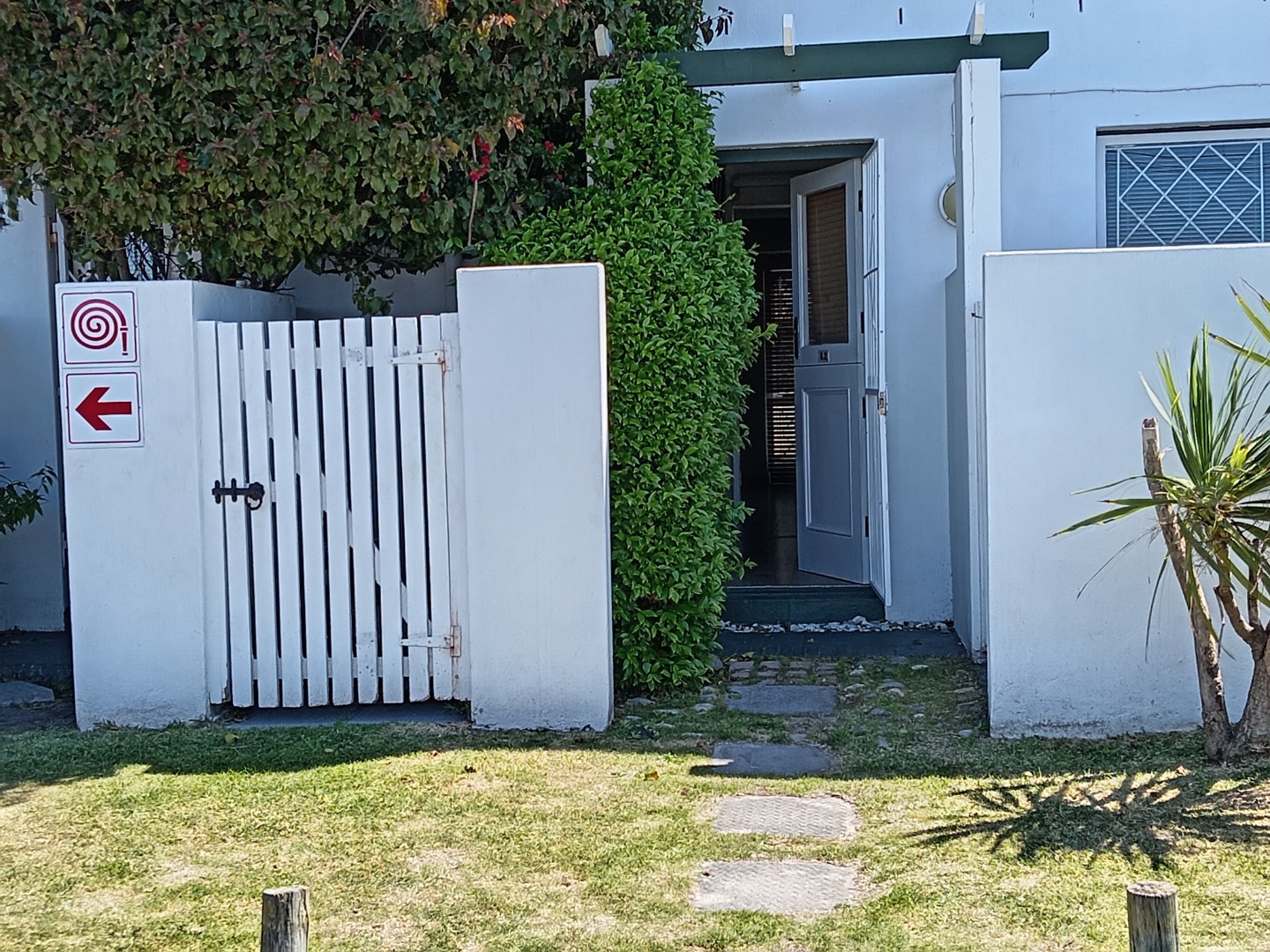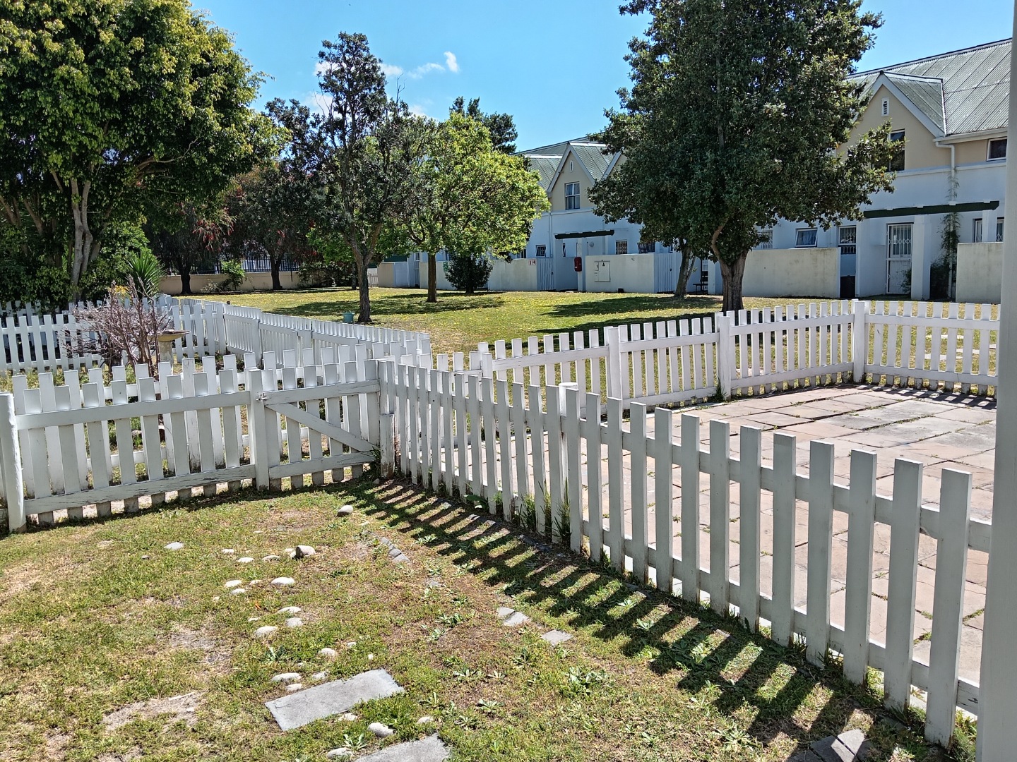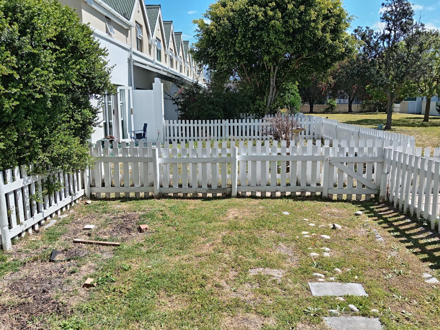 The exterior features a private gated entrance, attractive landscaping with lush greenery, and stepping stones leading to a small garden area. Residents will appreciate the refreshing pool, perfect for warm Cape Town days. This pet-friendly property ensures your furry companions are welcome, and a dedicated parking bay is provided for convenience.