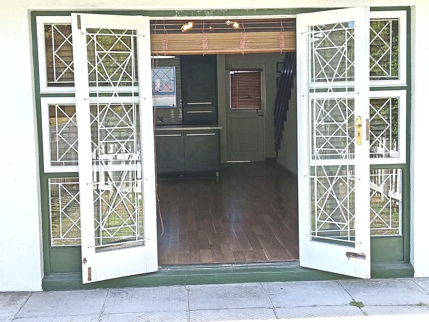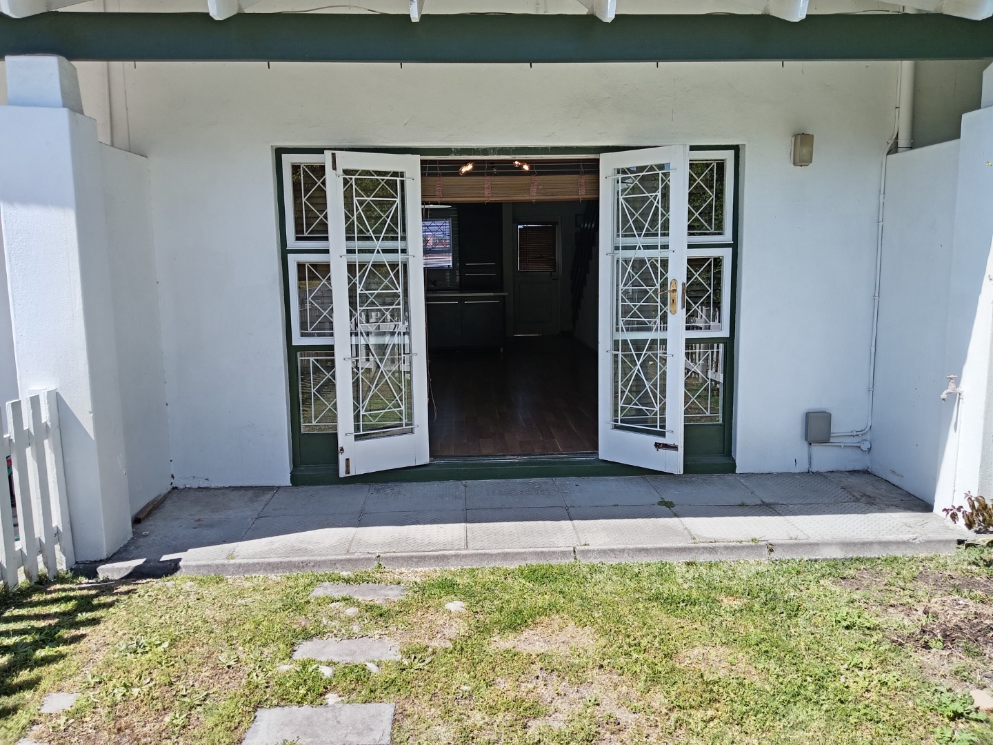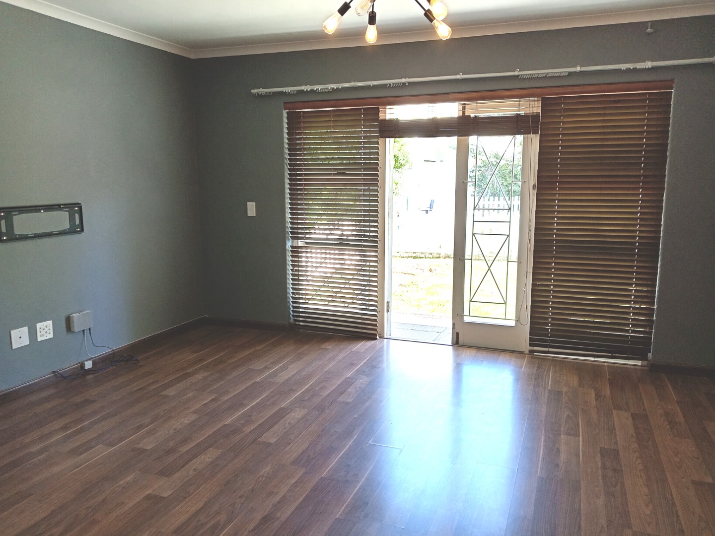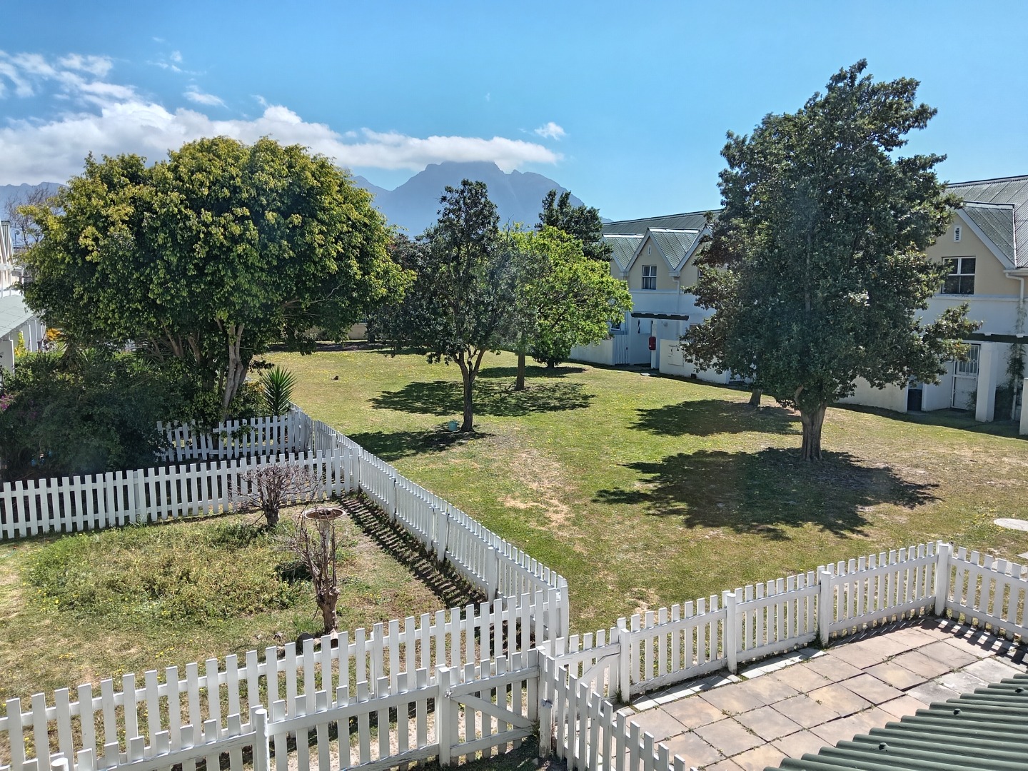 The exterior features a private gated entrance, attractive landscaping with lush greenery, and stepping stones leading to a small garden area. Residents will appreciate the refreshing pool, perfect for warm Cape Town days. This pet-friendly property ensures your furry companions are welcome, and a dedicated parking bay is provided for convenience.