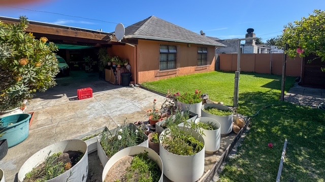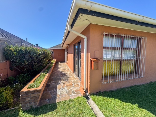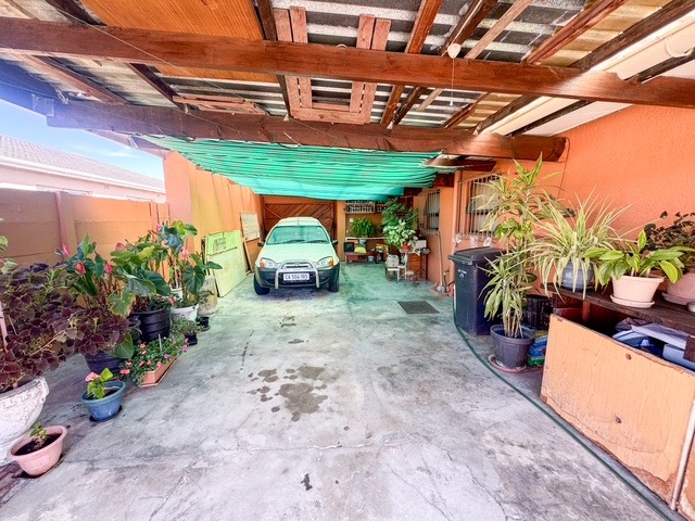 Discover this inviting three-bedroom, two-bathroom home situated on a generous 460 sqm erf in Grassy Park, Cape Town. The property presents a distinctive terracotta-colored exterior with a dark tiled roof, complemented by a neat front lawn and a paved driveway leading to a single garage and additional parking for up to six vehicles. The well-maintained frontage offers a welcoming first impression.