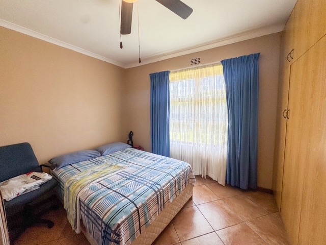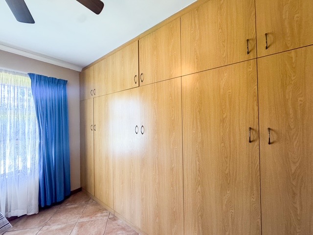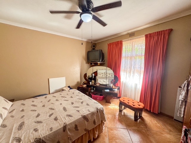 Outdoor features include a well-maintained garden area with a paved pathway and neat planter boxes, offering a pleasant space for relaxation. For enhanced security, all windows are fitted with security bars. The property benefits from a borehole, contributing to water resilience, and is fibre-ready, ensuring modern connectivity.