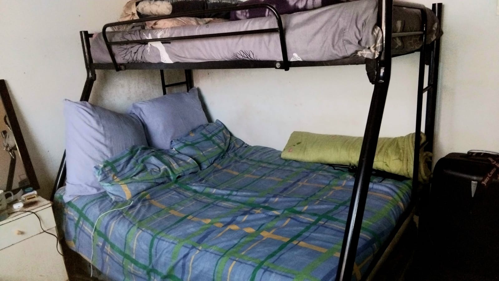 Inside, the residence features two comfortable bedrooms and a single bathroom, catering to essential living needs. The layout includes a functional kitchen, equipped with an electric stove, a modern refrigerator, and practical wooden base cabinets, alongside tiled flooring and backsplash. While functional, the kitchen offers potential for modern updates to truly shine. The spacious combined living and dining area boasts hardwood floors and a traditional wood-paneled ceiling, providing a warm and inviting atmosphere for relaxation and entertaining.