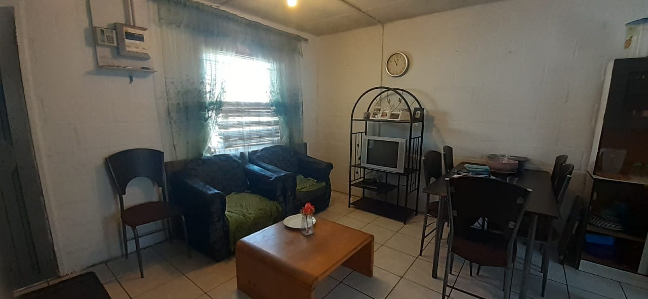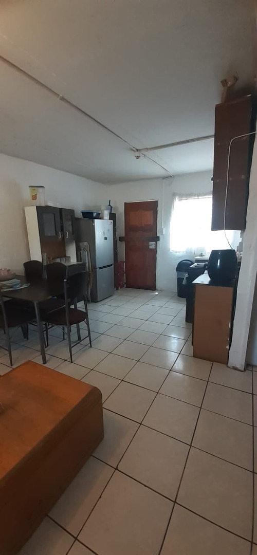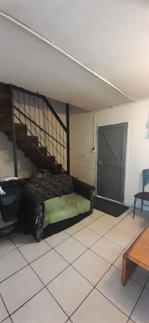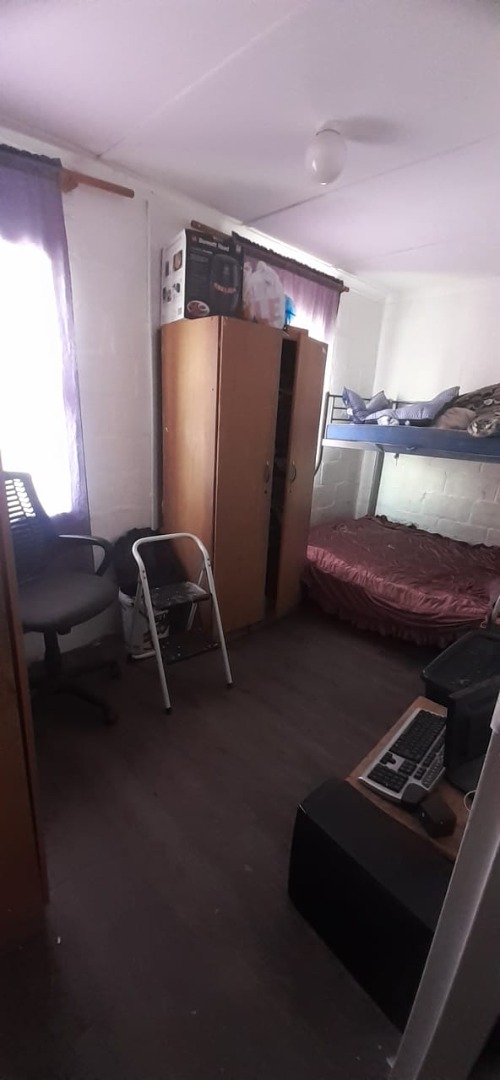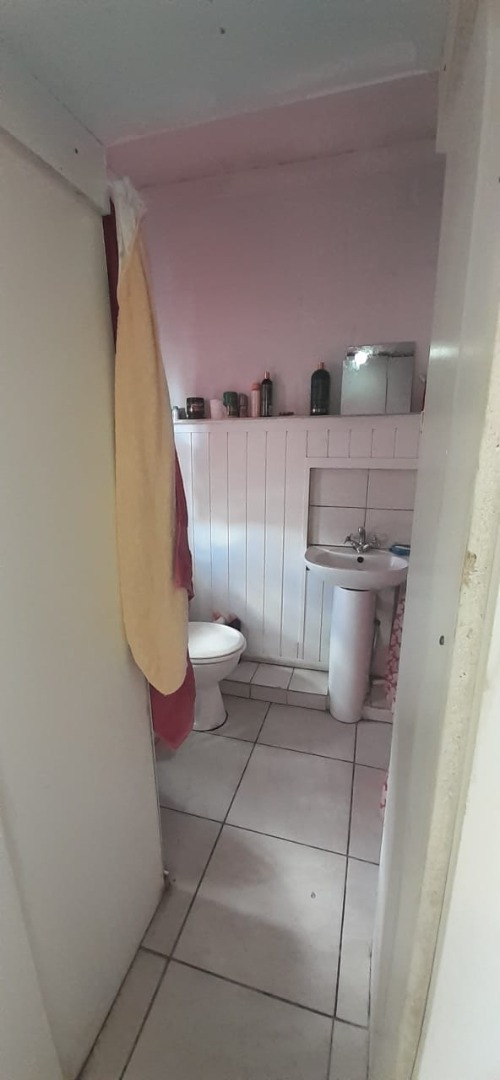 A corner property in the suburban area of Hanover Park, Cape Town, presents a practical and secure residential opportunity. The exterior features a functional covered carport, providing secure parking for two vehicles within an enclosed metal cage structure, ensuring direct street access and convenience. This multi-story residence offers a solid foundation for those looking to invest and personalise their living space. Inside, the home features durable tiled flooring throughout the main living areas. The ground floor encompasses a combined lounge and dining space, offering an open and functional environment. The kitchen, while presenting a dated aesthetic, is equipped with essential appliances, ample cabinet storage, and benefits from natural light, providing a functional space for meal preparation. A staircase provides access to the upper level, indicating a multi-story design. The property includes two bedrooms and two bathrooms, catering to family needs. One of the bedrooms is functional, featuring a bunk bed, wardrobe, and desk, with hard flooring and natural light. The bathrooms are equipped with basic essentials such as a toilet, sink, and bathtub, with partially tiled walls and tiled floors for practicality. These areas offer a clear opportunity for renovation to enhance comfort and style. Situated in the established suburban community of Hanover Park, this home is ideal for a family seeking a property with potential for modernisation and improvement. Its practical layout and secure parking contribute to its appeal as a valuable asset in a well-located area. Key Features: * 2 Bedrooms * 2 Bathrooms * 1 Lounge * 1 Kitchen * 2 Secure Parking Spaces * Tiled Flooring Throughout * Multi-level Layout * Corner Property Location * Direct Street Access