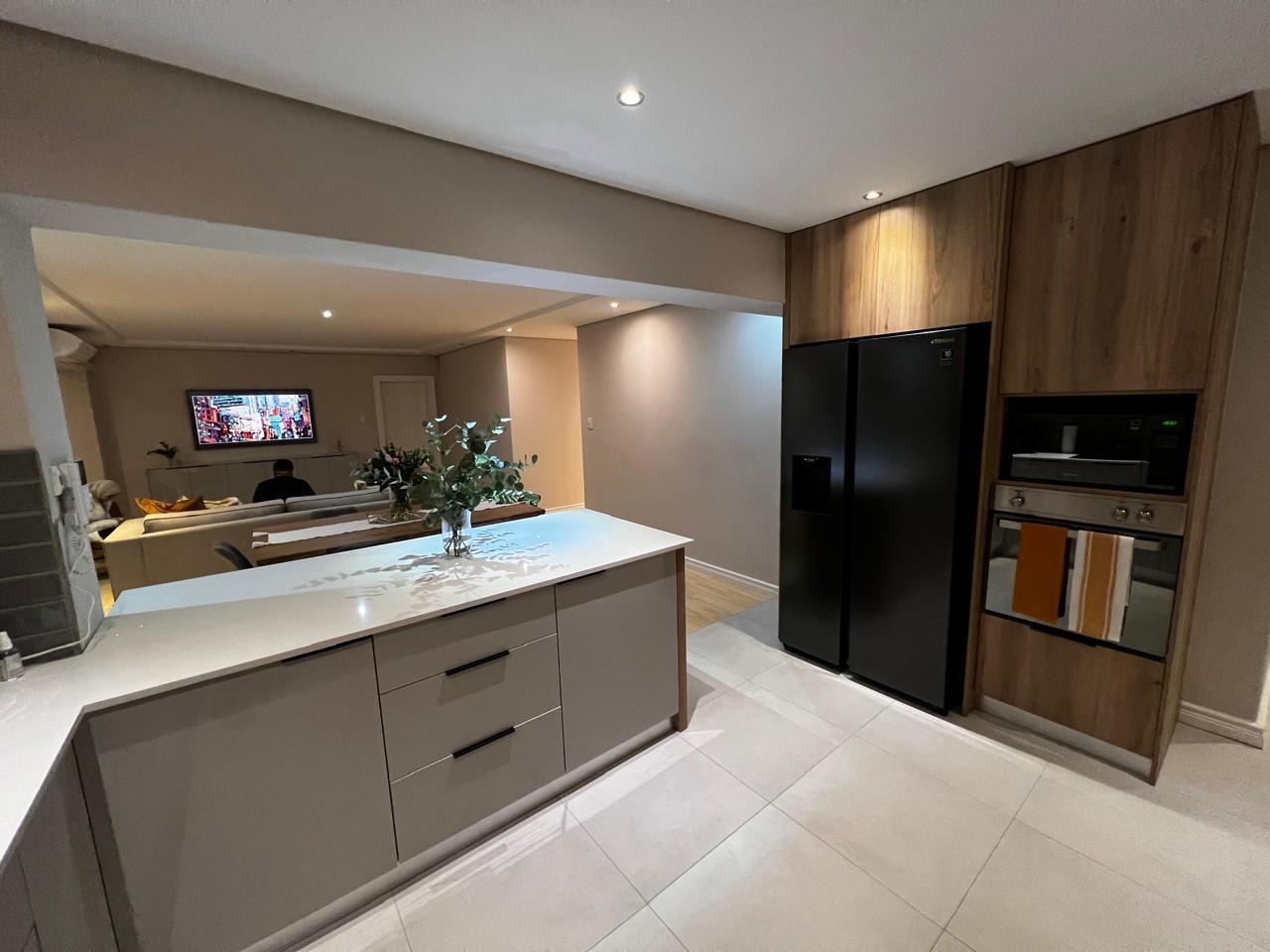 Upon arrival you are drawn into a light-filled open-plan living area where the kitchen, lounge, and dining room flow effortlessly together—creating the perfect setting for both intimate family moments and lively gatherings with friends.