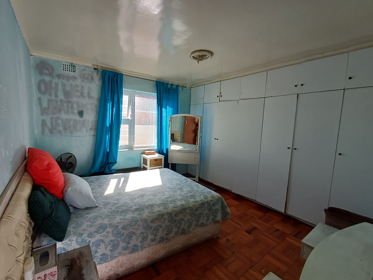 This property offers 3 bedrooms the main bedroom has its own ensuite, second bedroom has wall to wall build-in cupboards and is the only room with cupboards.