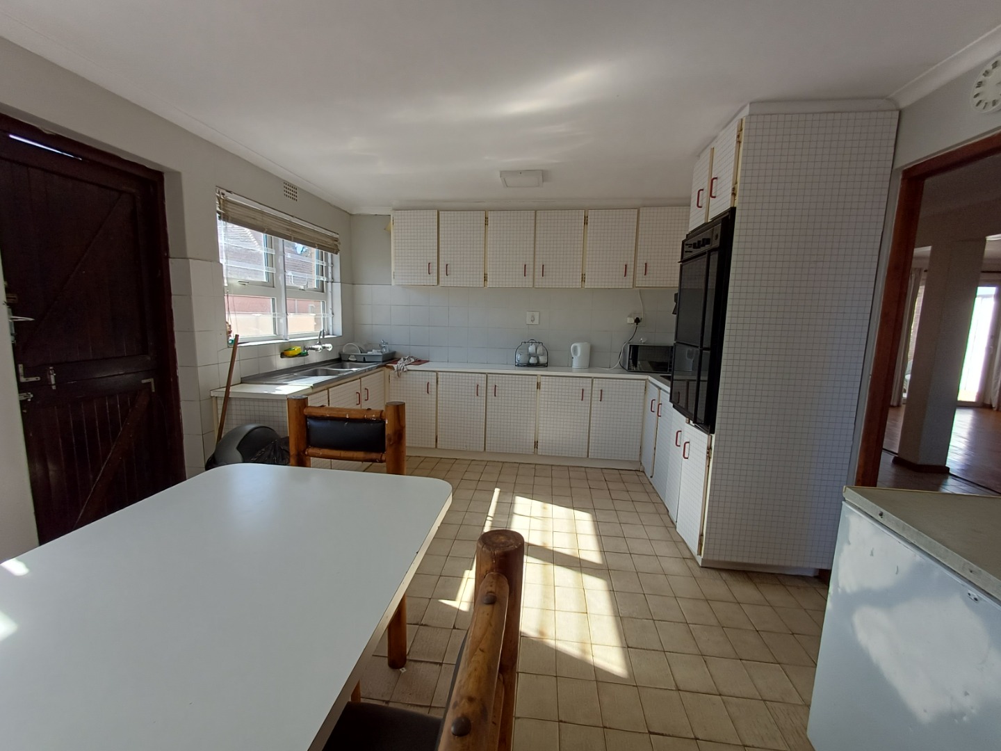 Light and bright Kitchen– fully fitted with double sink and oven with electric hob with a dedicated area for family meals
