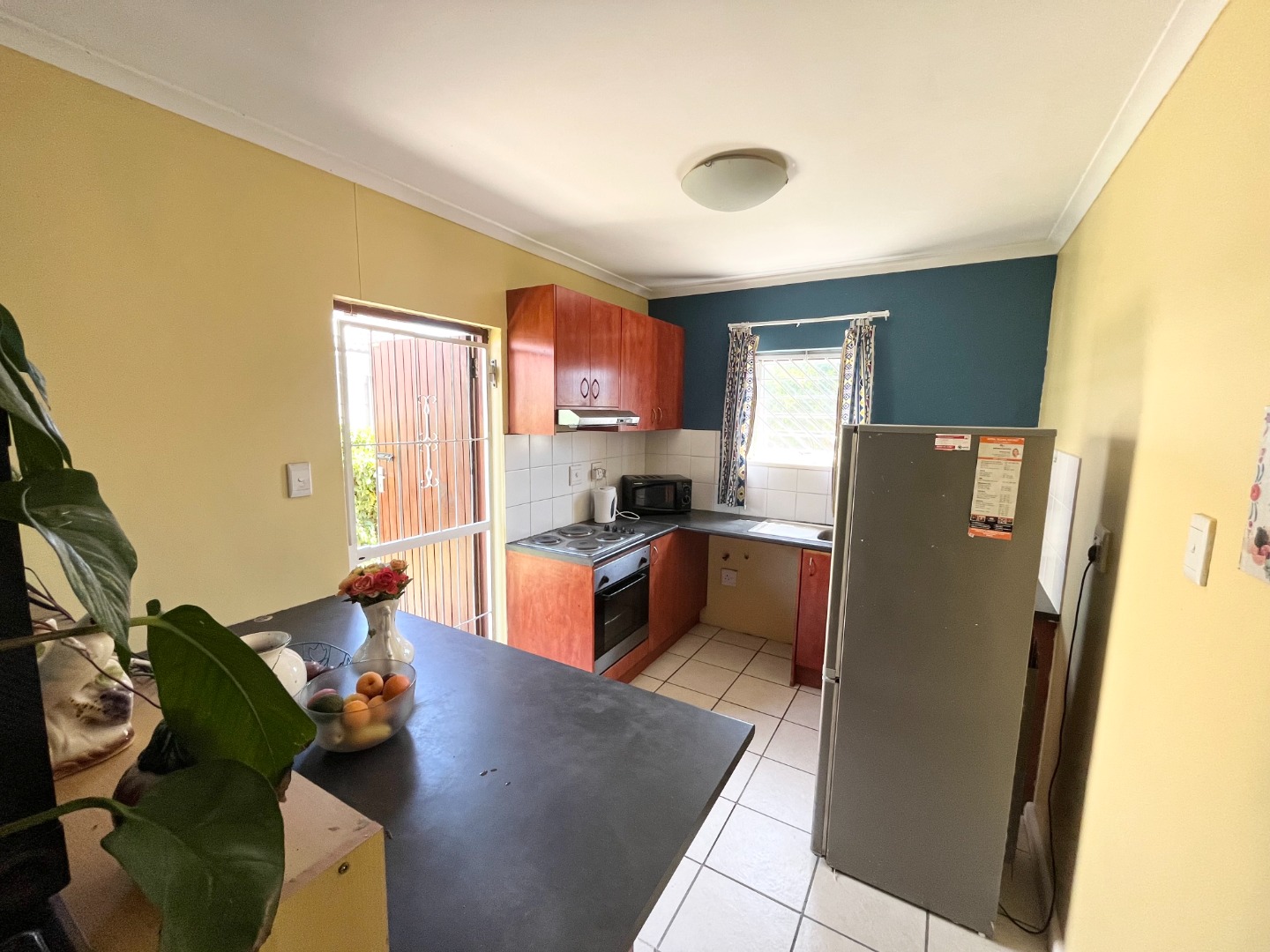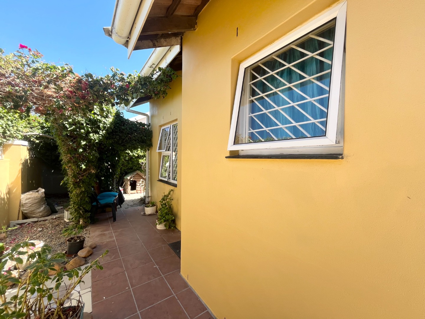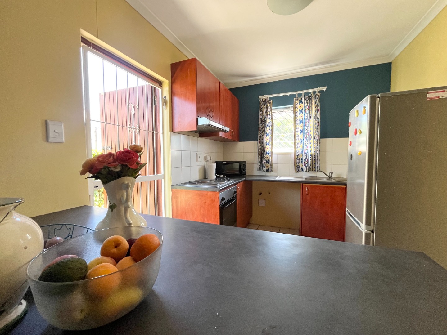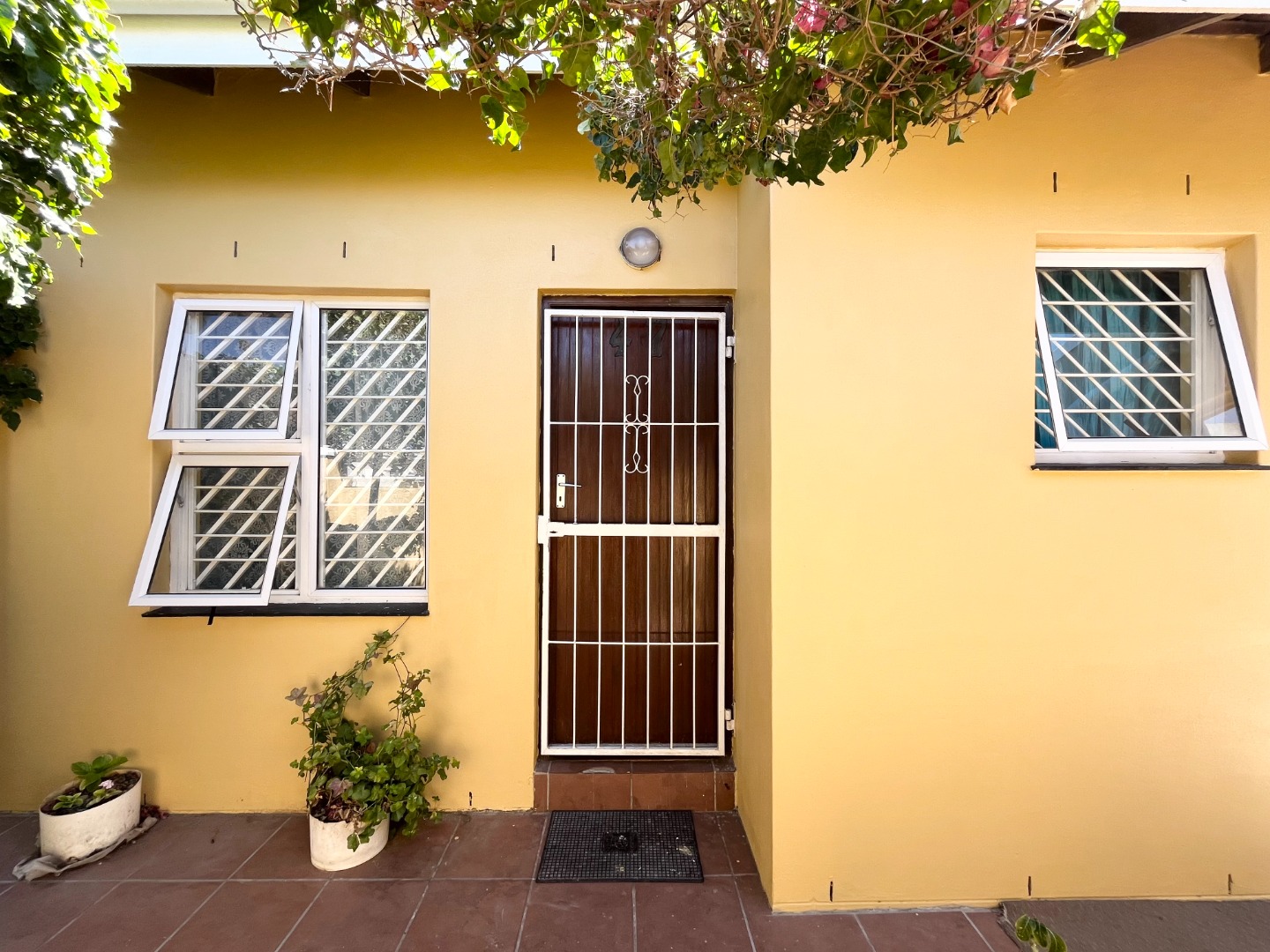 with a security gate fitted both on the front and back door, as well as burglar bars.