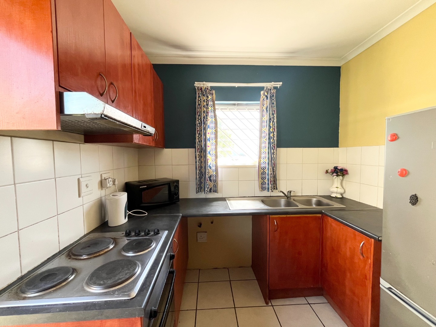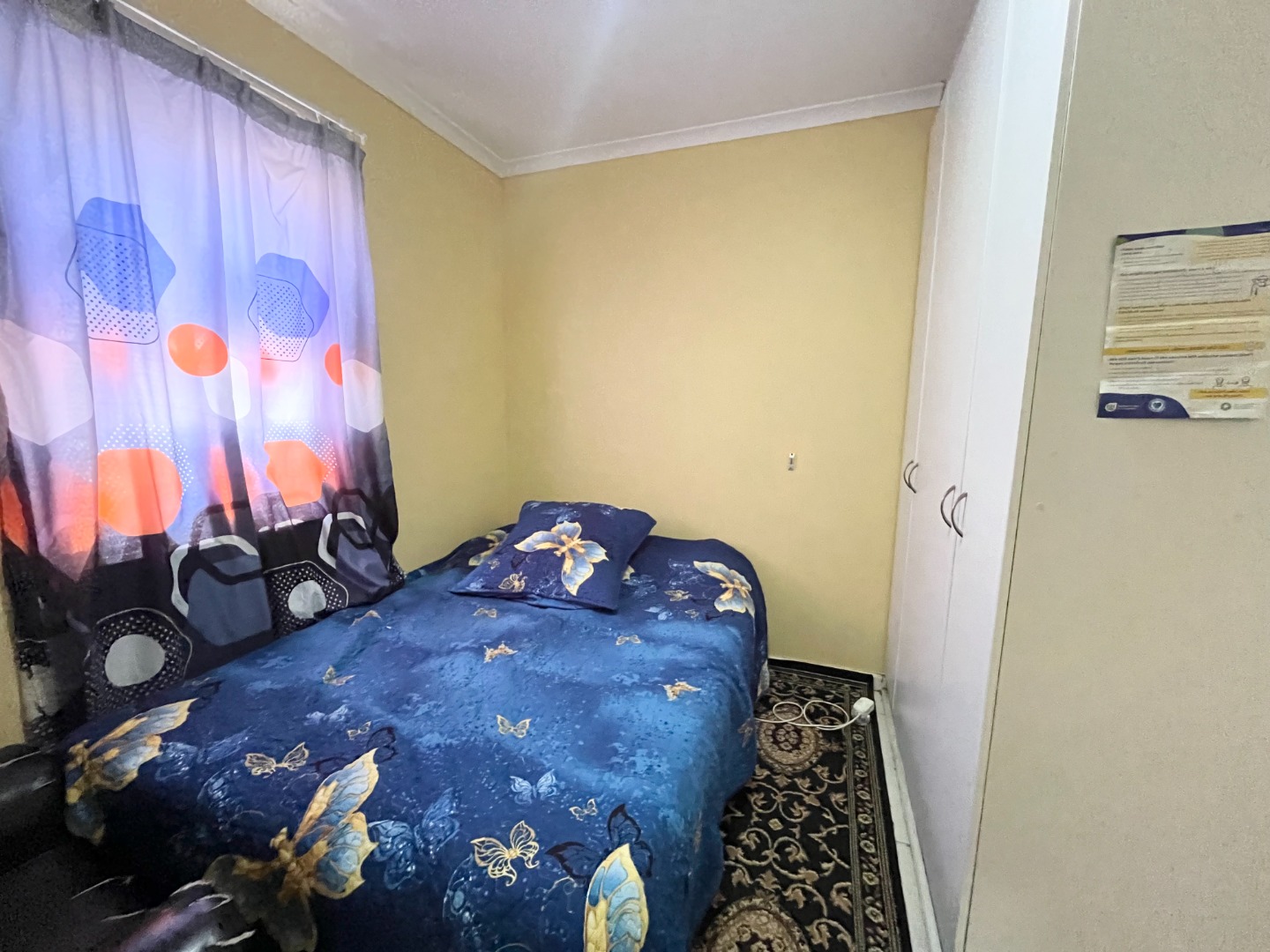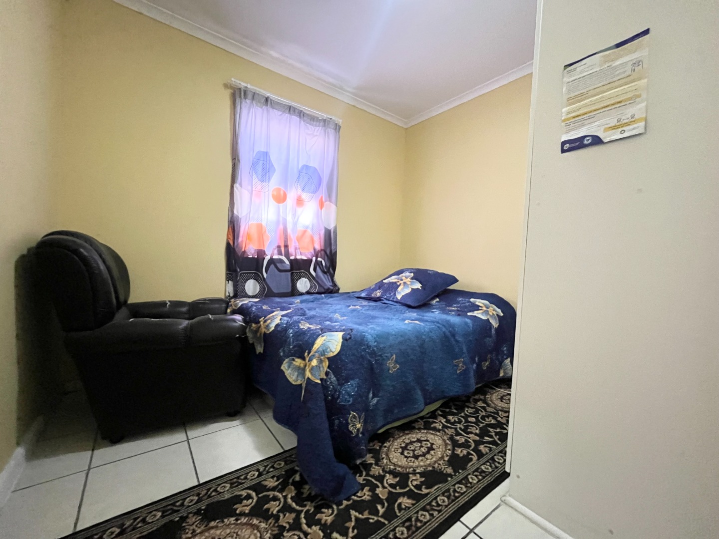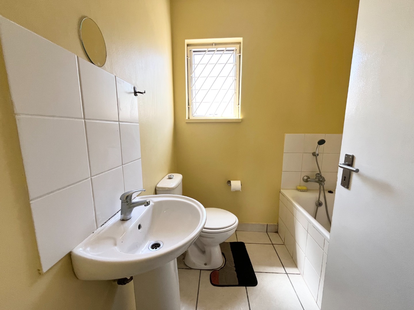 with a security gate fitted both on the front and back door, as well as burglar bars.