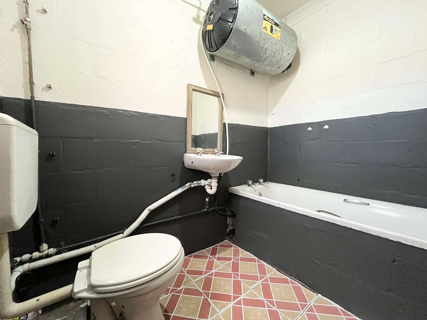 2 Bedroom property, 1 bathroom basin, toilet and bath space for vehicles.