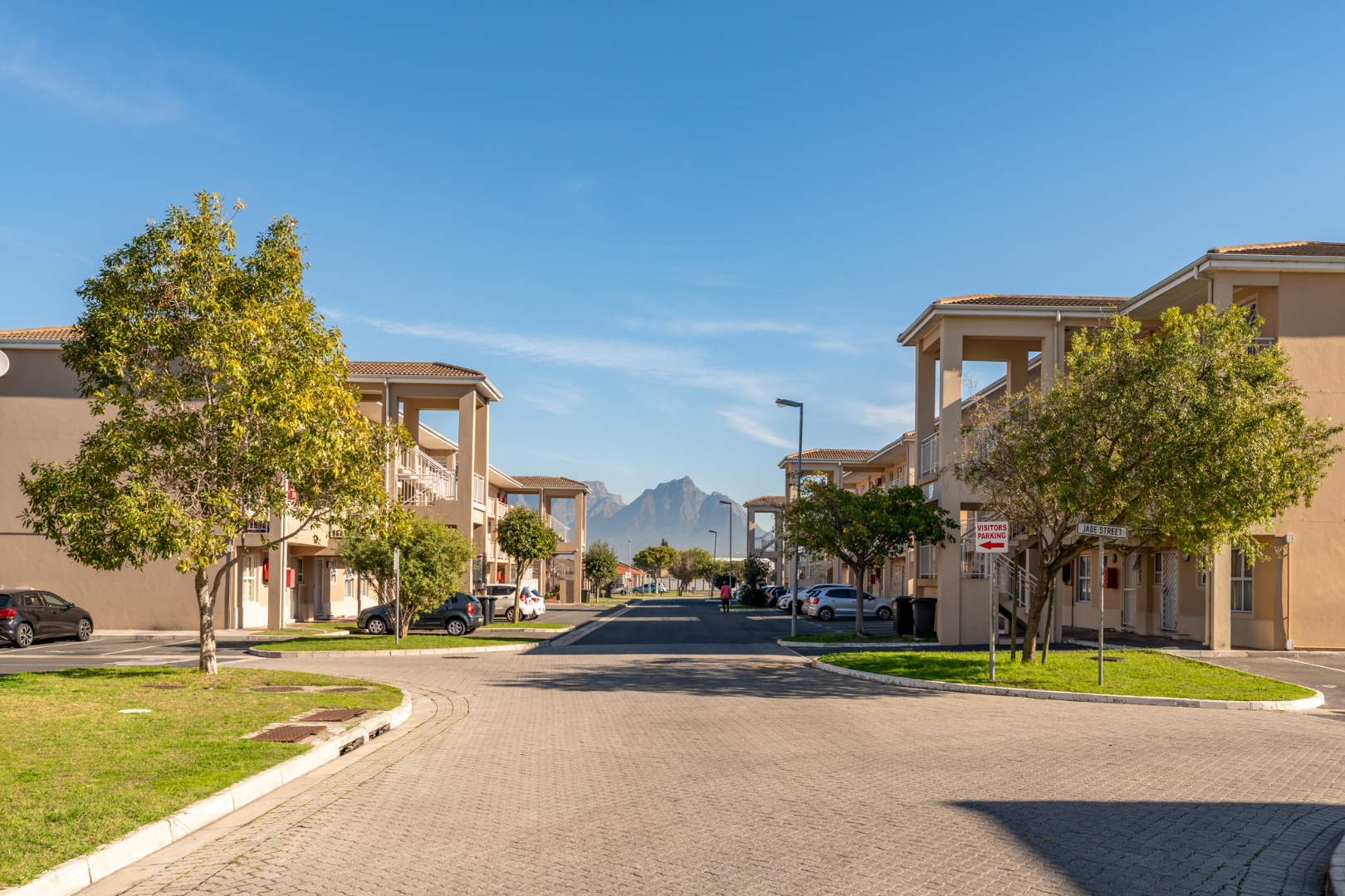 Security is a priority within this gated community, featuring controlled access via a security post and boom barrier, providing peace of mind. The complex boasts a modern aesthetic with uniformly designed multi-story buildings and well-maintained exteriors, contributing to a pleasant kerb appeal. Distant mountain views add to the scenic backdrop.