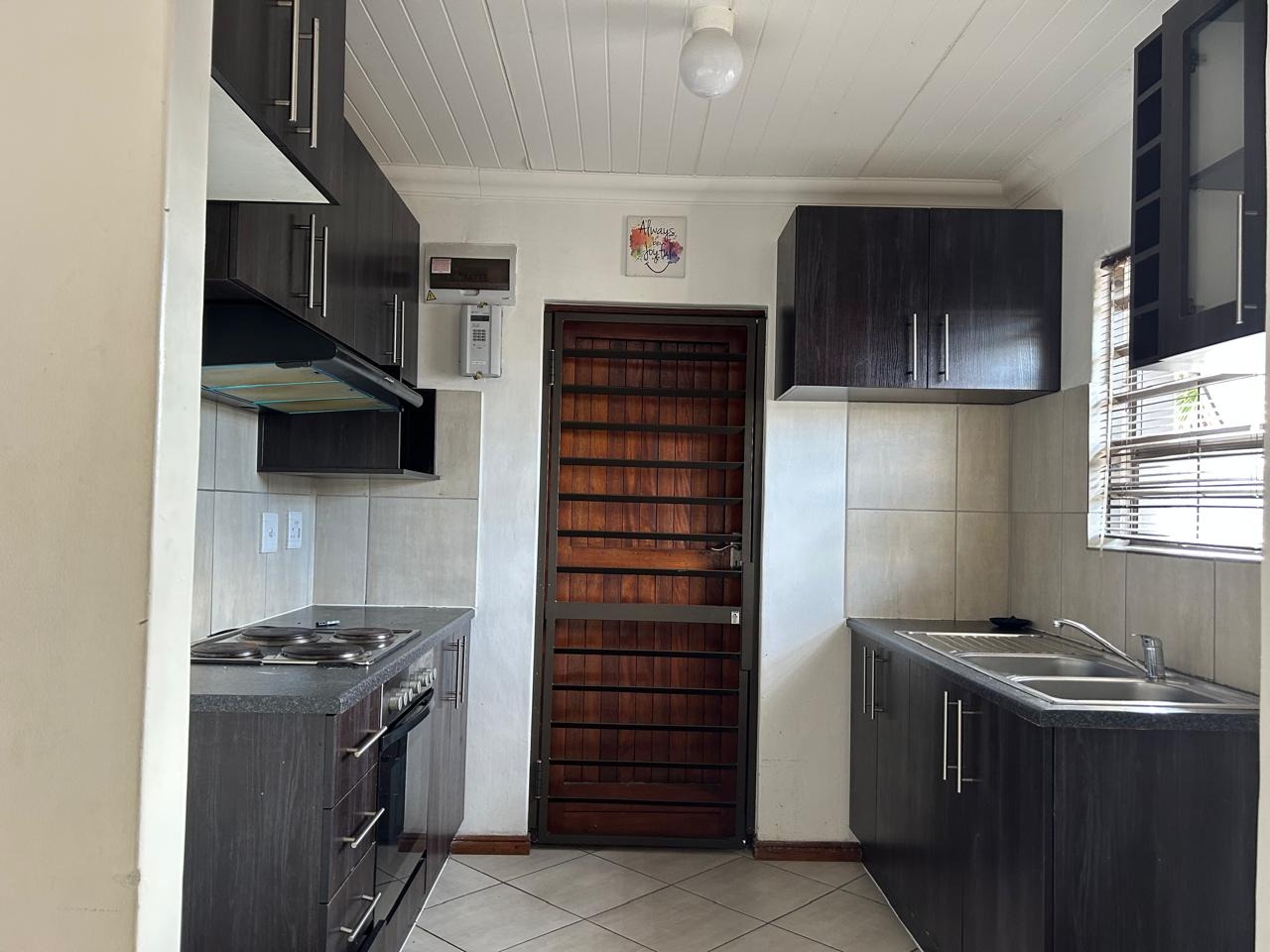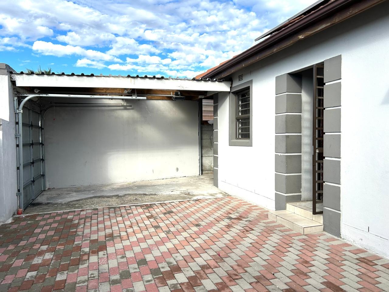 Accommodation comprises two bedrooms, providing private spaces for rest and relaxation. Externally, the property boasts a generous erf size of 170 square metres, offering ample outdoor space. A significant advantage is the double garage, providing secure parking for two vehicles, complemented by paved areas for additional convenience. Security is enhanced with the inclusion of burglar bars and a security gate, ensuring peace of mind for residents
