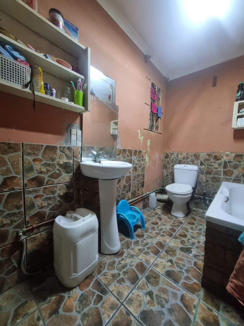 Additional practical features include a fully enclosed stoep at the front of the home, providing secure extra living space. Parking is accommodated for one vehicle, safely situated behind closed gates. A significant advantage of this property is the self-contained back section, which boasts its own separate entrance, a bedroom, and a bathroom. This versatile space is perfectly suited for accommodating extended family, hosting guests, or generating potential rental income.