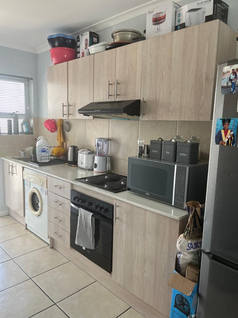 Discover contemporary living in this modern 2-bedroom apartment, ideally situated within a secure complex in Cravenby, Parow, South Africa. The multi-story building presents a uniform, light-colored exterior with individual balconies and a gated entrance featuring a guardhouse, ensuring a welcoming and secure environment. The fenced perimeter further enhances peace of mind for residents. Spanning 45 sqm, this apartment offers a well-designed interior. The bright lounge area benefits from ample natural light and features practical tiled flooring, creating an inviting space for relaxation. The modern kitchen boasts light wood-grain cabinetry, integrated cooking appliances, and dedicated space for a washing machine, catering to everyday convenience. The open-plan layout seamlessly connects living spaces, enhancing the sense of spaciousness. The residence includes two comfortable bedrooms, each featuring white walls and receiving good natural light. One bedroom is equipped with a large, white built-in wardrobe, maximizing storage efficiency. The single bathroom is fitted with tiled walls, a built-in shower stall, and a window for natural ventilation, ensuring a clean and functional space. Security is a priority within this complex, offering 24-hour security, electric fencing, a security gate, and an access gate. Residents also benefit from modern amenities such as a solar geyser for energy efficiency and fibre connectivity, supporting contemporary lifestyle needs. The property includes one dedicated parking bay. Key Features: * Modern 2-bedroom apartment * Secure complex with 24-hour security * Gated entrance with guardhouse * 45 sqm floor size * Modern kitchen with integrated appliances * Built-in wardrobe in one bedroom * Solar geyser for energy efficiency * Fibre connectivity available * One dedicated parking bay