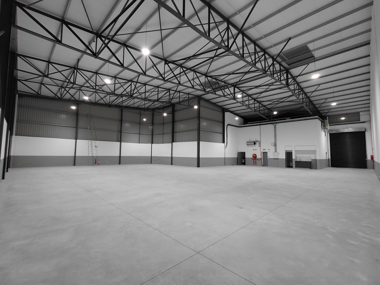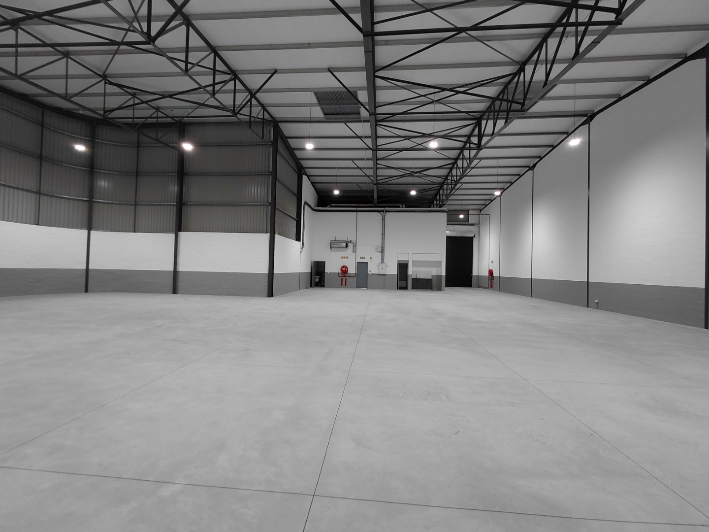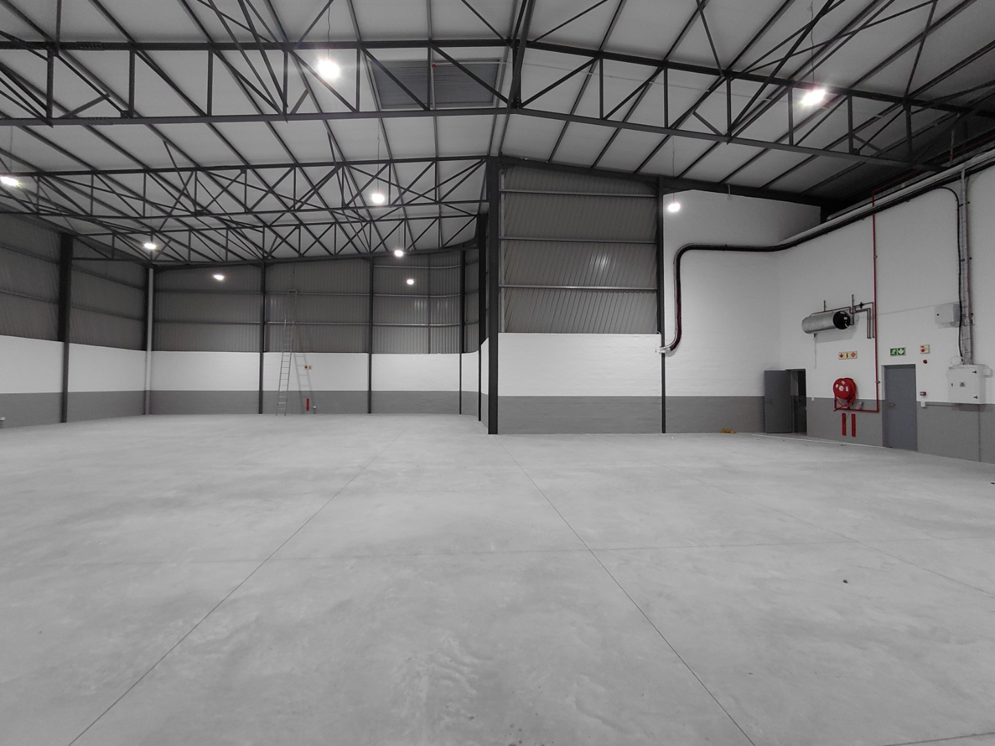 Bright LED lighting throughout the warehouse