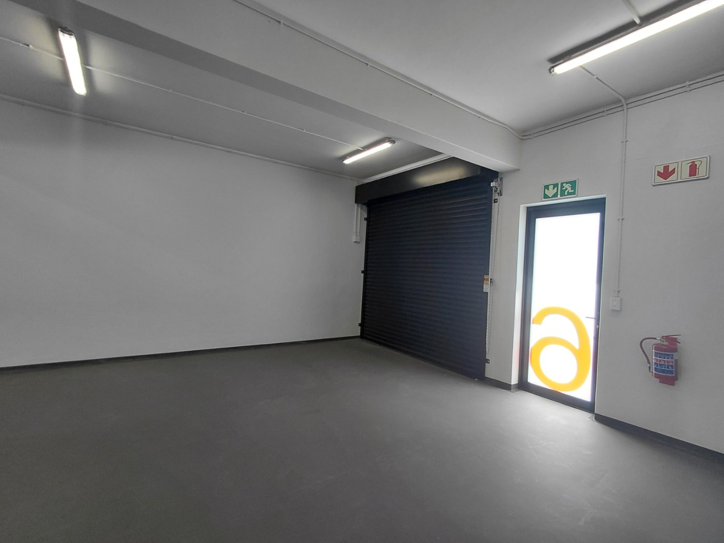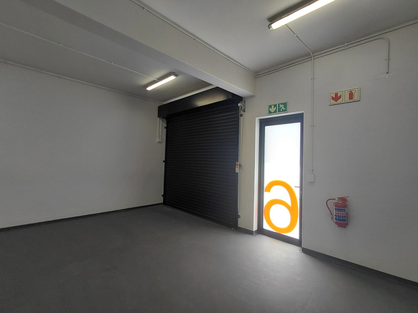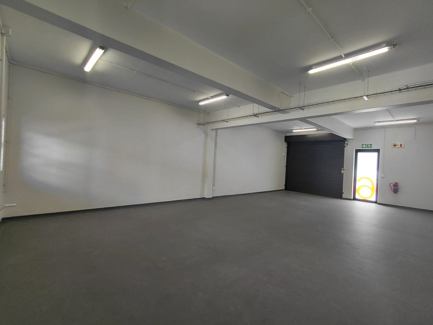Open-plan warehouse with roller shutter door