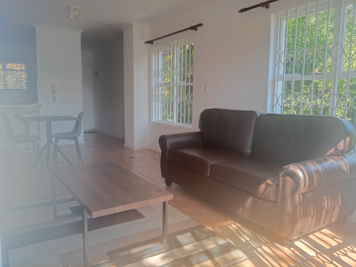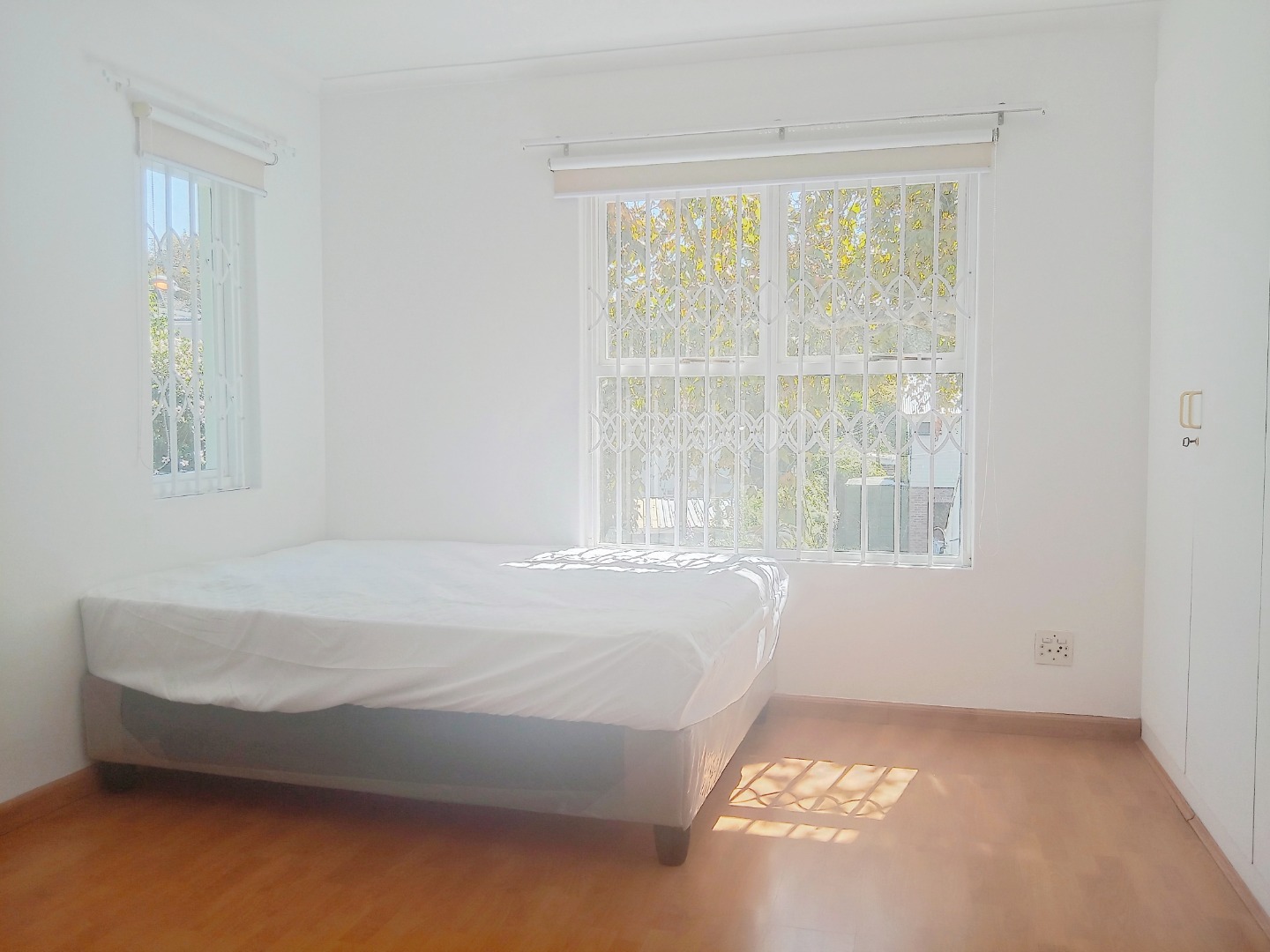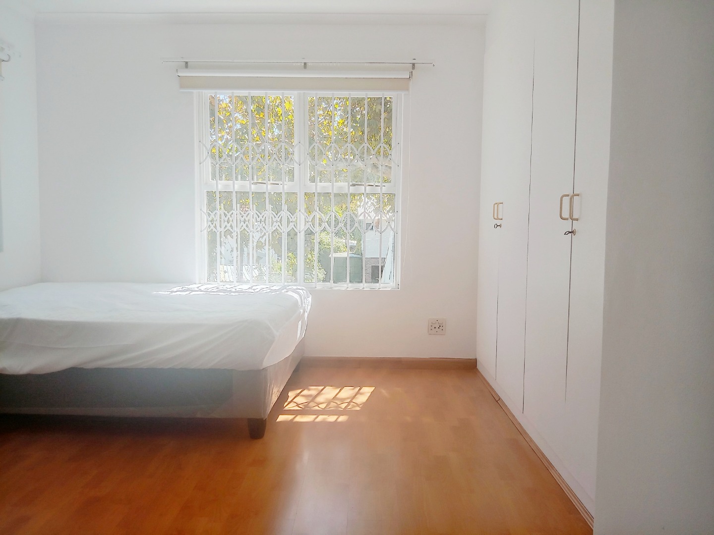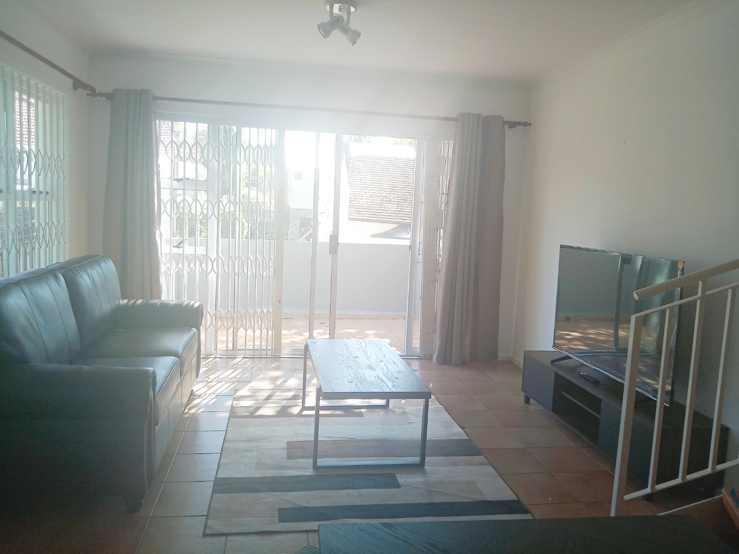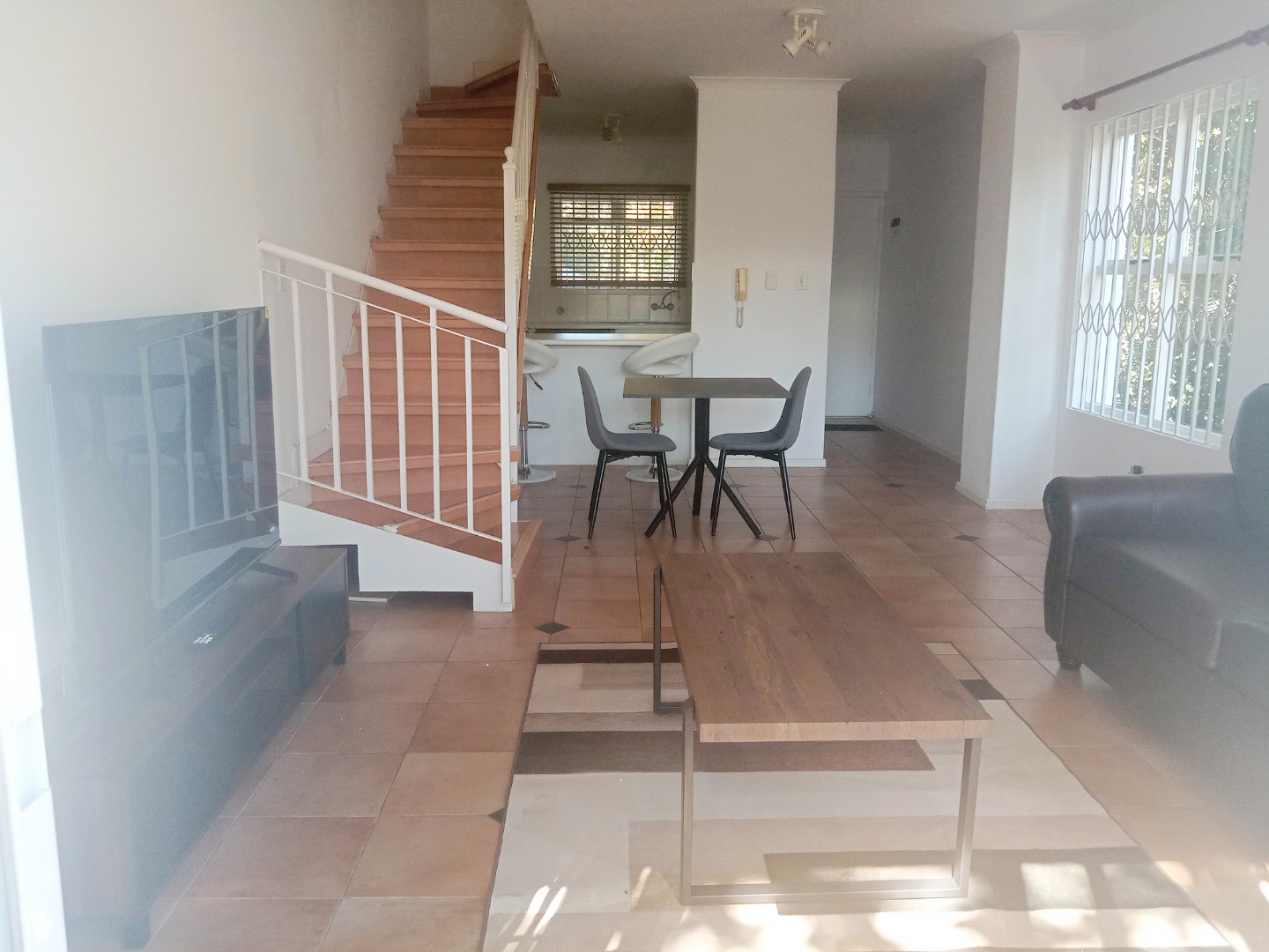 Sunny furnished 2 level townhouse located in the heart of Rondebosch. Bottom floor is fully tiled and offers spacious open plan lounge that leads to large balcony. Kitchen is fitted with breakfast counter, built in cupboards, as well as oven and hob. Stairs with built in storage. Upstairs has laminated floors in both bedrooms , as well as spacious cupboards. 2 bathrooms,one with shower and 2nd with bath.