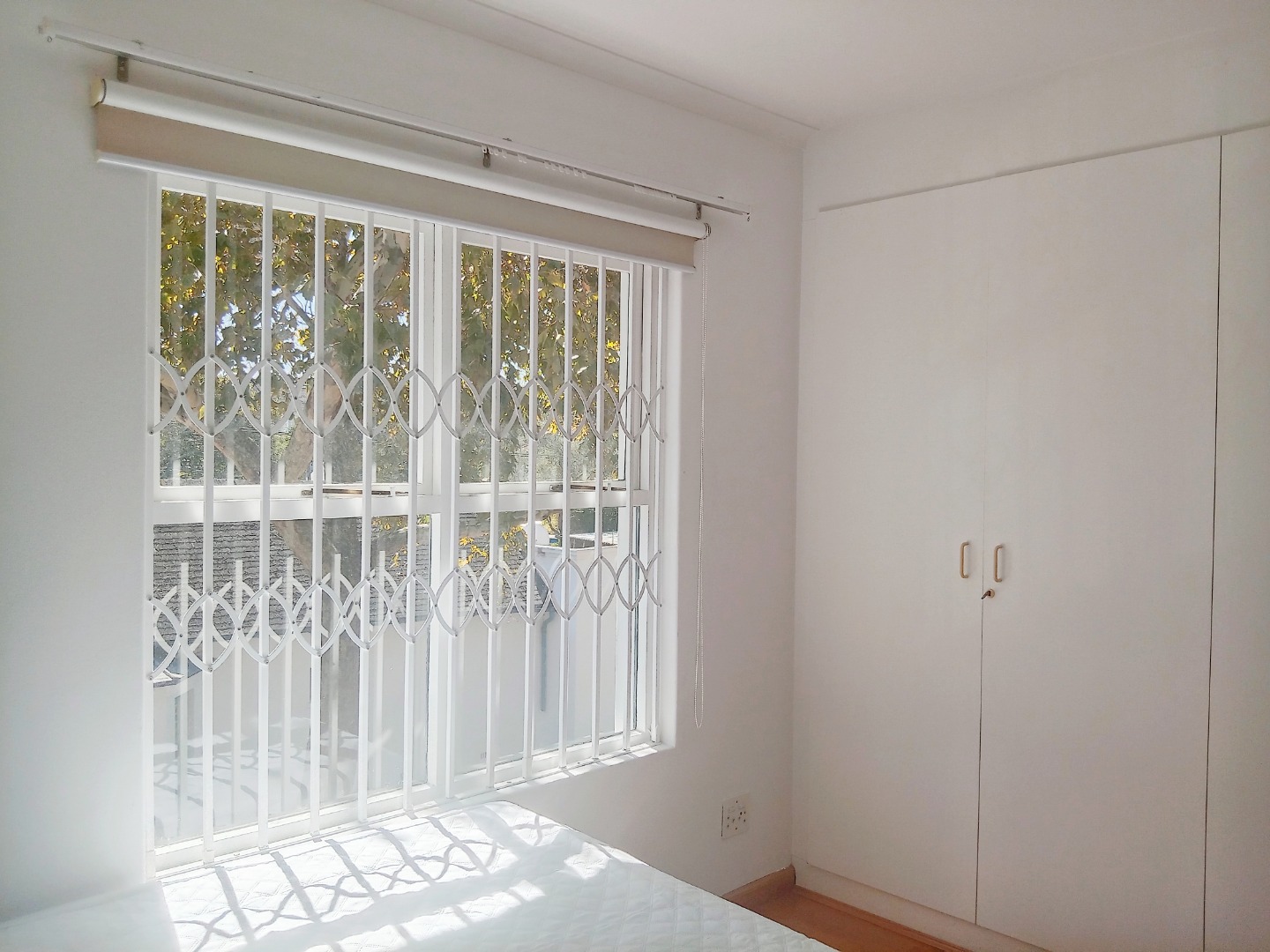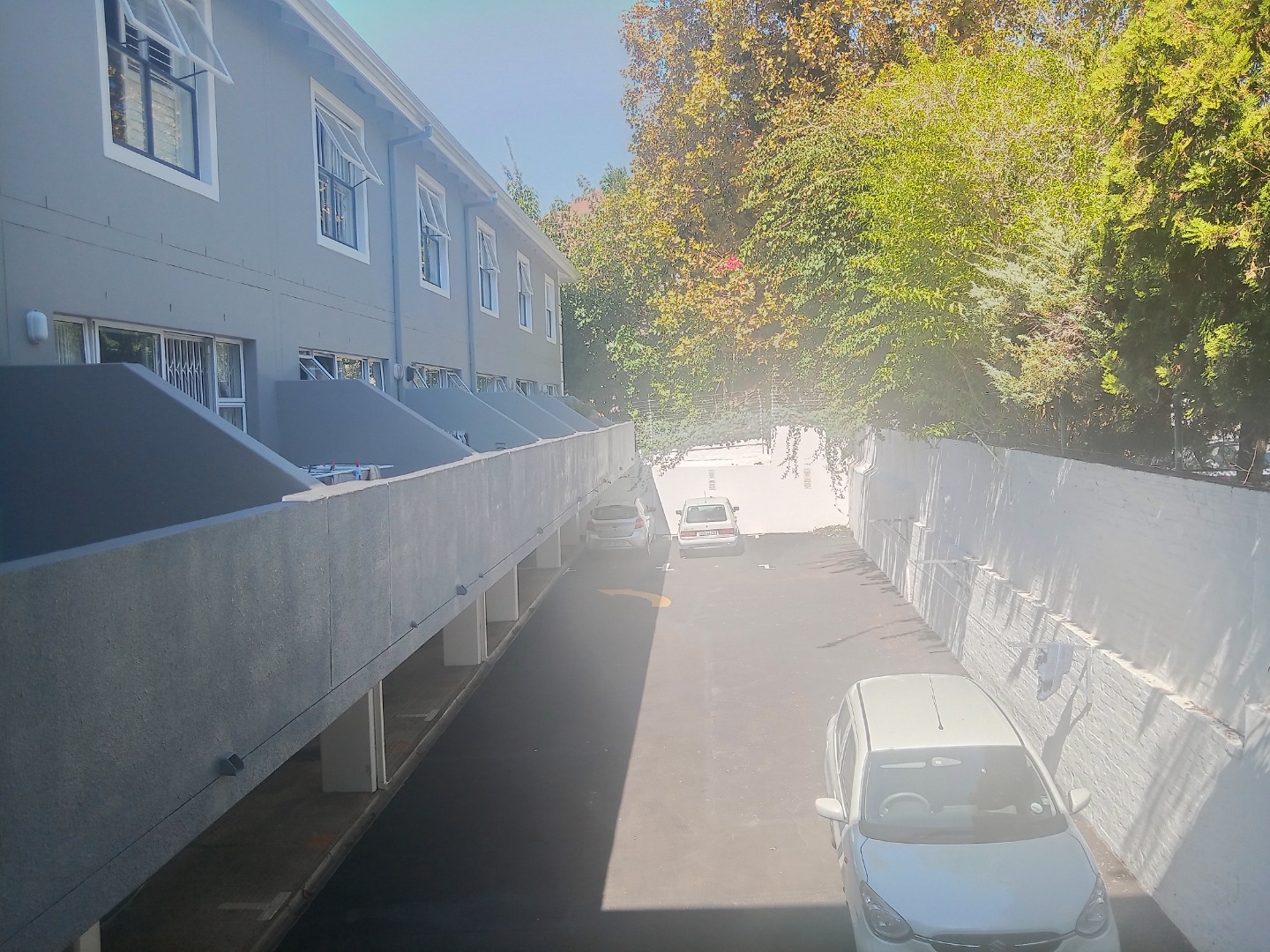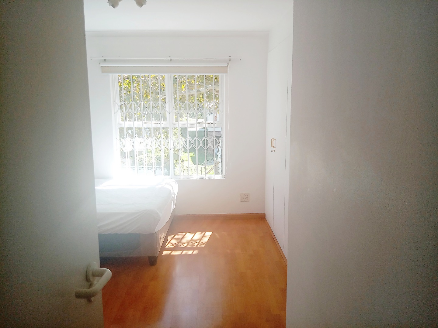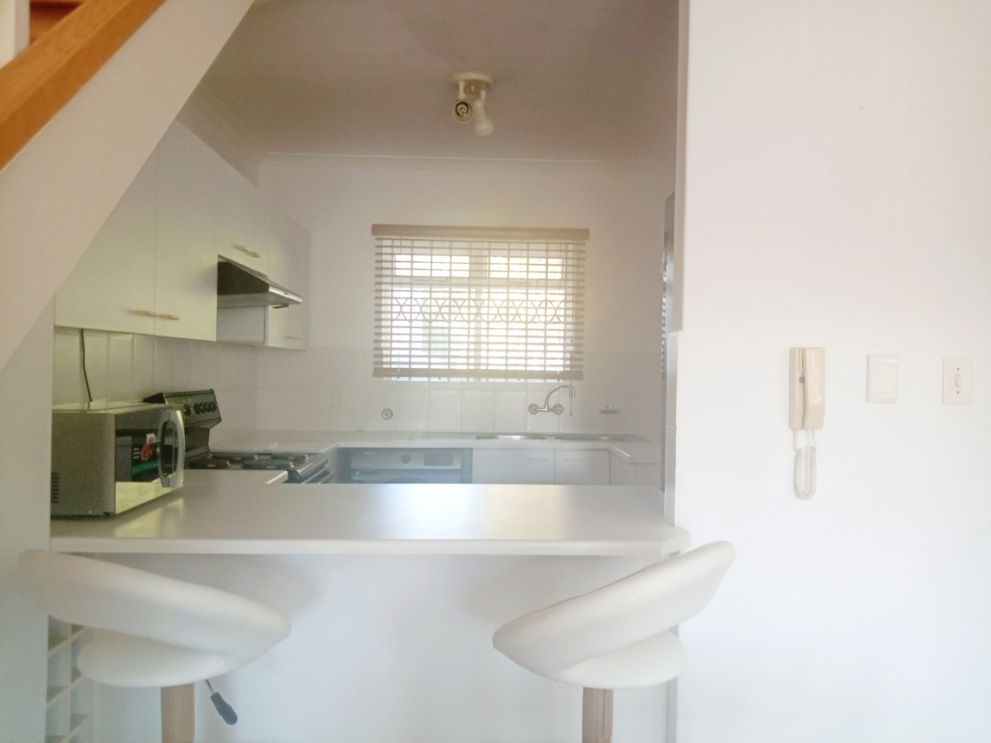 Sunny furnished 2 level townhouse located in the heart of Rondebosch. Bottom floor is fully tiled and offers spacious open plan lounge that leads to large balcony. Kitchen is fitted with breakfast counter, built in cupboards, as well as oven and hob. Stairs with built in storage. Upstairs has laminated floors in both bedrooms , as well as spacious cupboards. 2 bathrooms,one with shower and 2nd with bath.