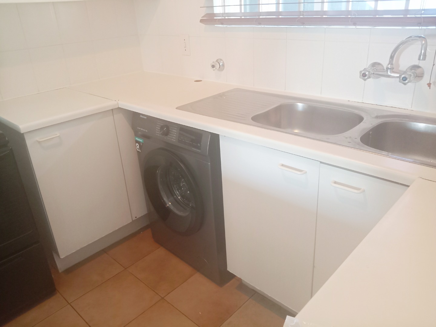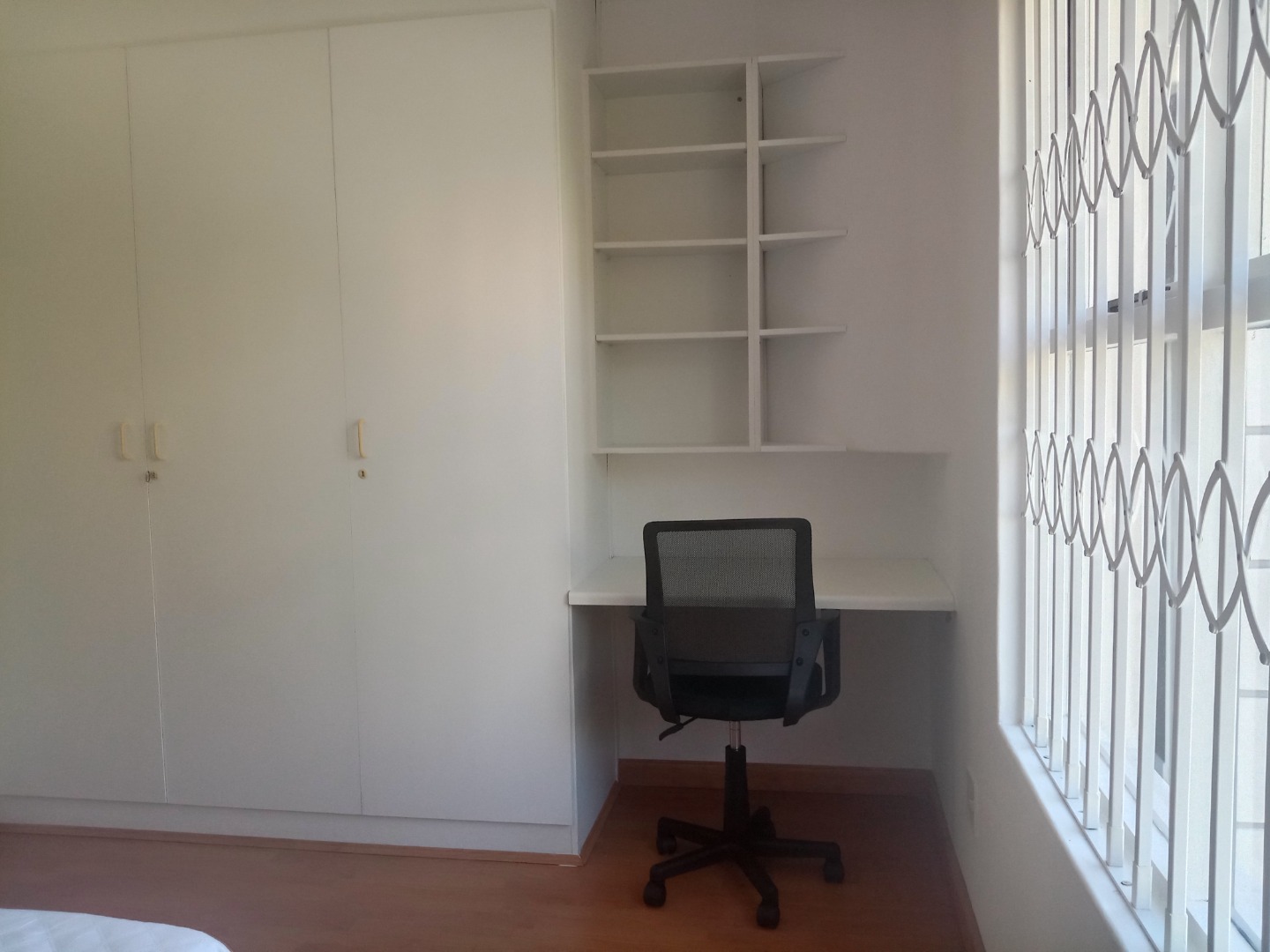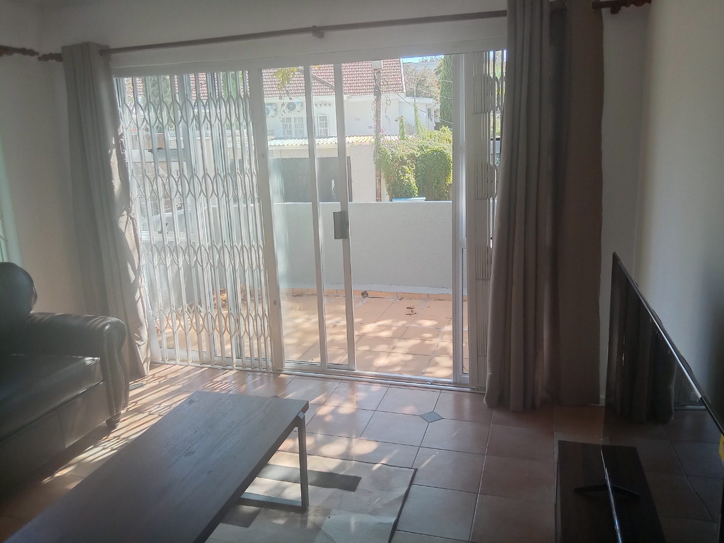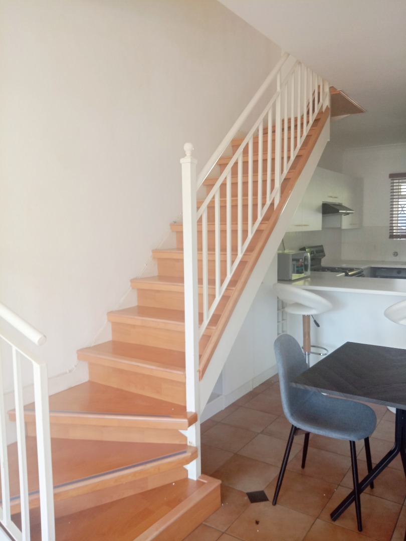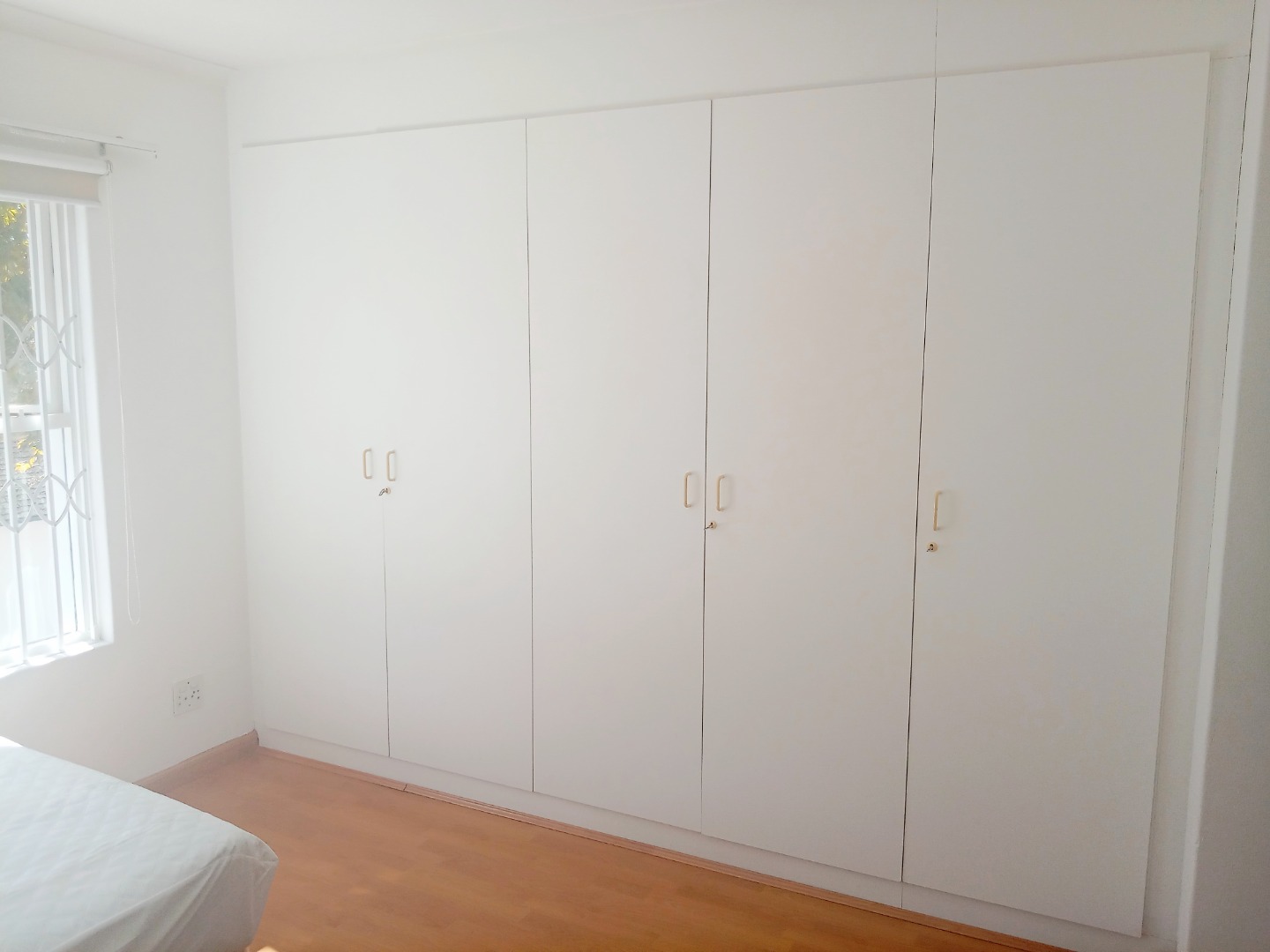 Sunny furnished 2 level townhouse located in the heart of Rondebosch. Bottom floor is fully tiled and offers spacious open plan lounge that leads to large balcony. Kitchen is fitted with breakfast counter, built in cupboards, as well as oven and hob. Stairs with built in storage. Upstairs has laminated floors in both bedrooms , as well as spacious cupboards. 2 bathrooms,one with shower and 2nd with bath.