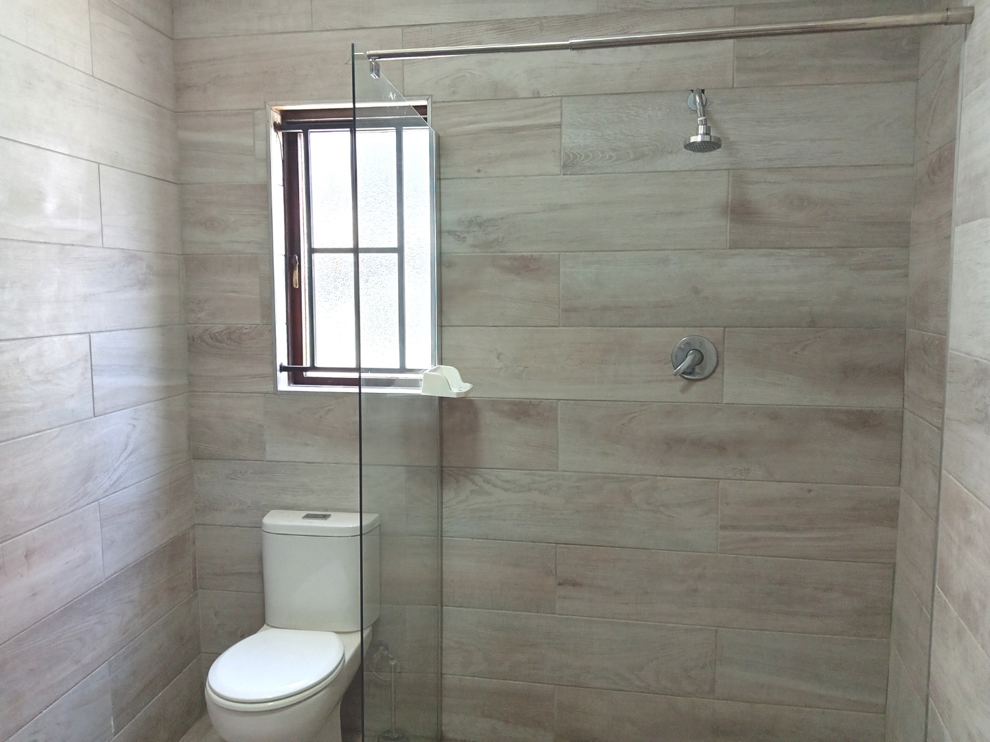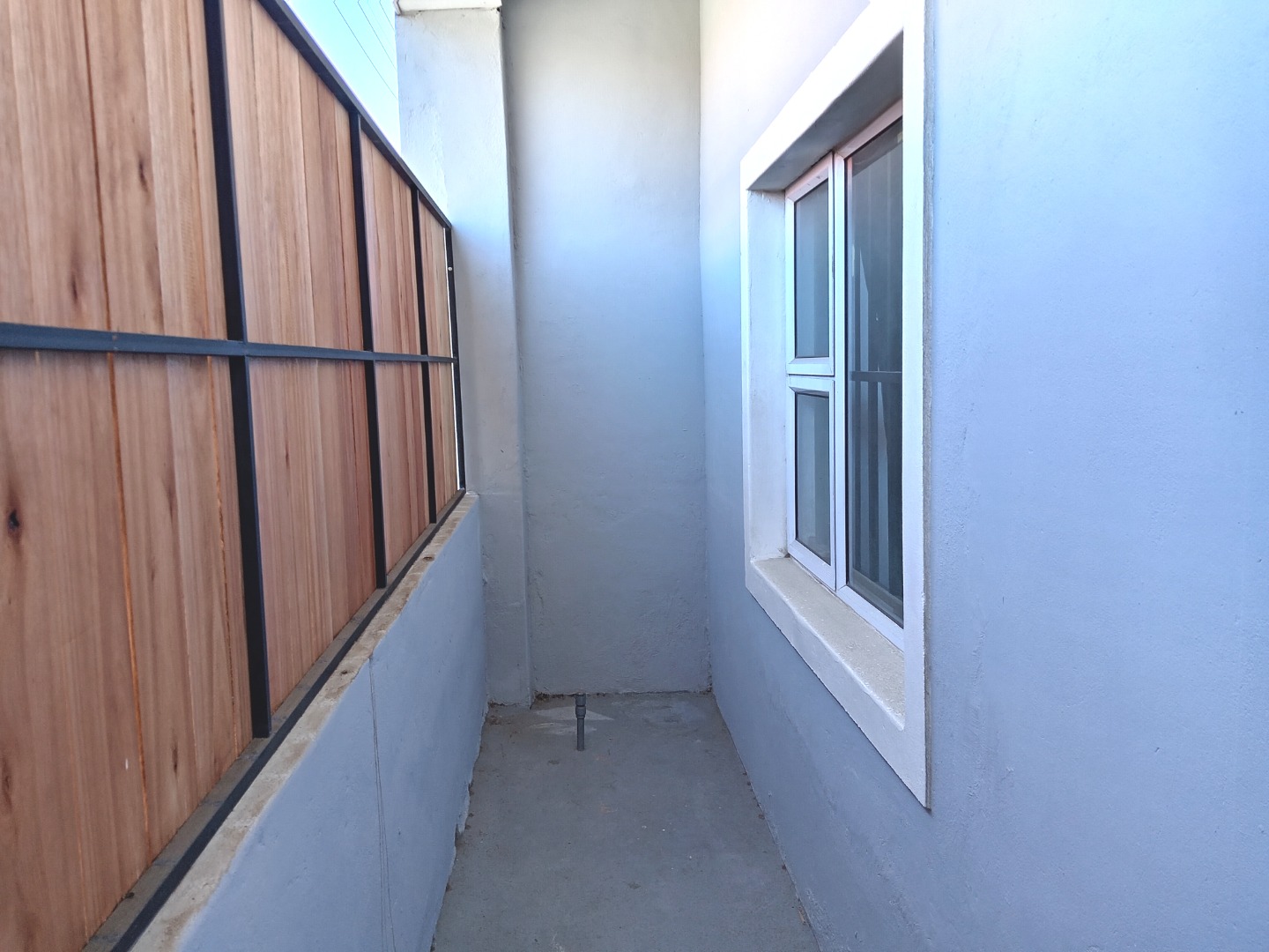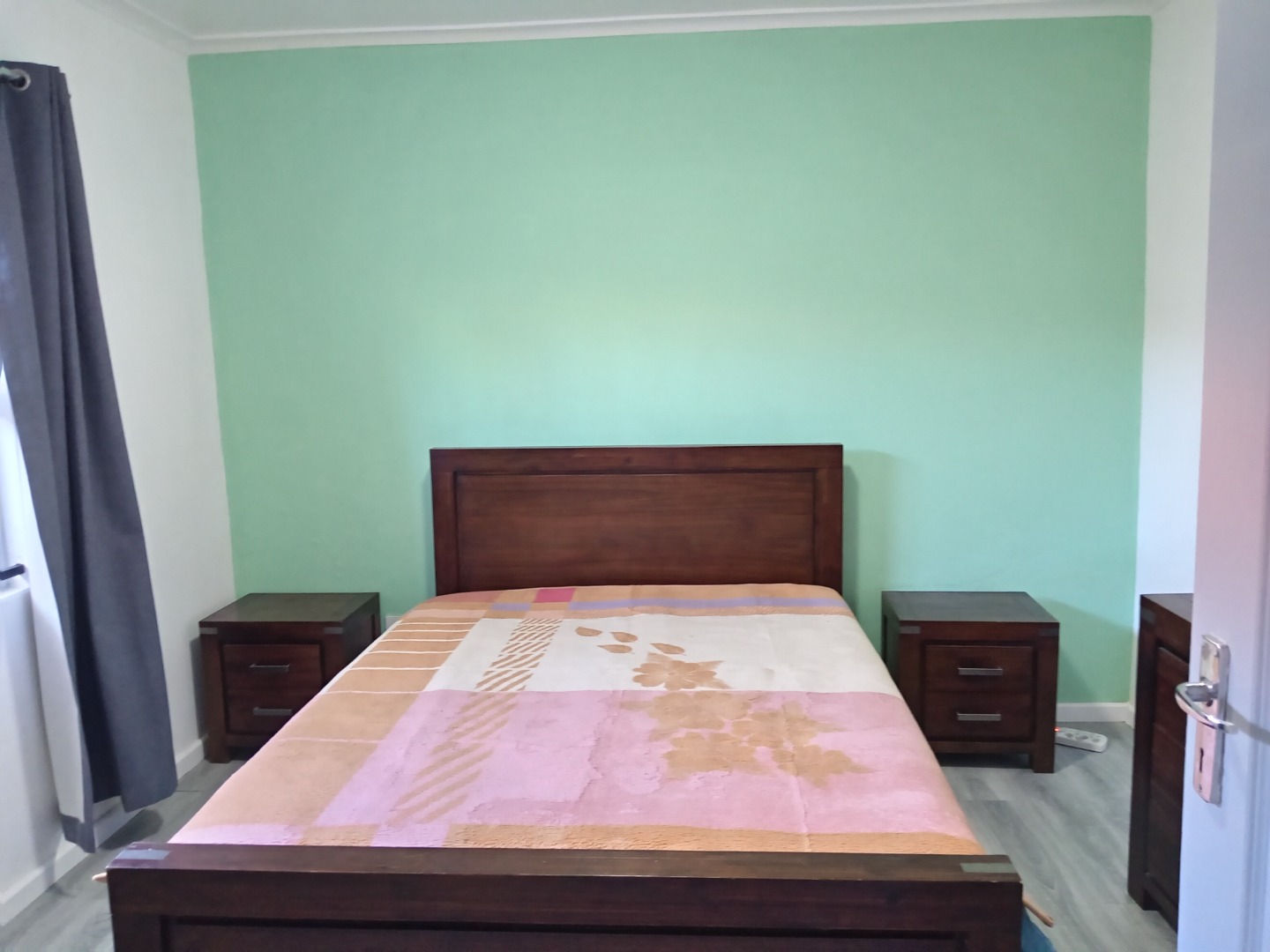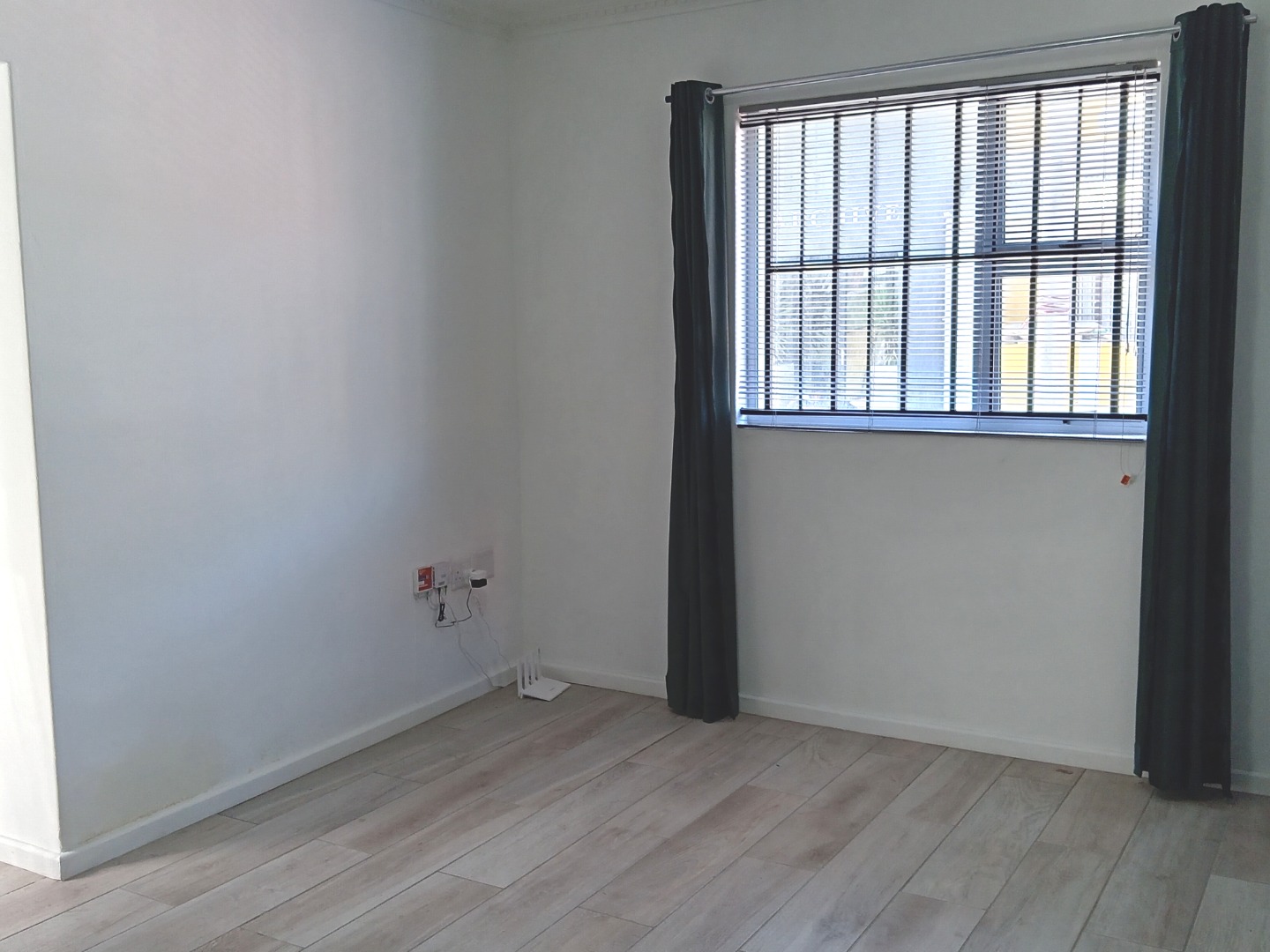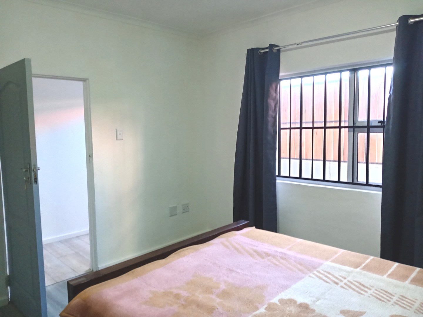 Both bedrooms are designed for comfort, complemented by a light green accent wall. Natural light fills the rooms, and security bars on the windows for peace of mind. This unfurnished residence offers a versatile canvas for tenants to personalise their living space, making it an ideal lock-up-and-go option for professionals or a small family.