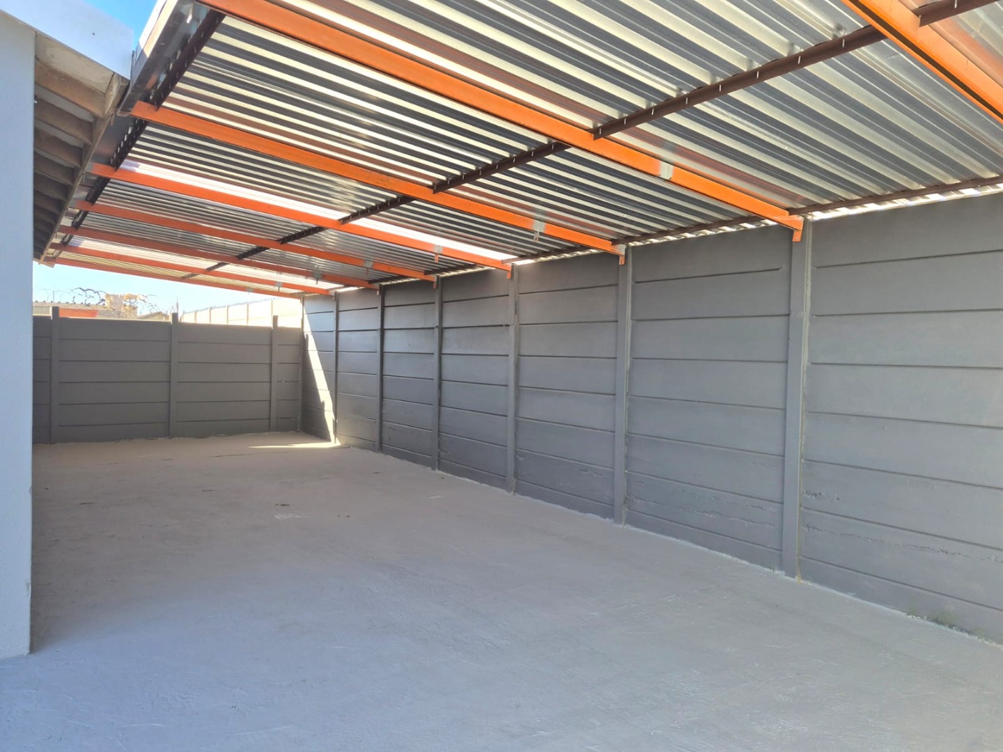 Designed for a low-maintenance lifestyle, the property boasts a fully paved outdoor area, eliminating the need for extensive gardening. A covered carport provides secure parking for four vehicle, with additional open parking available as well, a significant advantage in this area. Security is a key feature, with a modern perimeter wall topped with barbed wire, a secure access gate, and burglar bars on all windows, ensuring peace of mind for residents.
